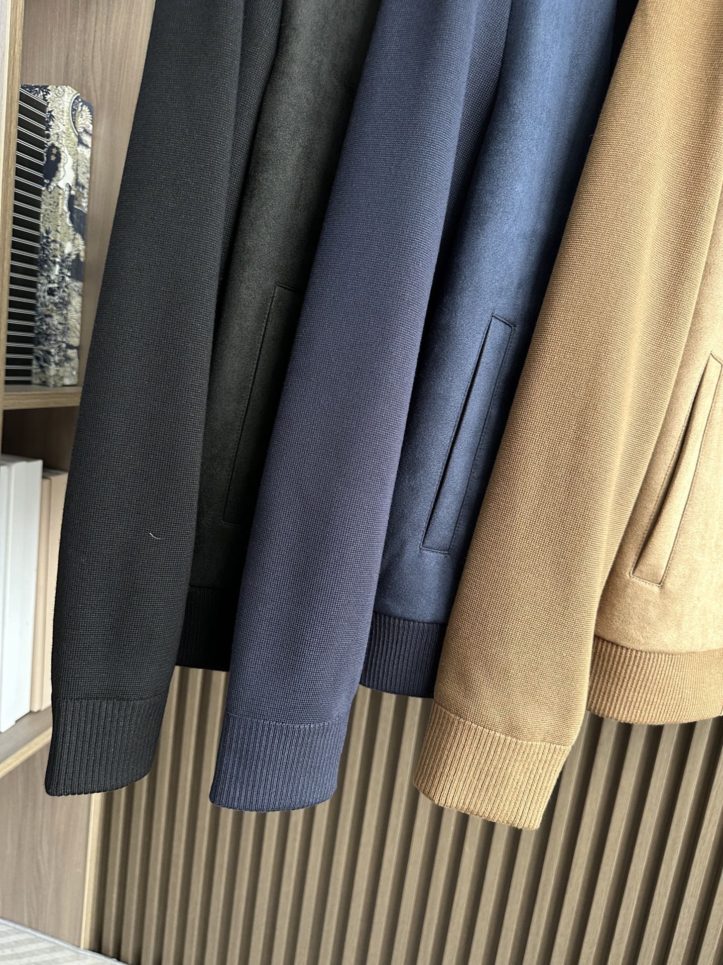 Home • Apparel • Jeans • Prada autumn-winter jacket with large collar, suede blend, dual pockets. Available in black, brown, navy. Sizes M-3XL.