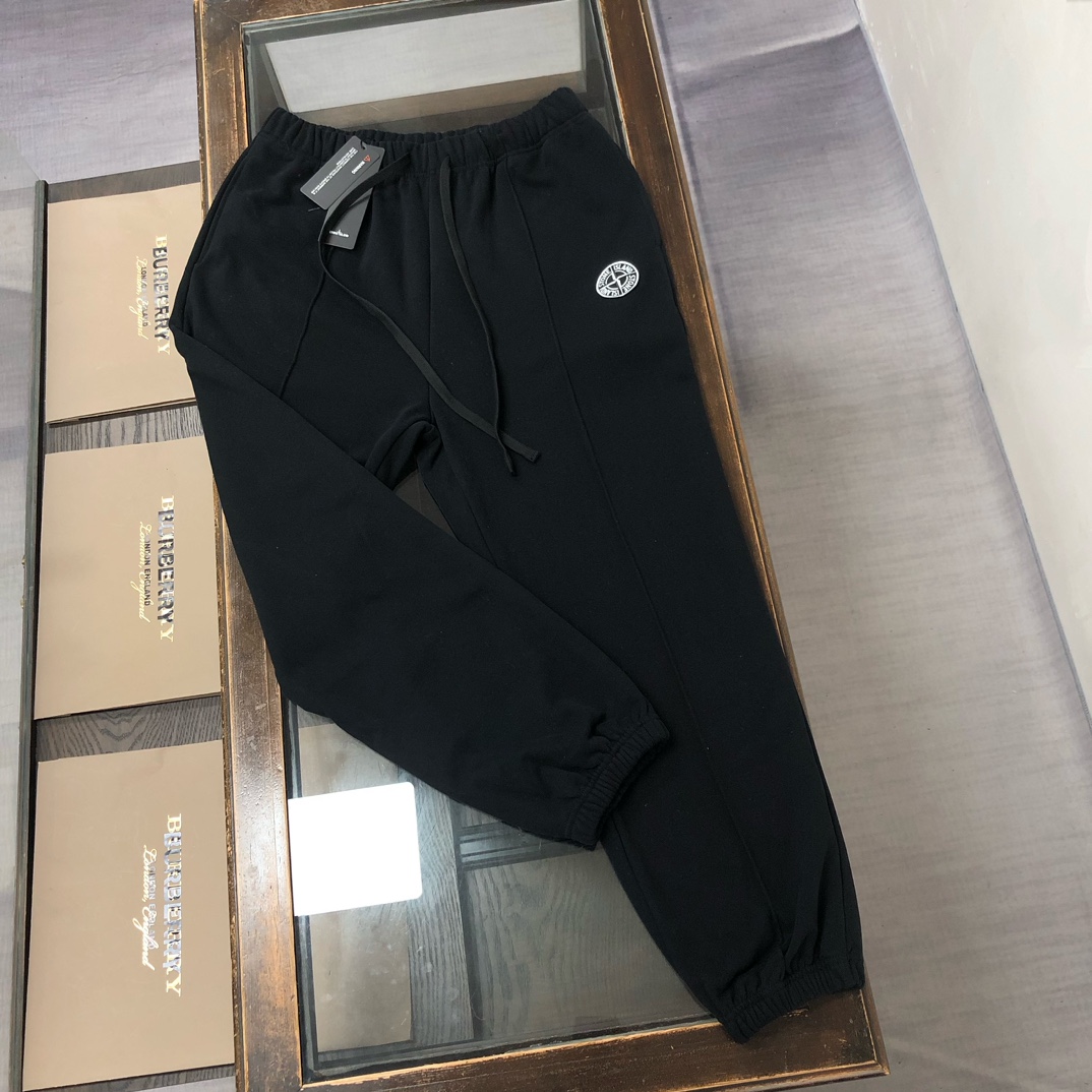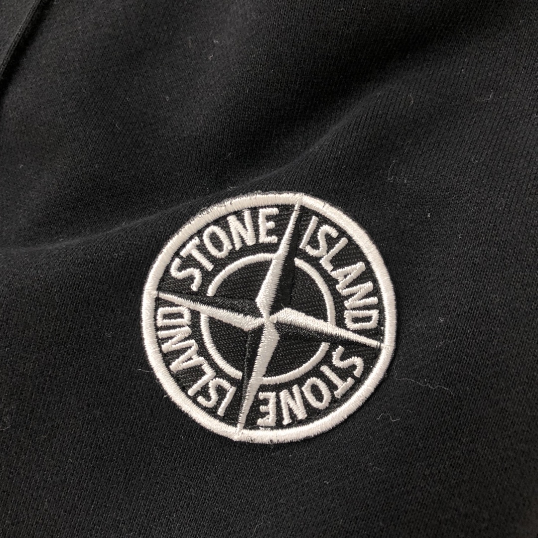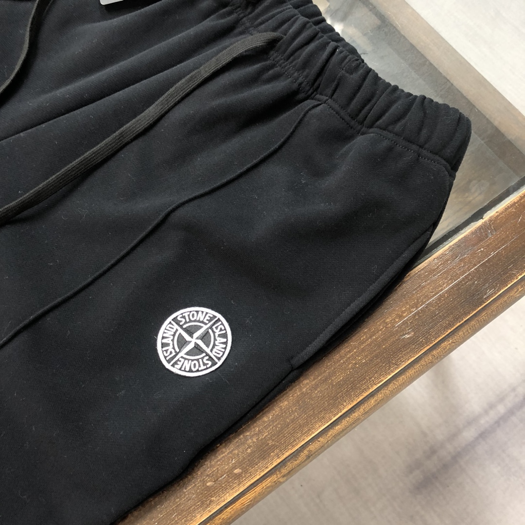 Stone Island 2025 early autumn couples' hoodie & jogger set. Custom fabric, breathable, embroidered logo. Colors: black, white, blue, gray. Sizes: S-XXL.
