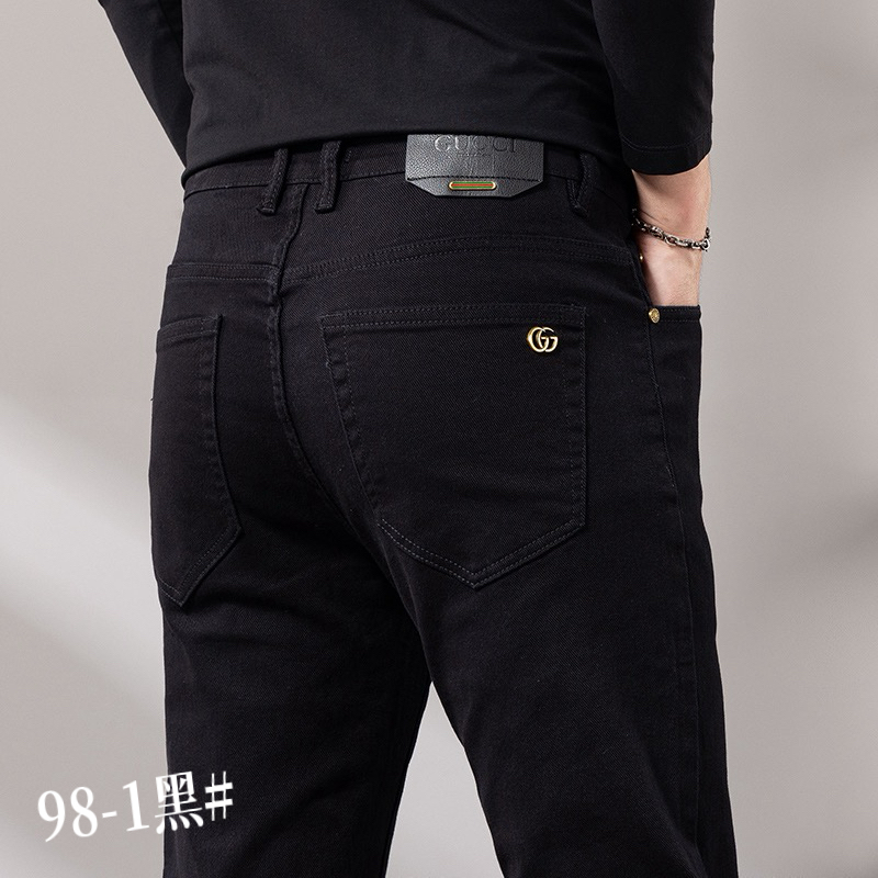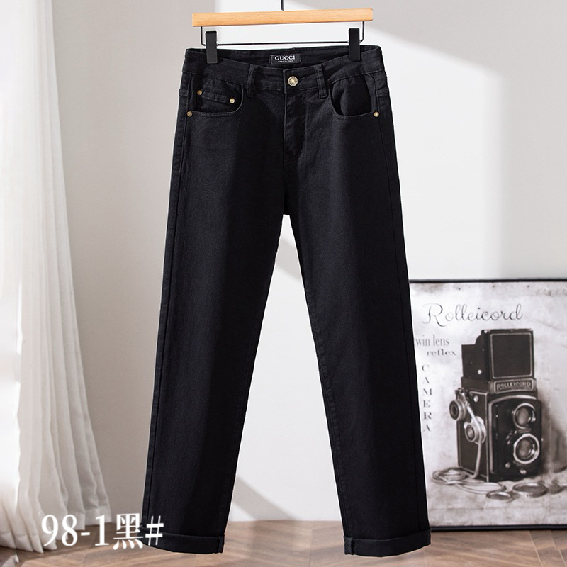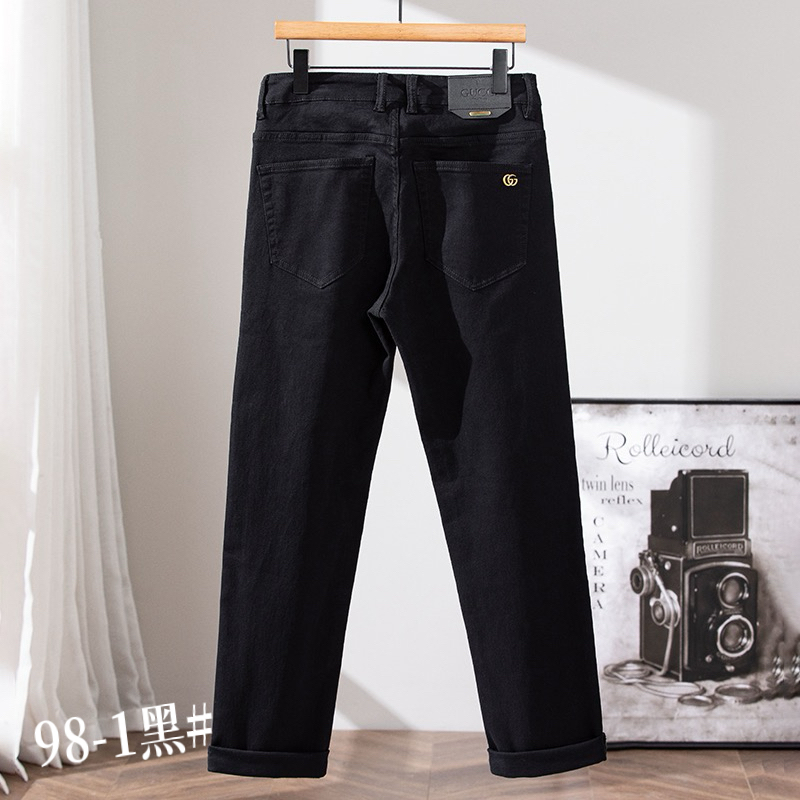 GUCCI men's casual business jeans for autumn/winter. Loose straight-leg, versatile commute wear. Stretch cotton, premium hardware. Sizes 29-40.