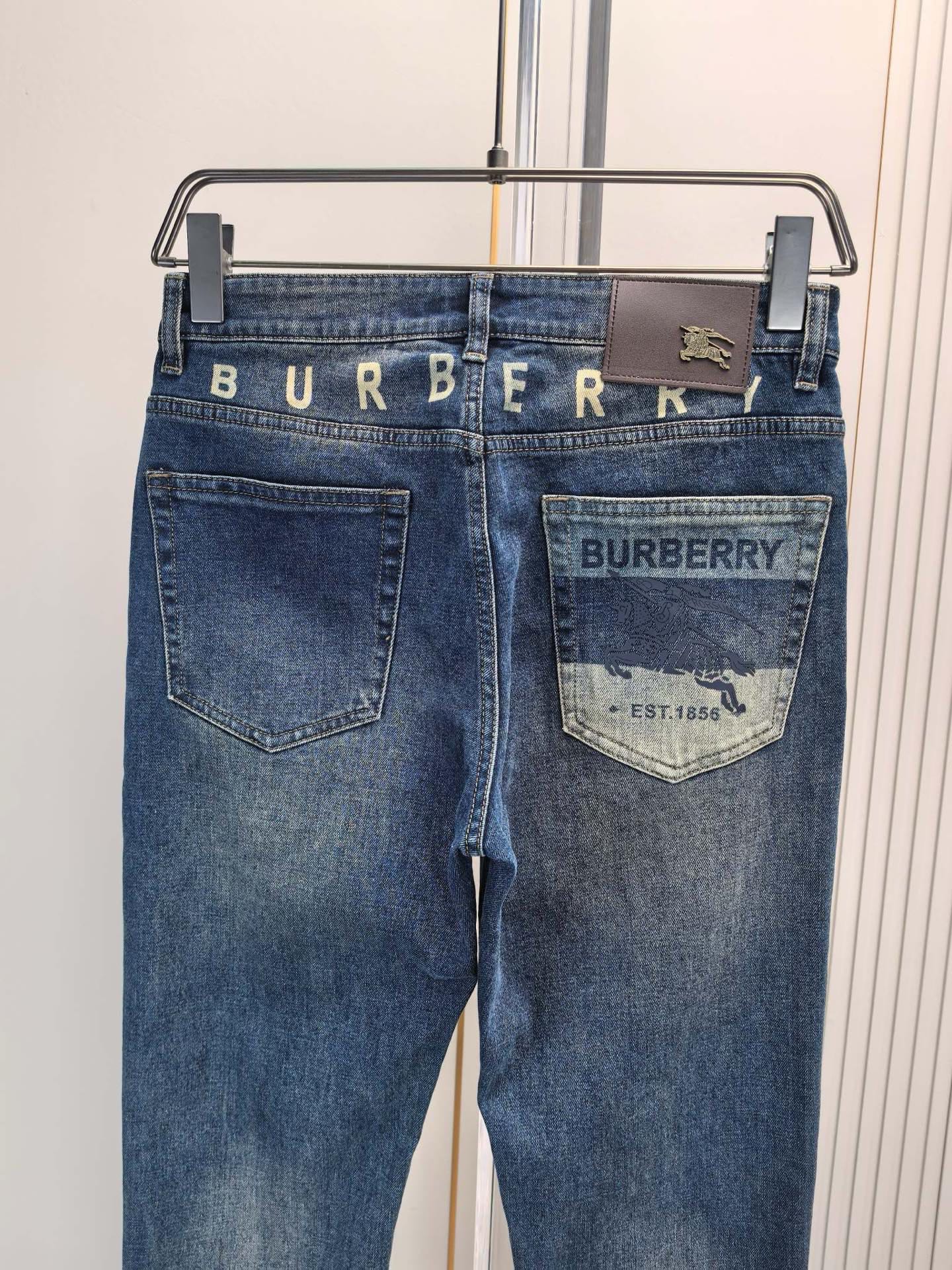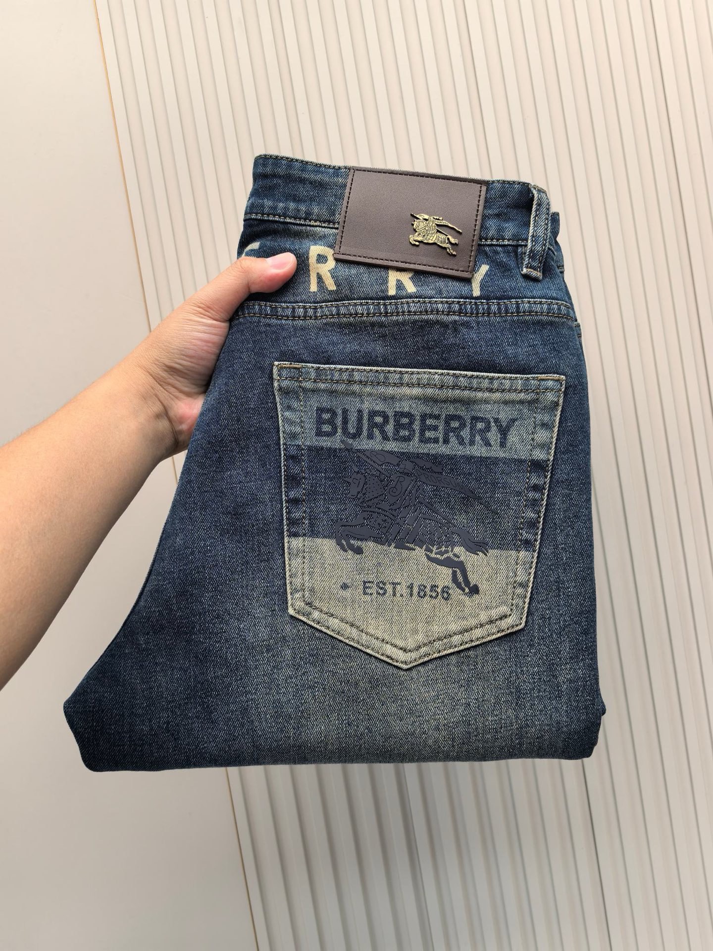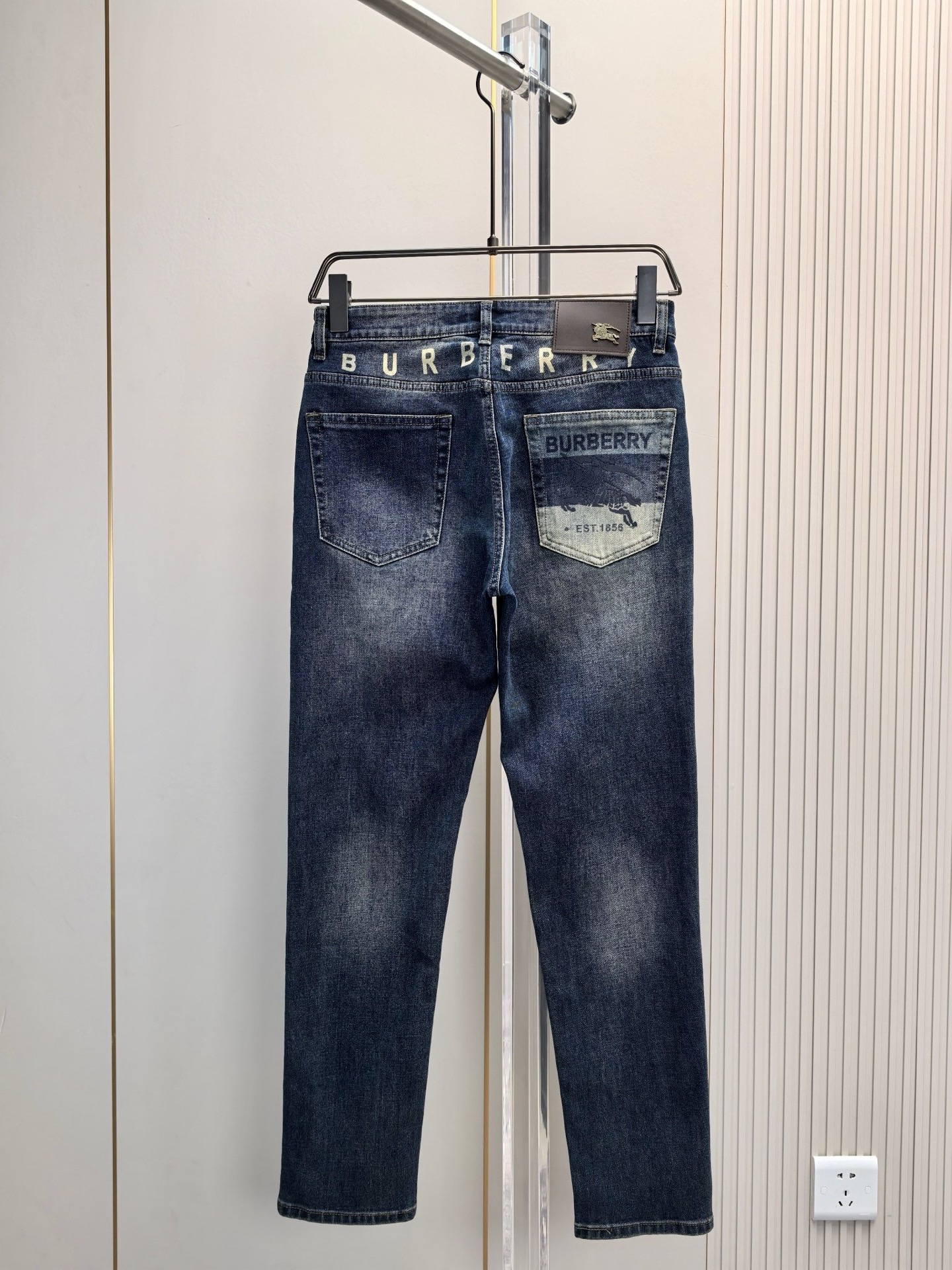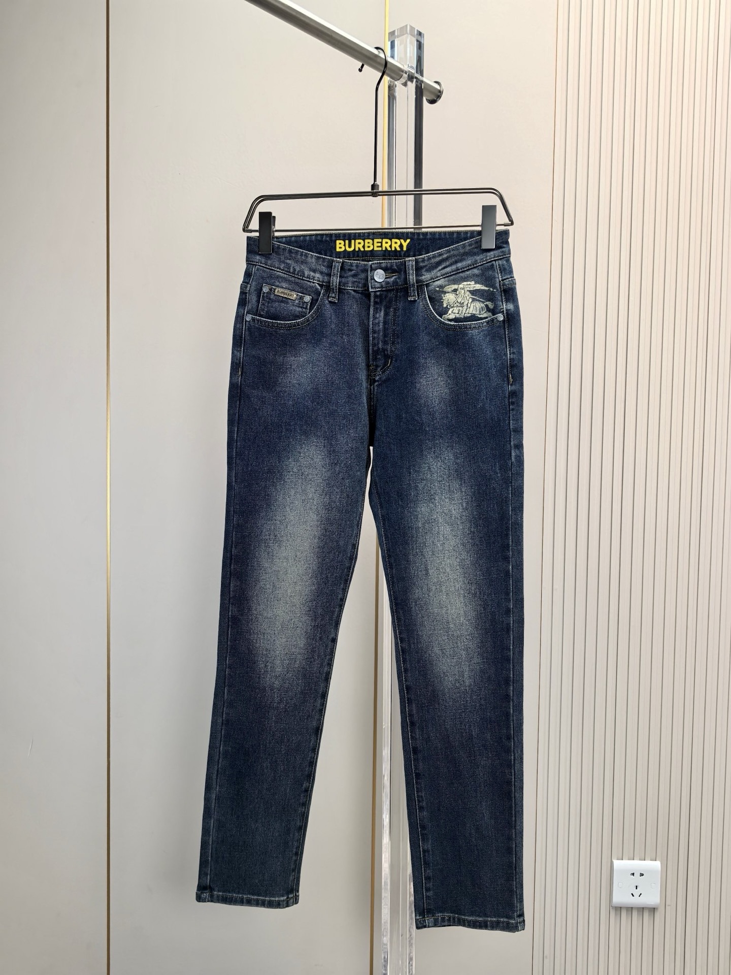 Burberry 2025 early autumn men's jeans. Heavy wash denim, custom fabric, soft & comfortable. Double wash process, top-notch feel & breathability. Custom metal logos, premium materials. Stretchy, comfortable,低调 design. Sizes 29-40.