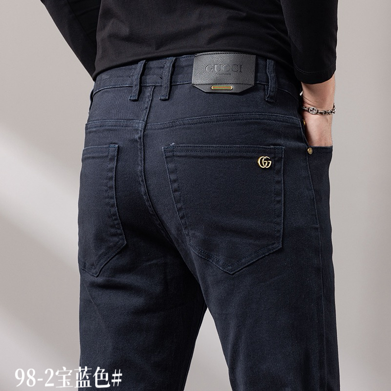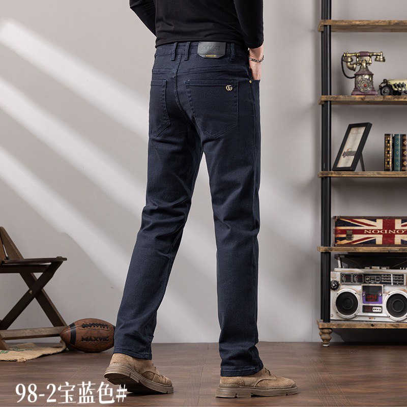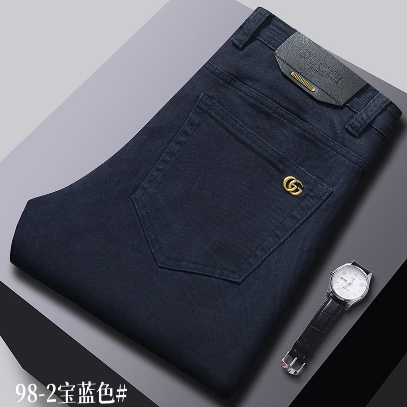GUCCI men's casual business jeans for autumn/winter. Relaxed straight-leg fit, versatile for commuting. Stretch cotton, premium hardware. Sizes 29-40.