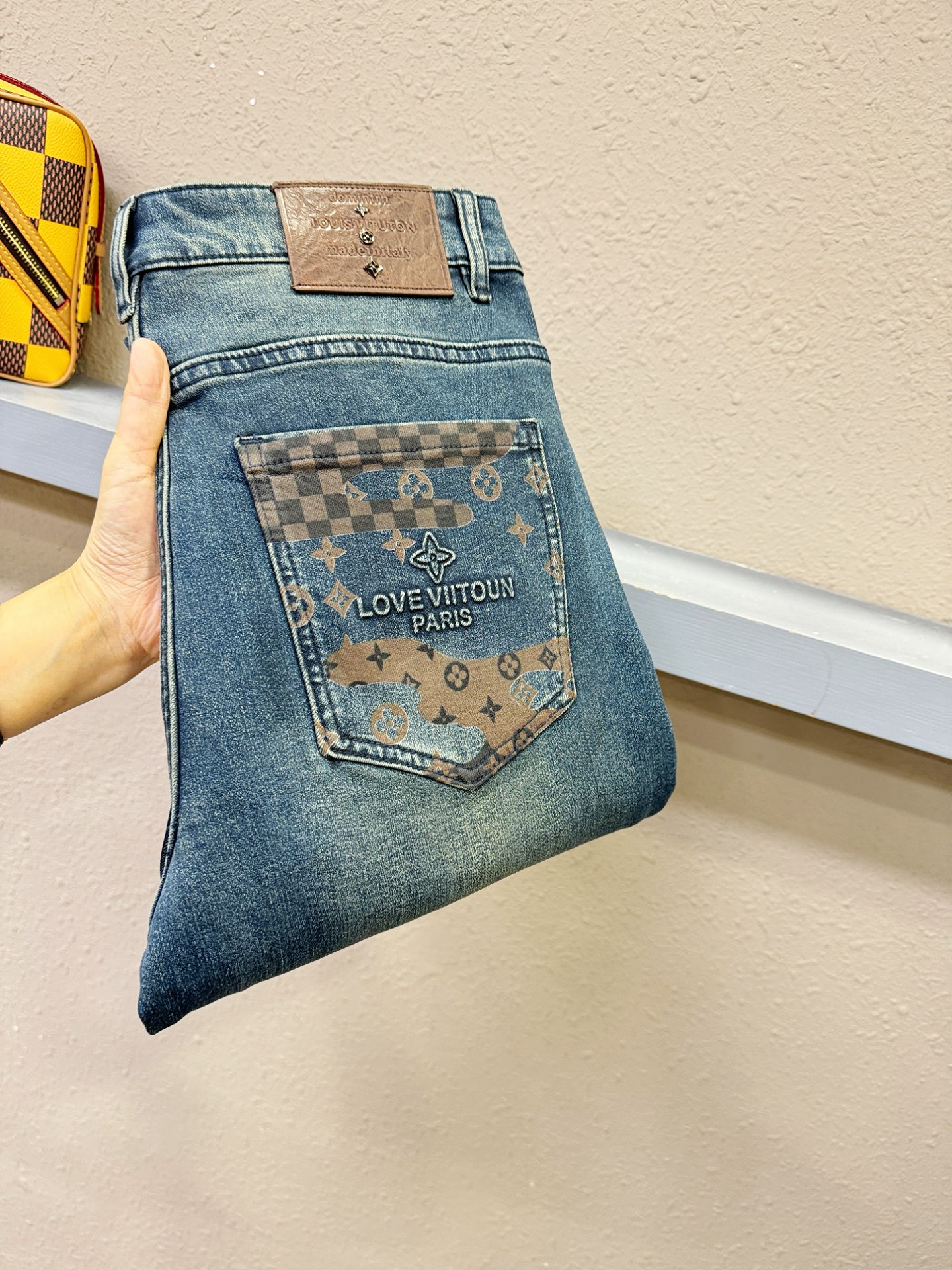 LV Louis Vuitton 2025 Fall/Winter jeans. Classic logo, full labels. Original hardware & custom denim. Try in store first. Sizes 29-38.