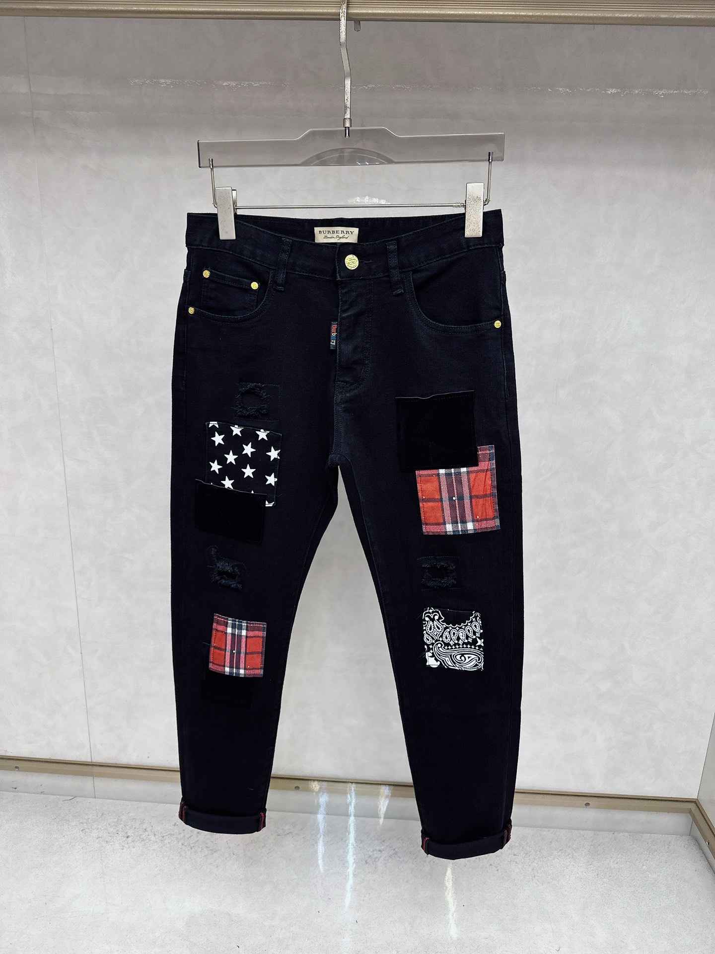 Burberry 2025 autumn winter new men's casual jeans. Original quality, custom denim, logo design, hardware trim. Trendy and stylish. Sizes 29-38.