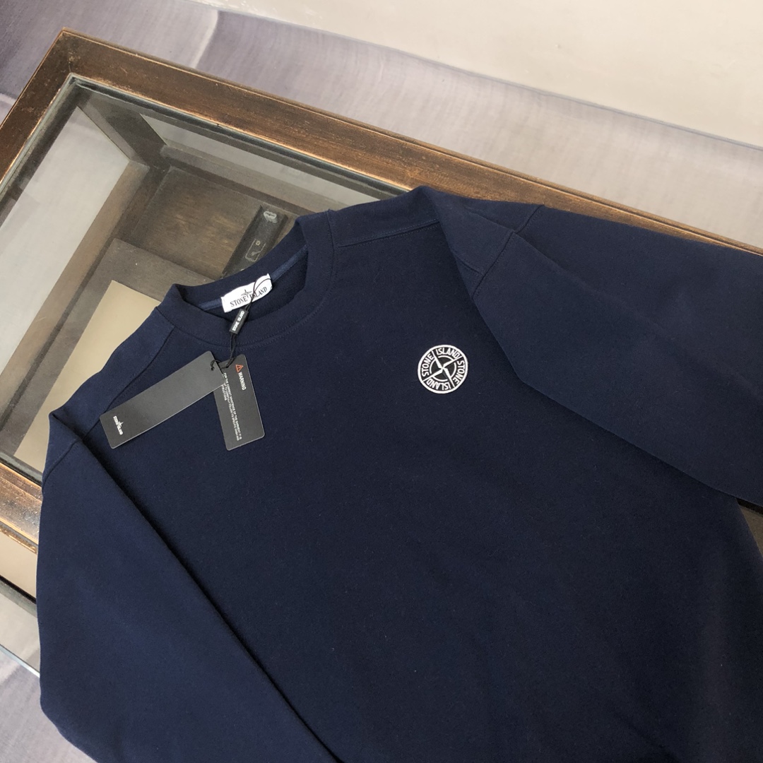 Stone Island 2025 early autumn unisex hoodie and pants set. Features custom fabric, breathable, embroidered logo. Colors: black, white, blue, gray. Sizes: S to XXL.
