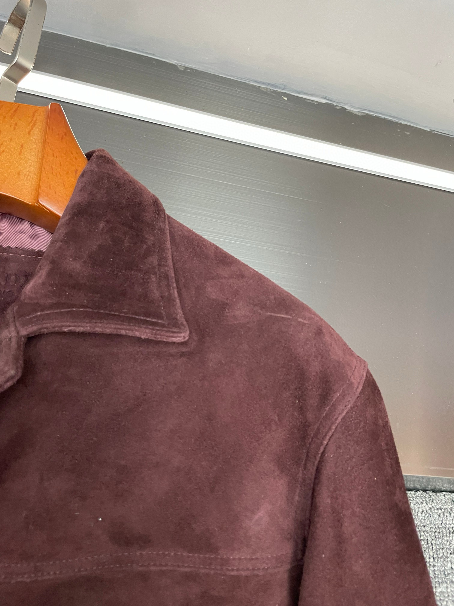 Home•Apparel•Jeans•Searching for a unique jacket this autumn, I found the PRADA Fall/Winter 2025 men's suede leather jacket. Made from Australian wine-red suede, it's soft with a classic collar and iconic triangle logo. Versatile for casual or formal wear, it offers a standout, retro vibe. Sizes: 48-56.