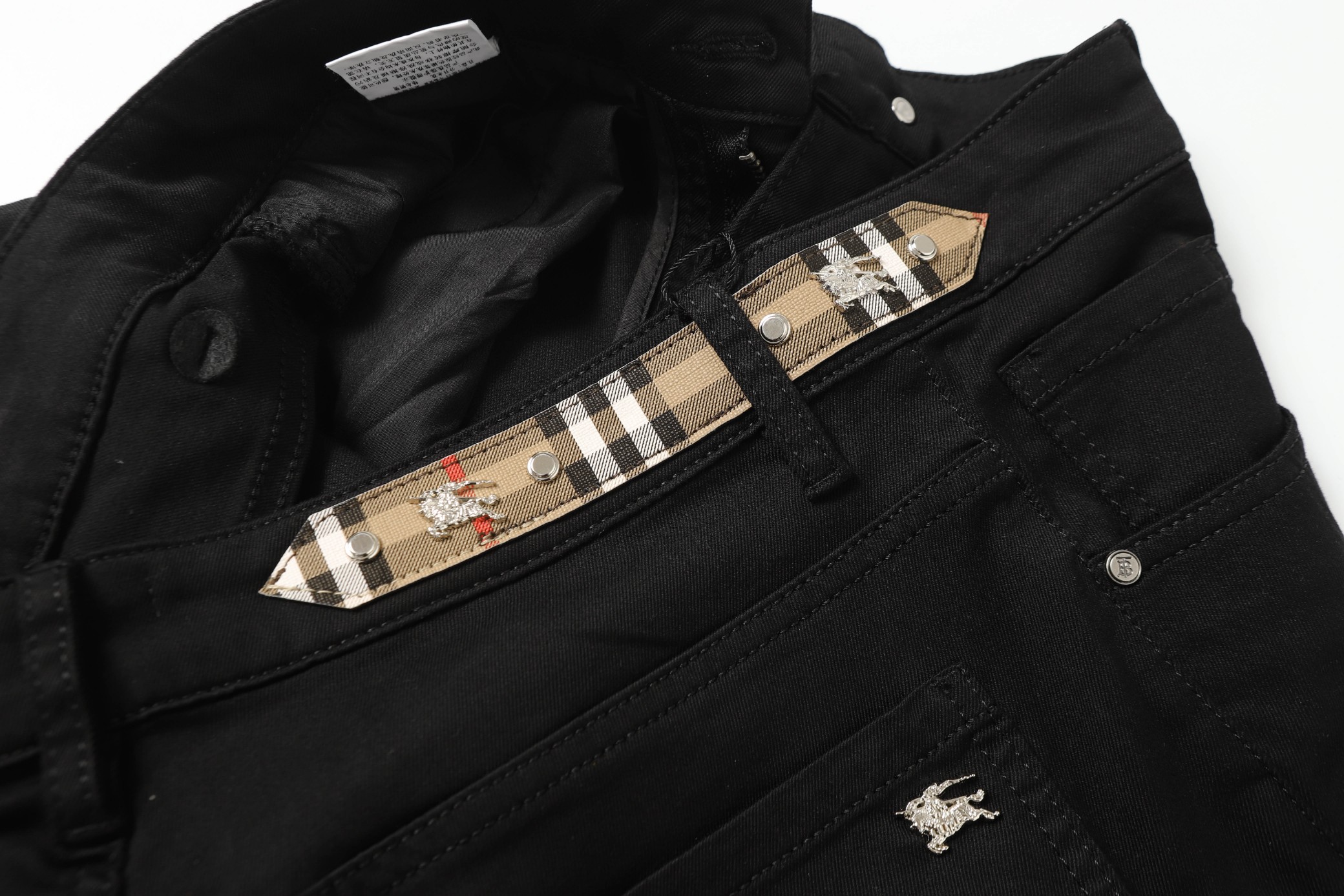 G352 BURBERRY jeans 2025 new, original heavy work, classic logo, full labels. Custom denim, true to boutique. Sizes 28-38.