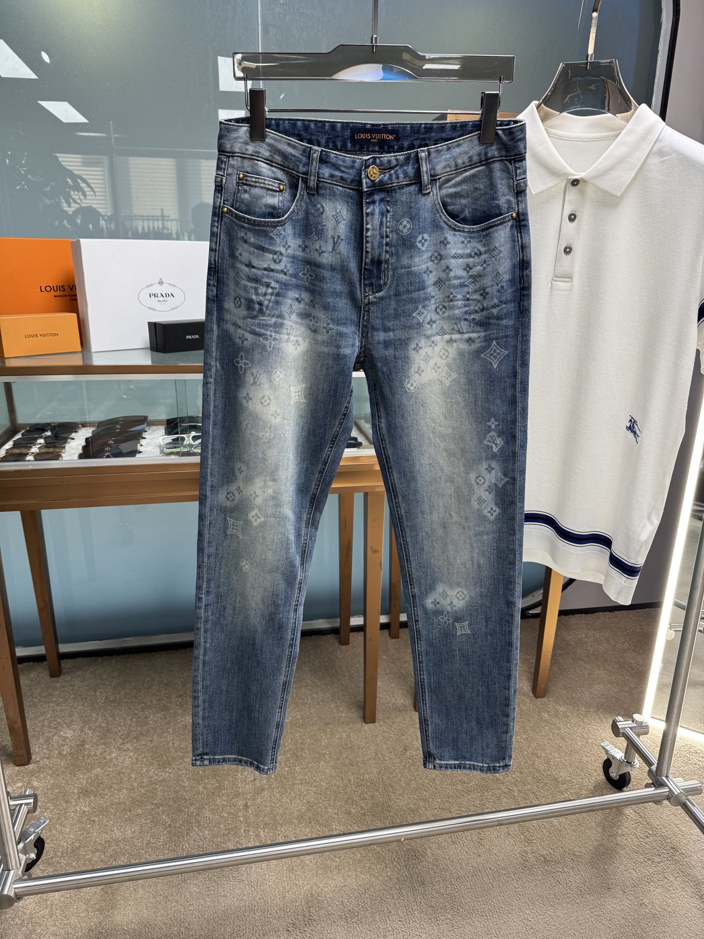 LV 2025 Fall/Winter men's casual jeans, top quality. Custom cotton denim. Versatile for casual/formal wear. Sizes 29-38.