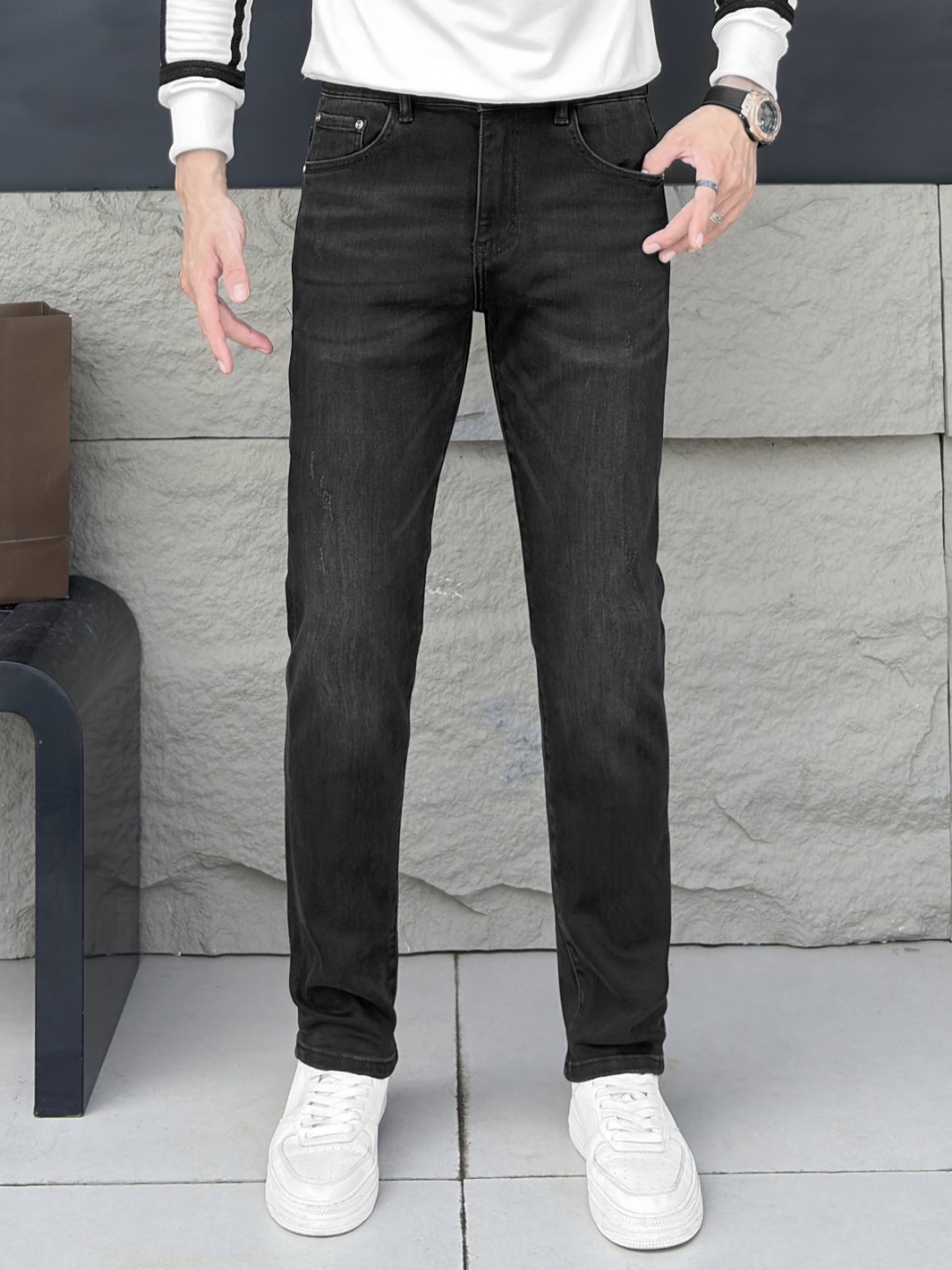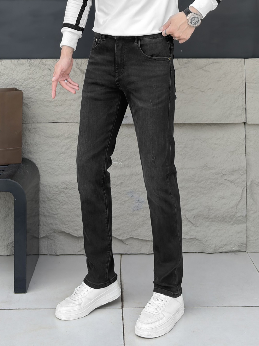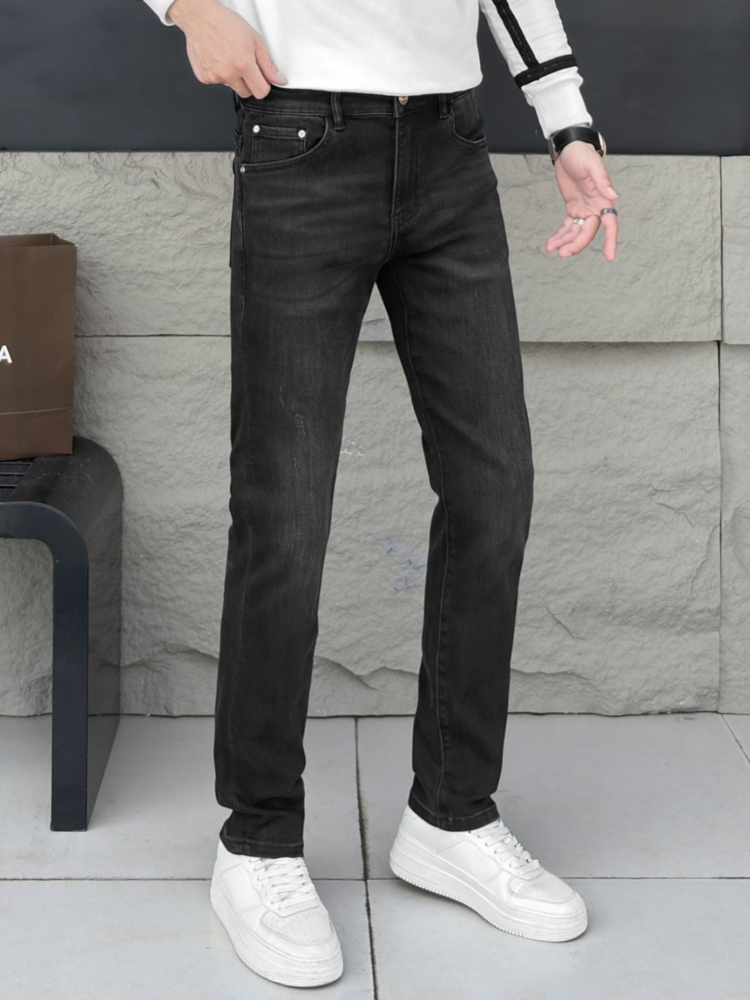 LV Thin Denim Jeans. 2025 latest style. 98% cotton, 2% spandex. Solid, slightly stretchy, comfortable. Simple design, hidden zipper, embossed pockets. Excellent fit.