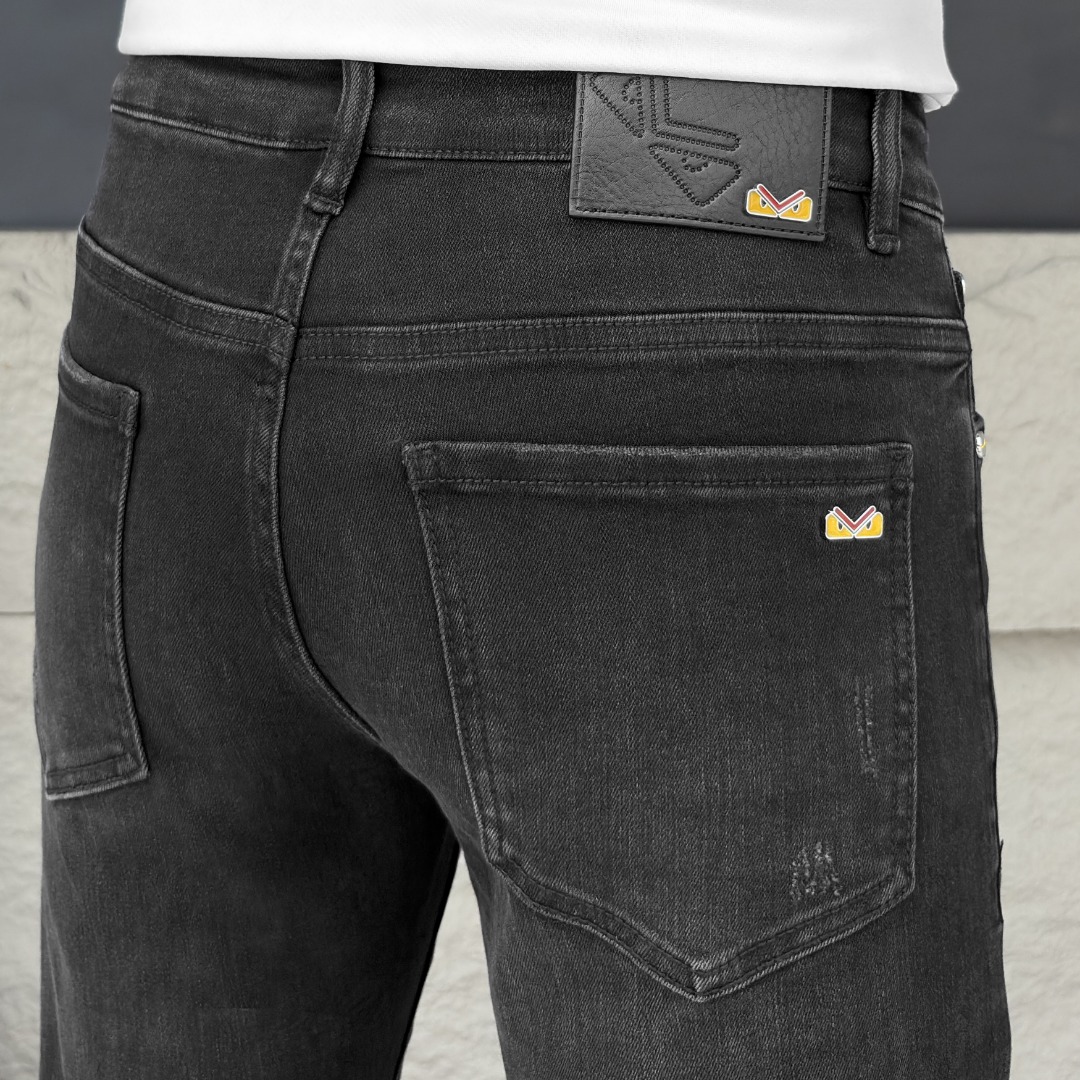 FENDI men's autumn jeans. Imported denim, eco-wash, soft, durable. Slim straight fit, stretchy. Sizes 28-38. Next-day shipping.