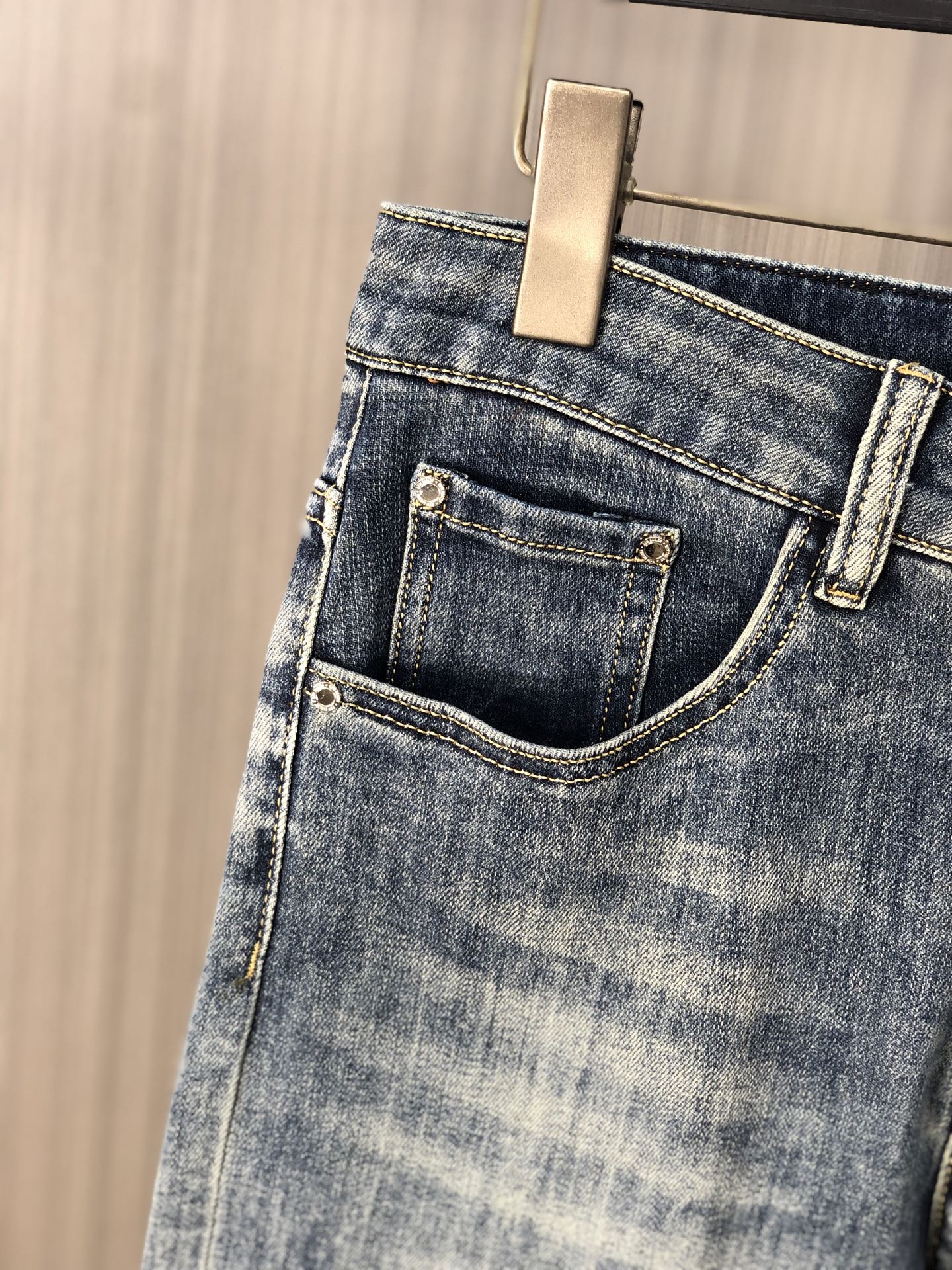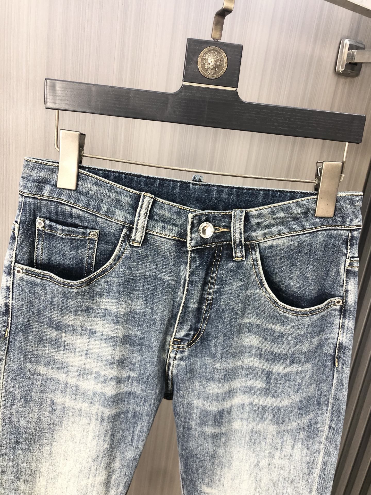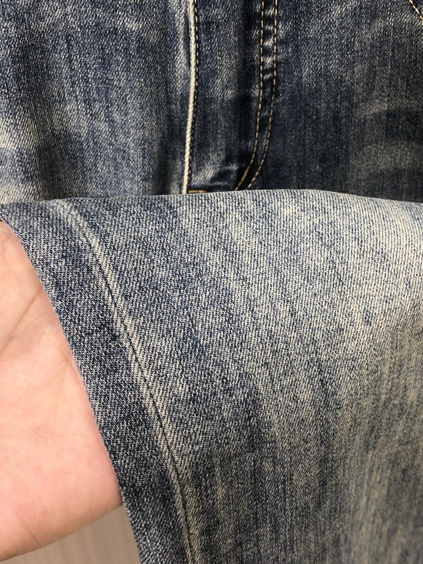 LV Thin Denim Jeans. 2025 latest style. 98% cotton, 2% spandex. Solid, slightly stretchy, comfortable. Simple design, hidden zipper, embossed pockets. Excellent fit.