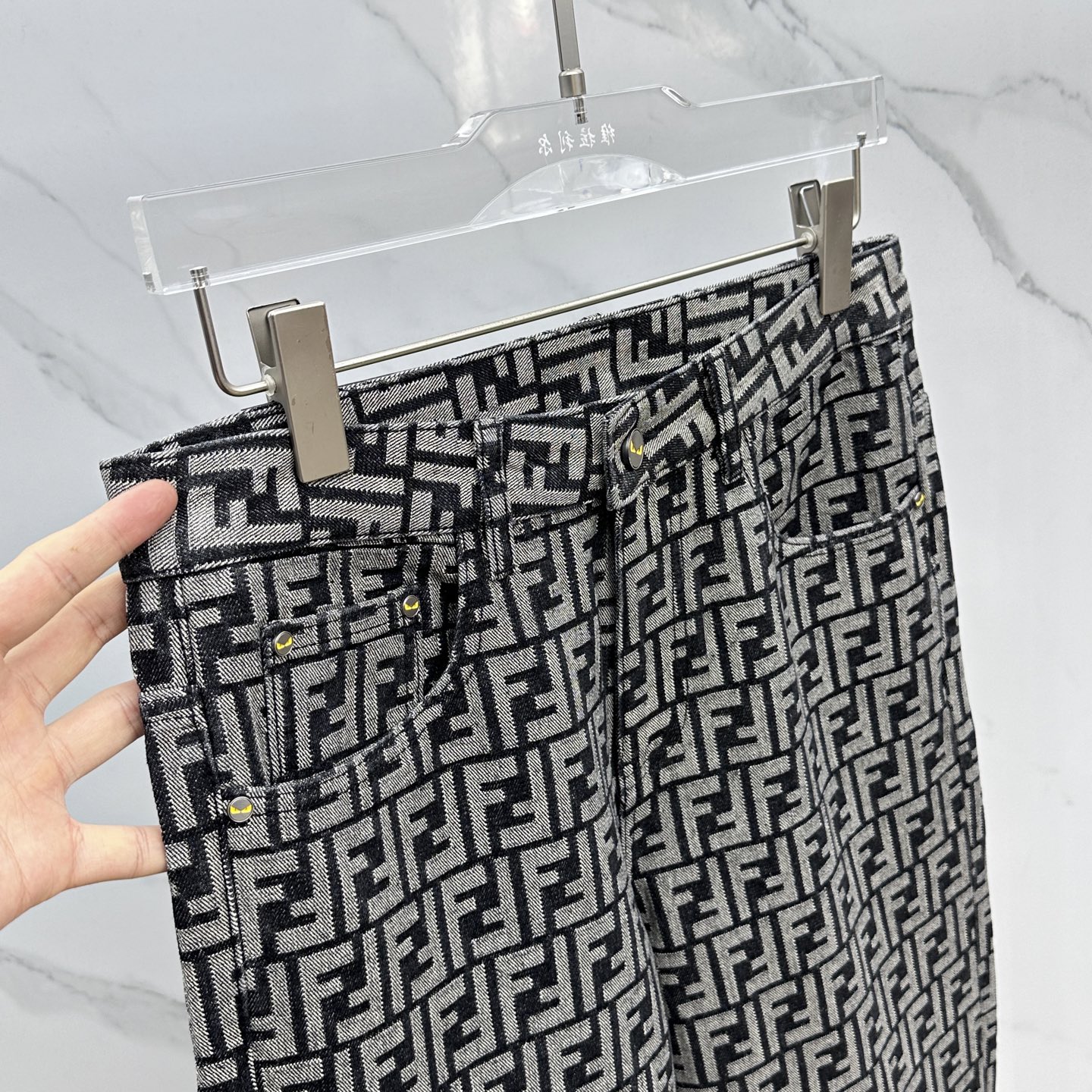Fendi 2025 early fall custom jeans. Premium imported denim, meticulous distressing. Sizes 29-38 (excl. 35, 37). Full branding.