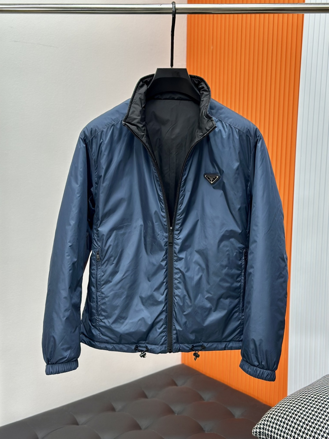 Home•Apparel•Jeans•Prada reversible jacket with cotton filling, classic and trendy design, comfortable fit, ideal for urban wear and travel. Available in sizes 48-56.