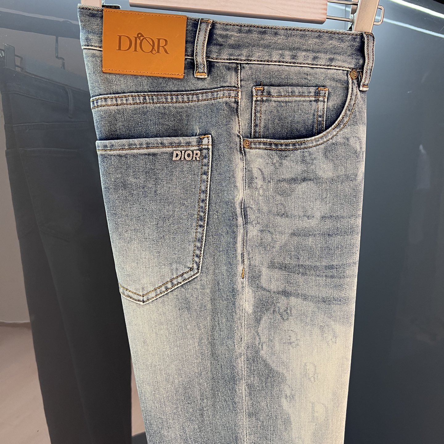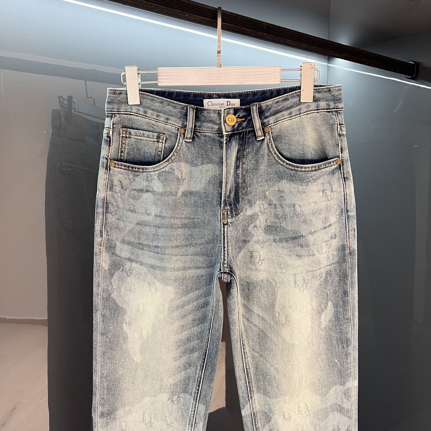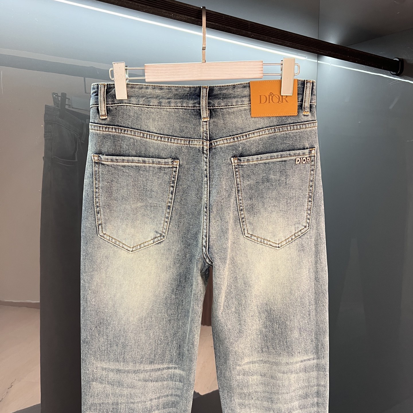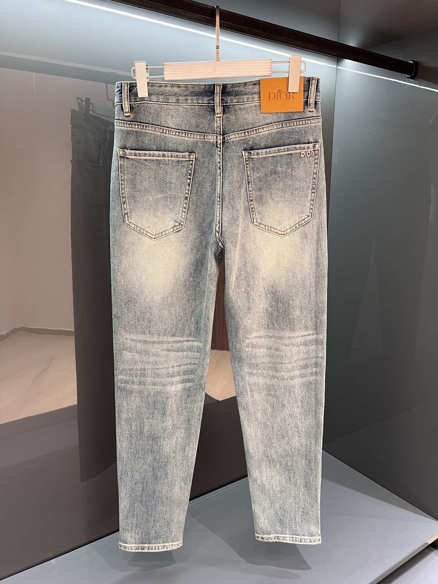 New Di*r Jeans 25SS: Men's washed vintage slim-fit denim. Japanese selvedge fabric, anti-shrink finish. Light blue, sizes 29-38.