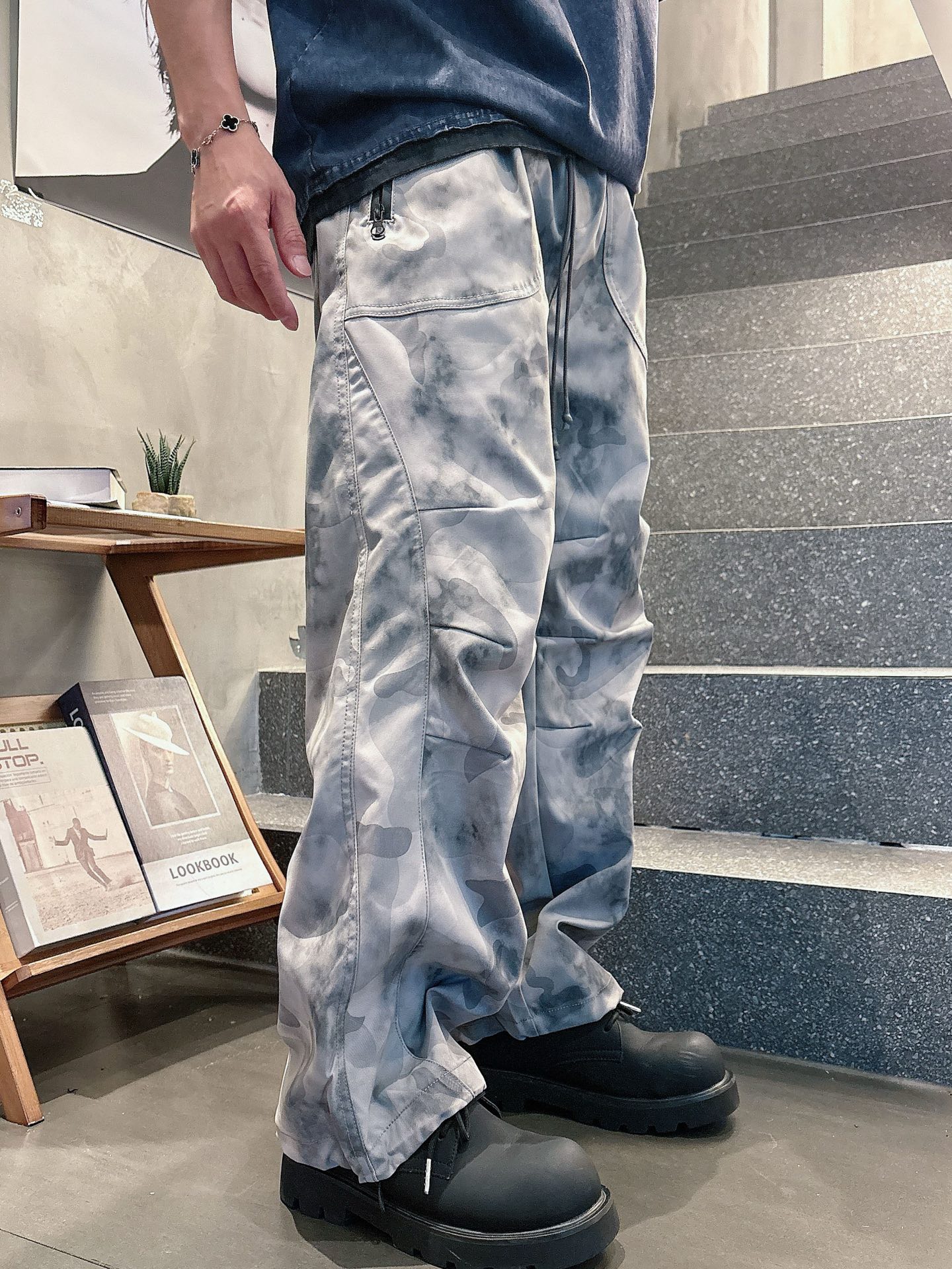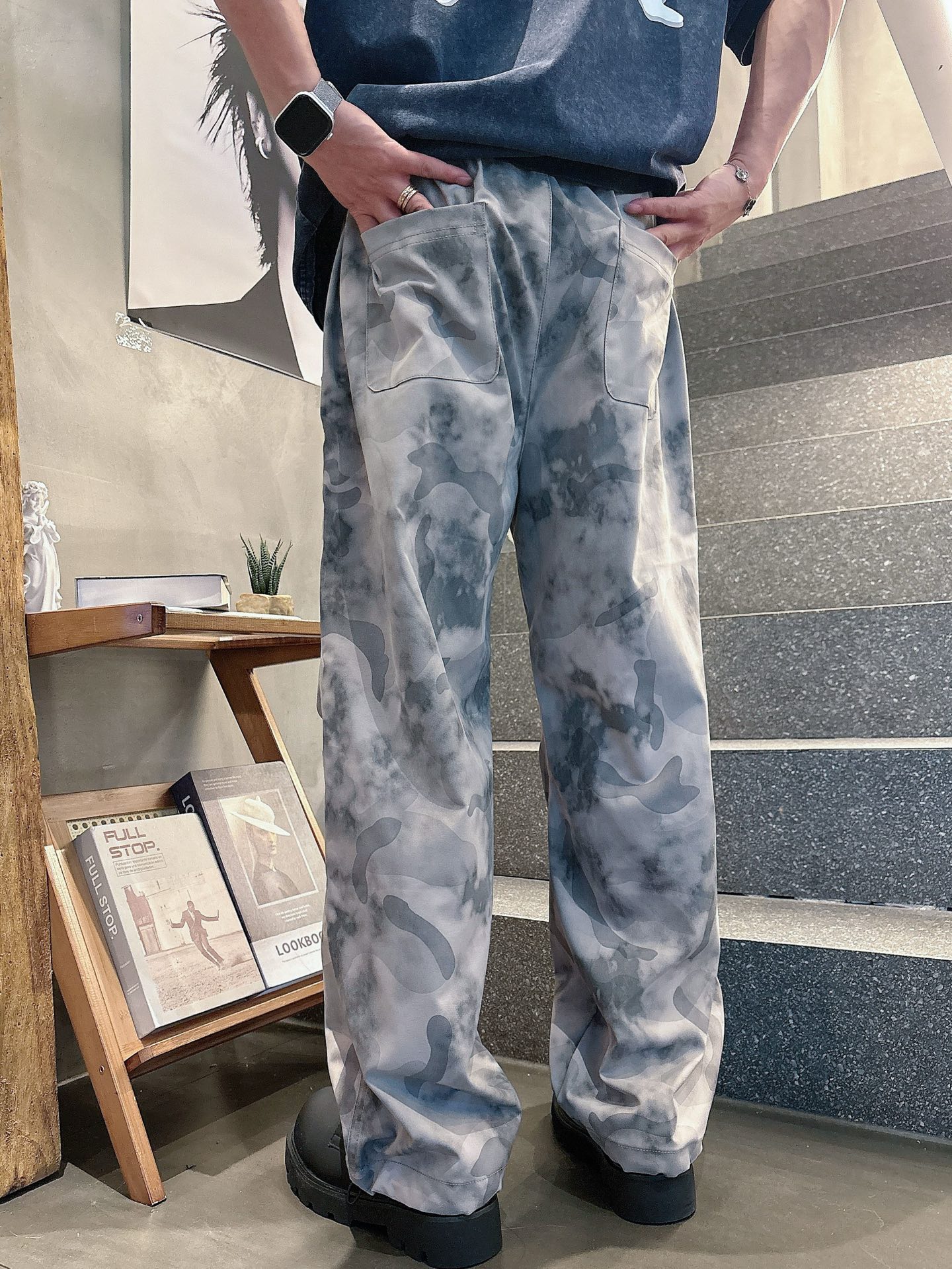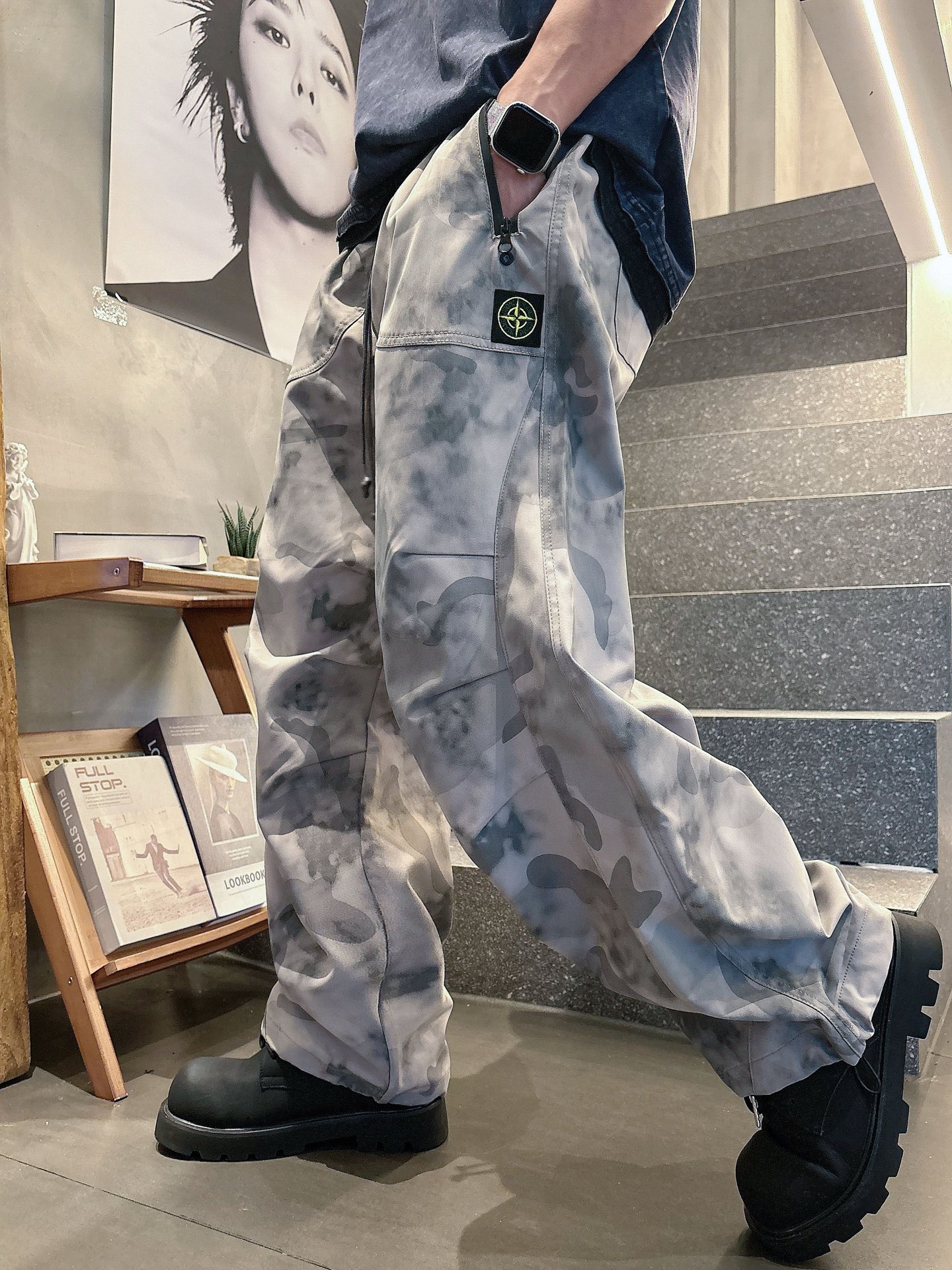 Stone Island autumn cargo pants. Polyester, durable, wrinkle-resistant, quick-dry. Camouflage, elastic waist. Ideal for hiking, camping, workwear, street style. Sizes M-3XL.