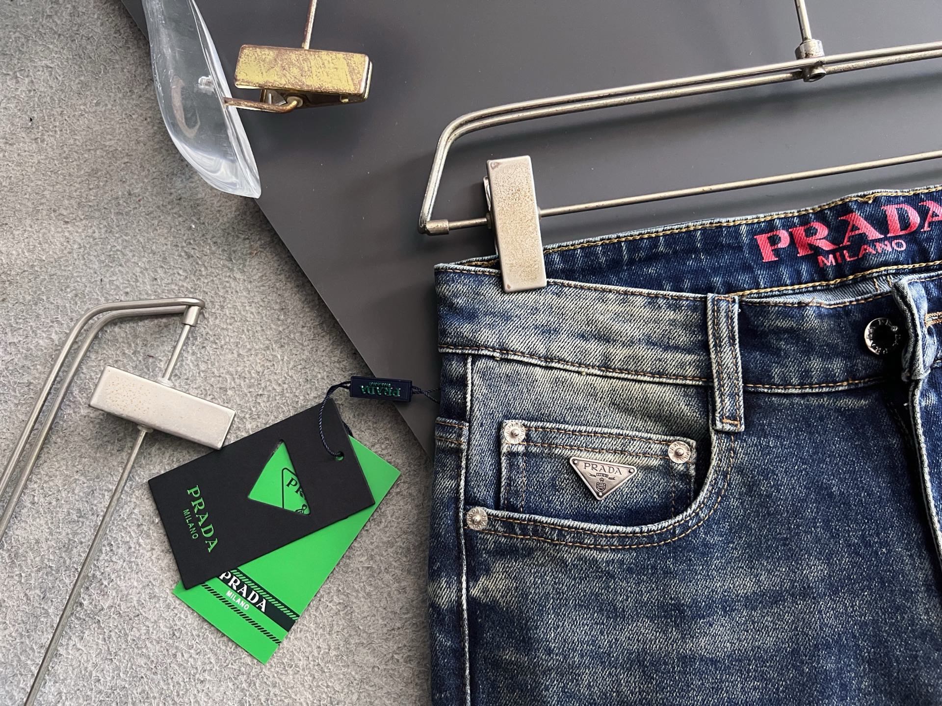 Prada autumn-winter washed jeans, imported stretch fabric, comfortable and elastic, unique design, great fit, high-end quality.