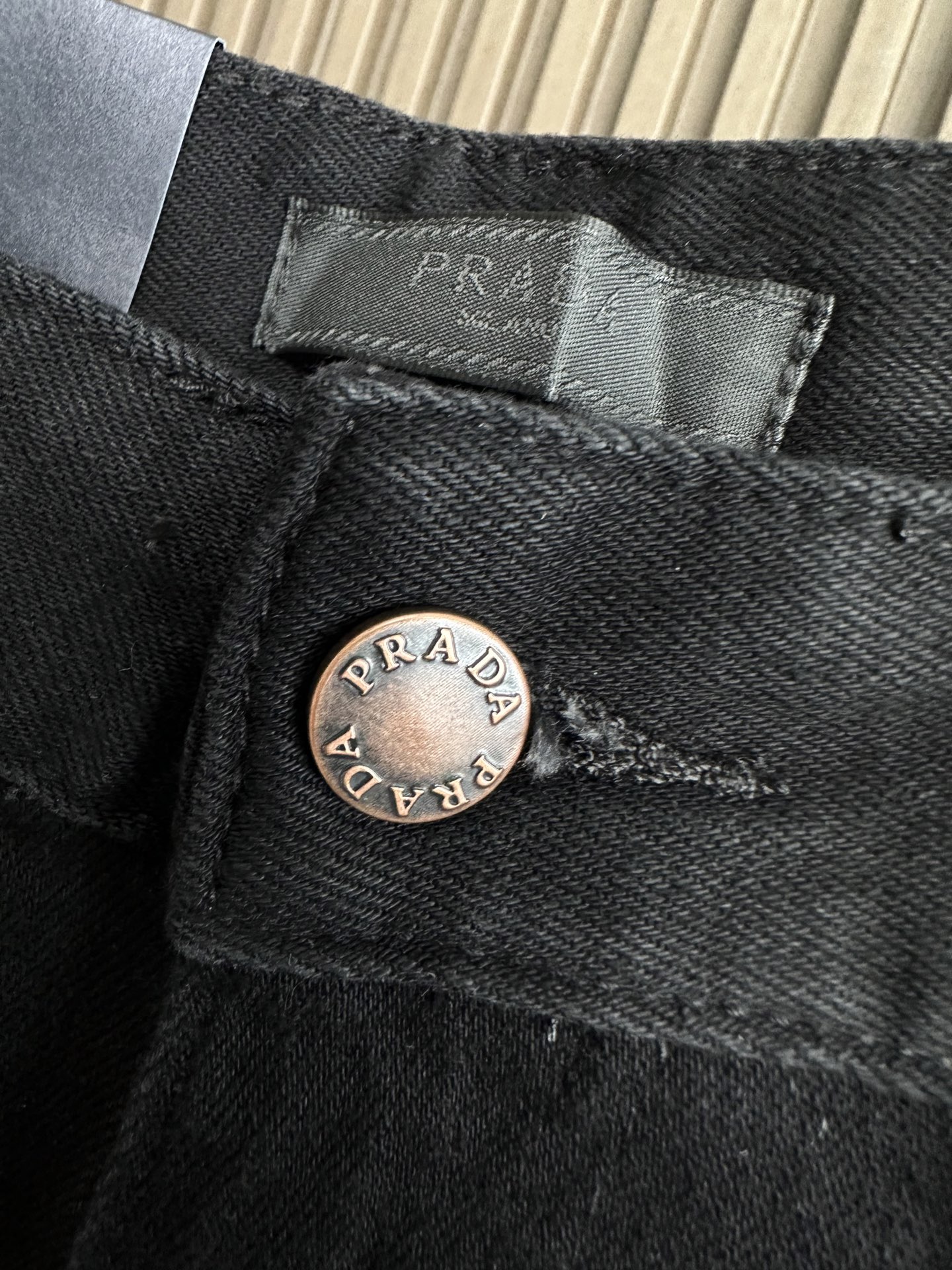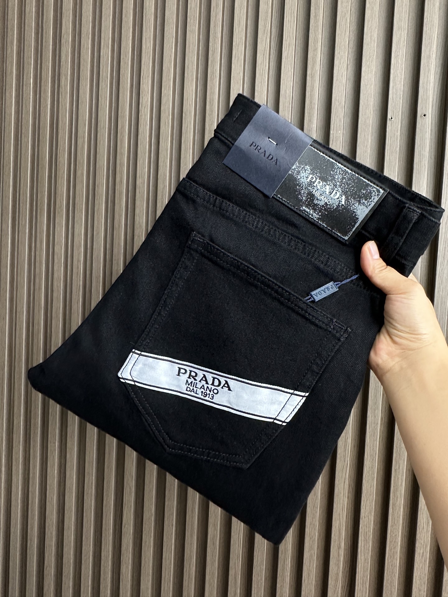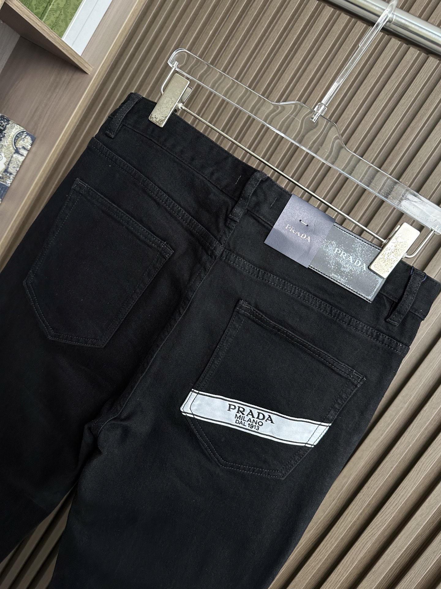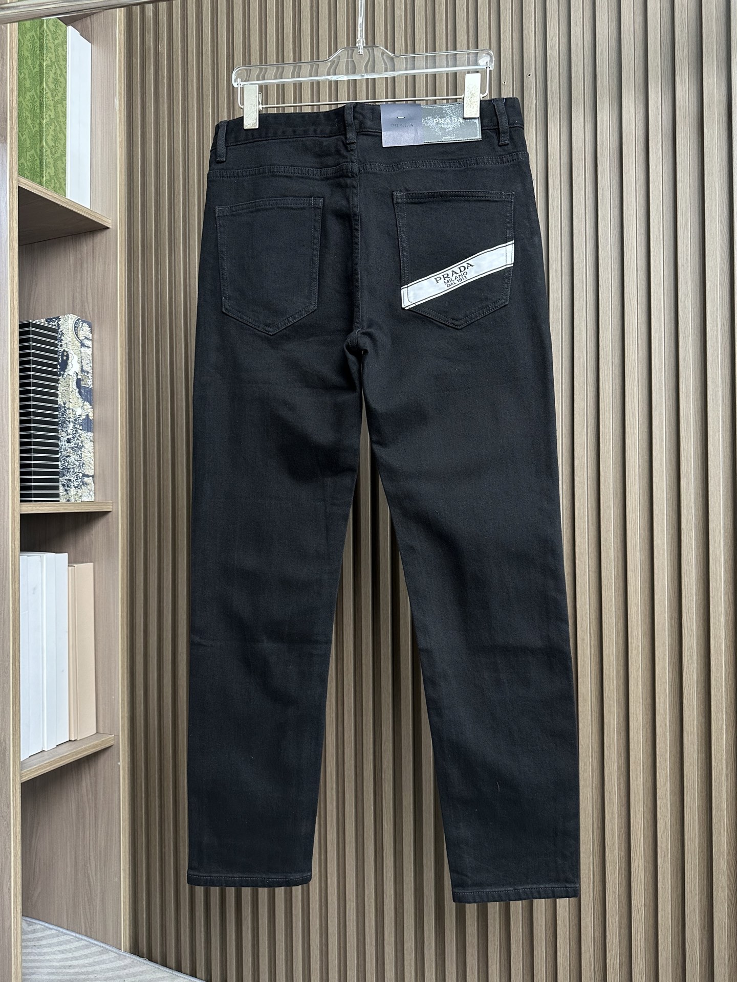 Prada 25FW autumn-winter jeans. Brand print, elastic fabric, slim straight cut. Classic, versatile. Sizes: 29-38 (excl. 35,37).