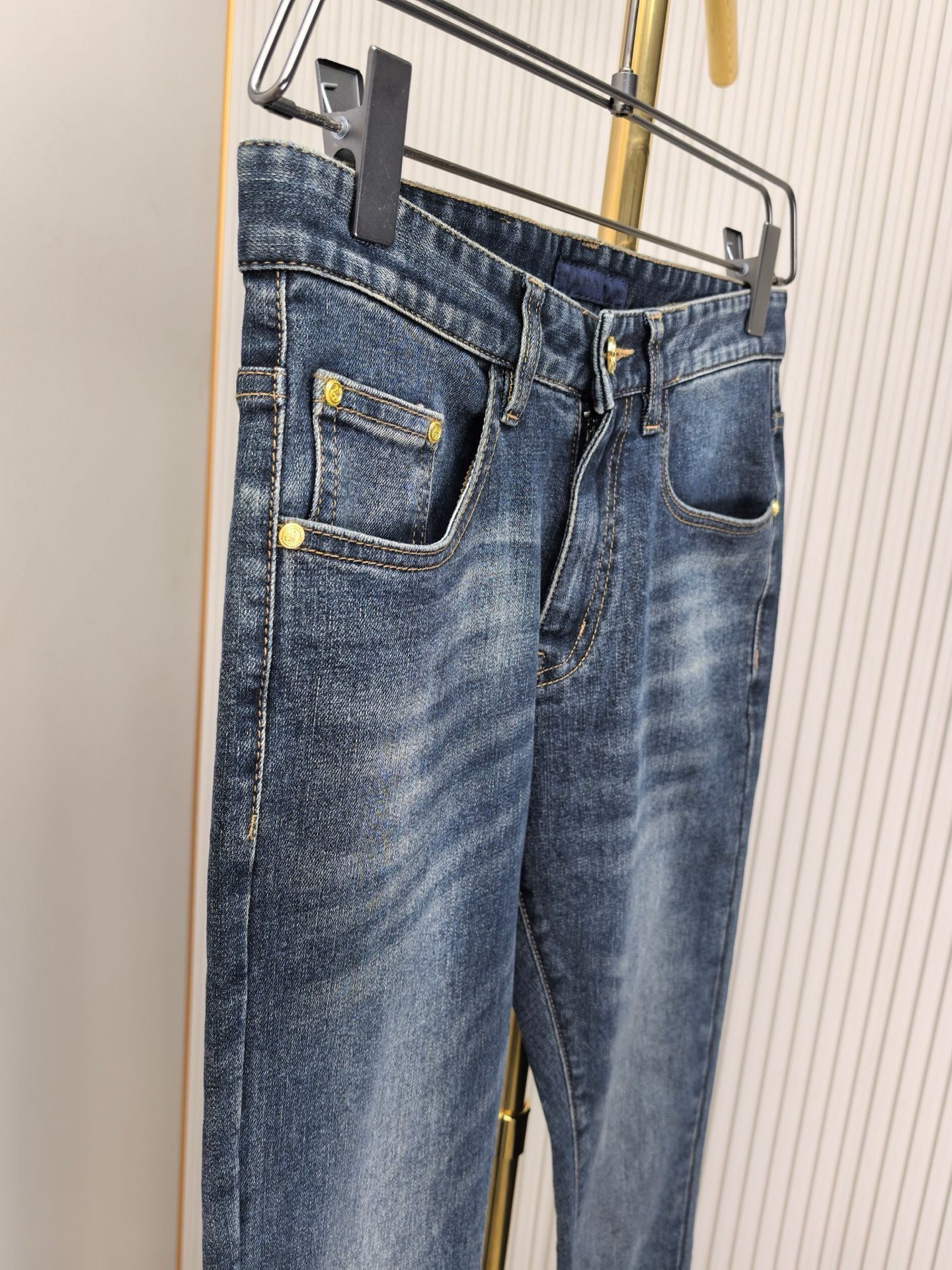 Prada 2025 early fall men's jeans. Heavy wash denim, custom soft fabric, top comfort & breathability. Custom metal logos, elastic material. Low-key design. Sizes 29-40.