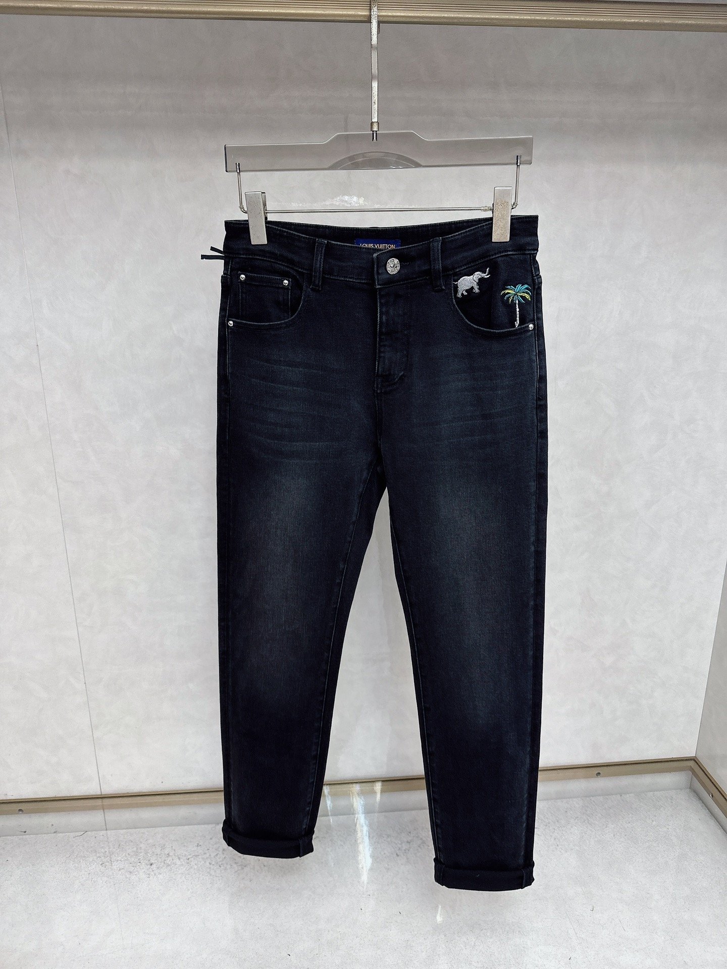 LV Thin Denim Jeans. 2025 latest style. 98% cotton, 2% spandex. Solid, slightly stretchy, comfortable. Simple design, hidden zipper, embossed pockets. Excellent fit.