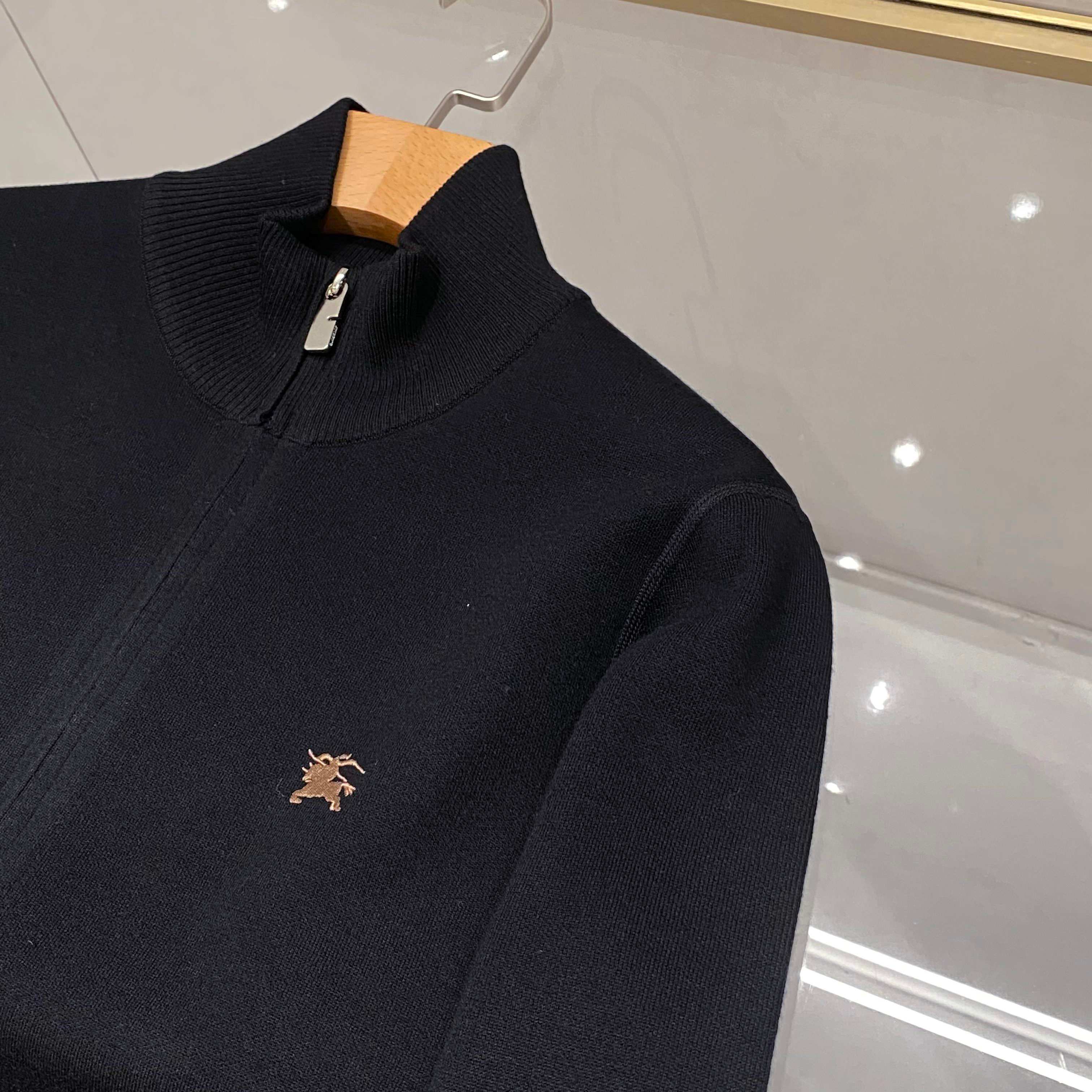 Burberry men's wool stand-collar coat. Classic British design with gold embroidery and knight emblem. 70% wool blend for warmth and structure. Versatile for meetings, weekends, or evenings. Sizes M-3XL.