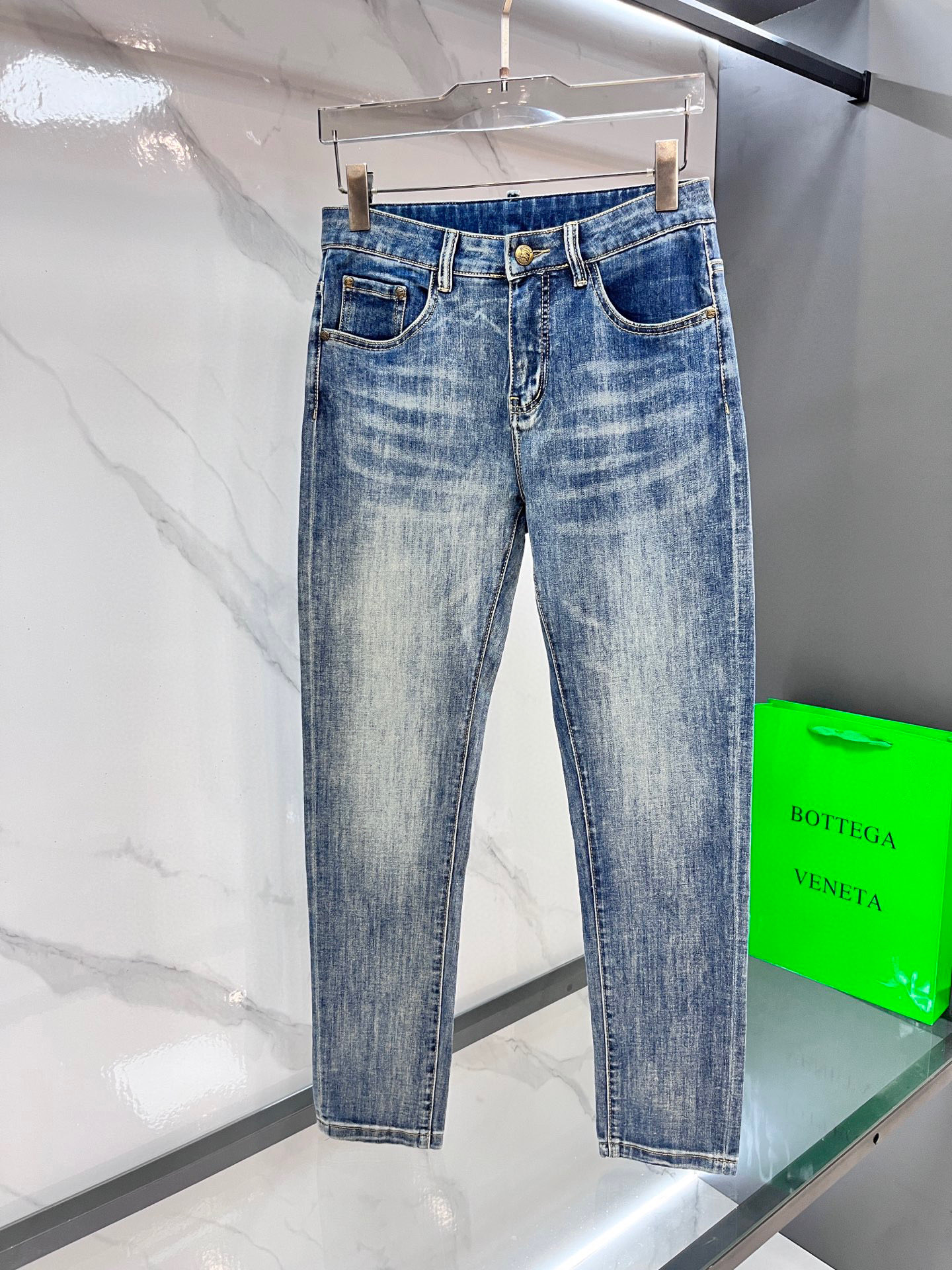 LV Thin Denim Jeans. 2025 latest style. 98% cotton, 2% spandex. Solid, slightly stretchy, comfortable. Simple design, hidden zipper, embossed pockets. Excellent fit.