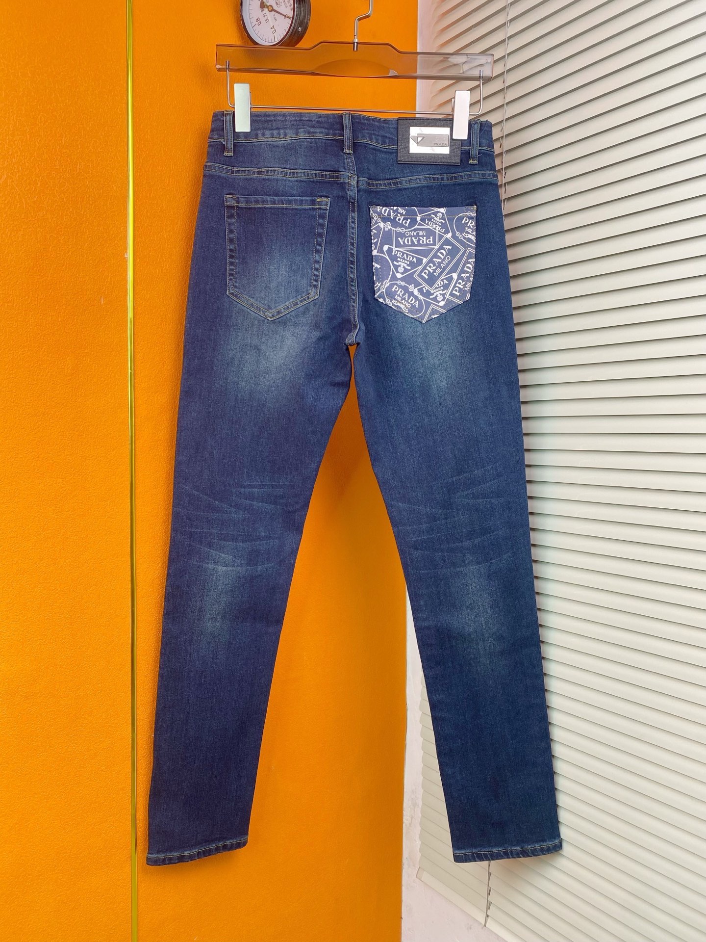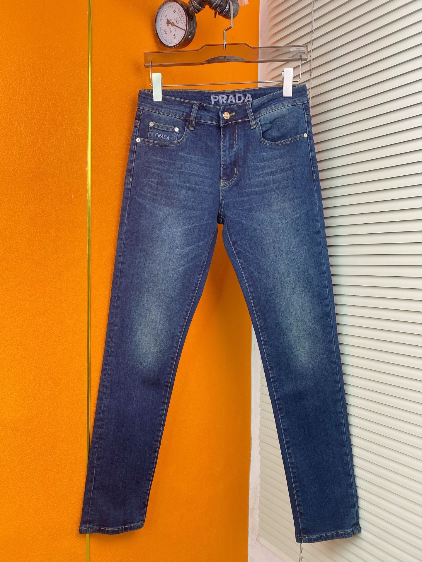 Prada classic blue stretch cotton jeans, slim fit, sizes 29-38.