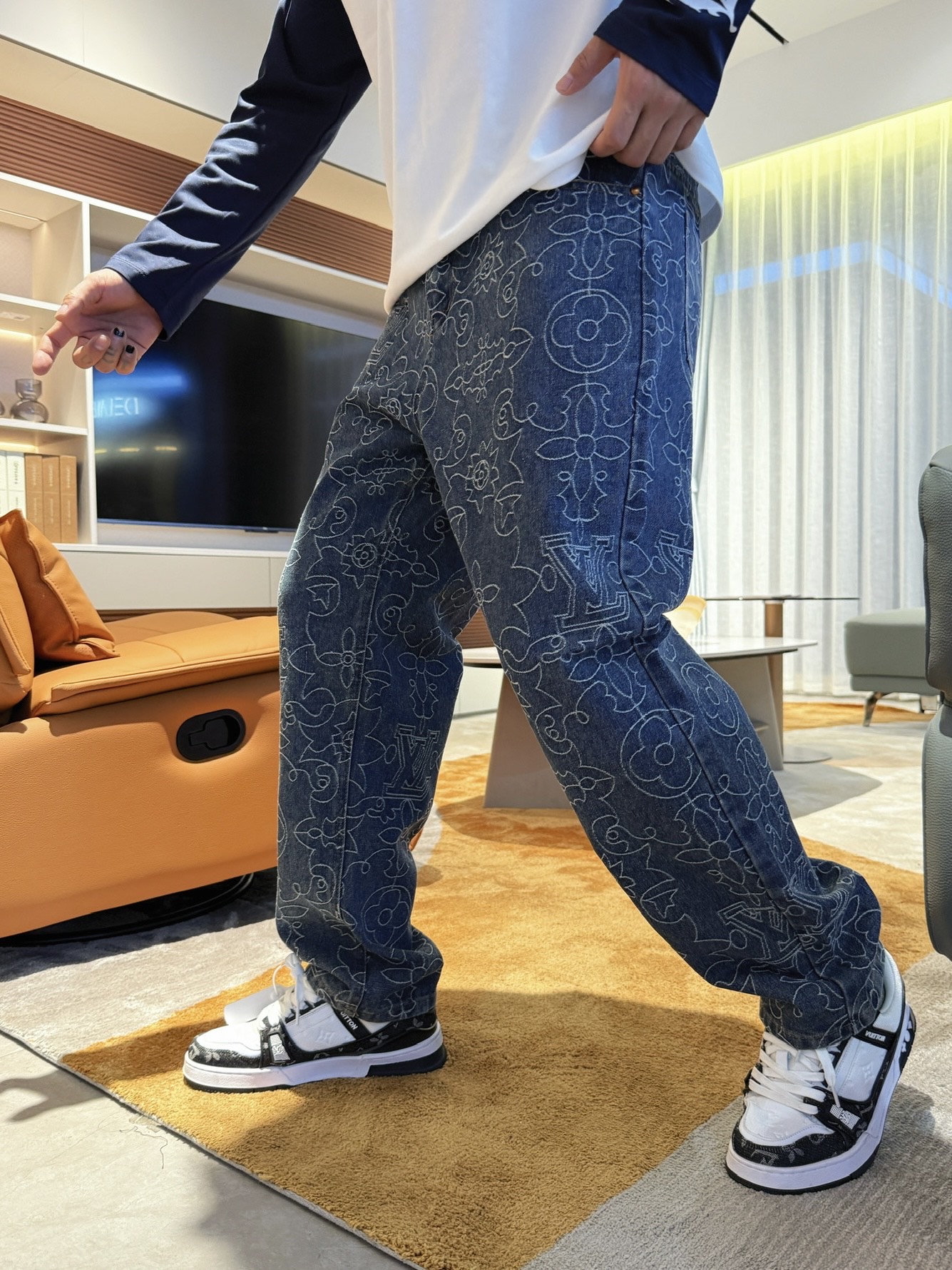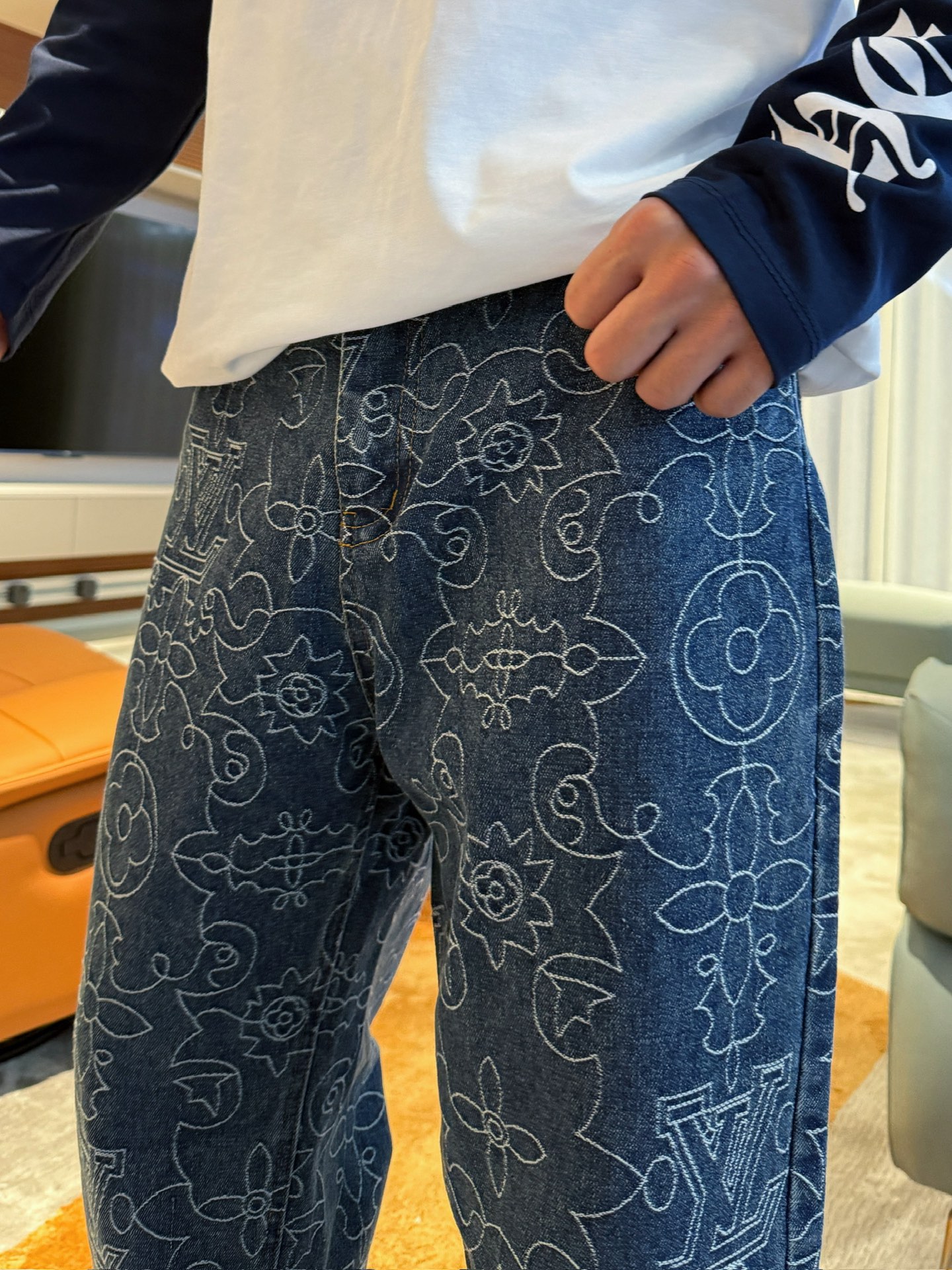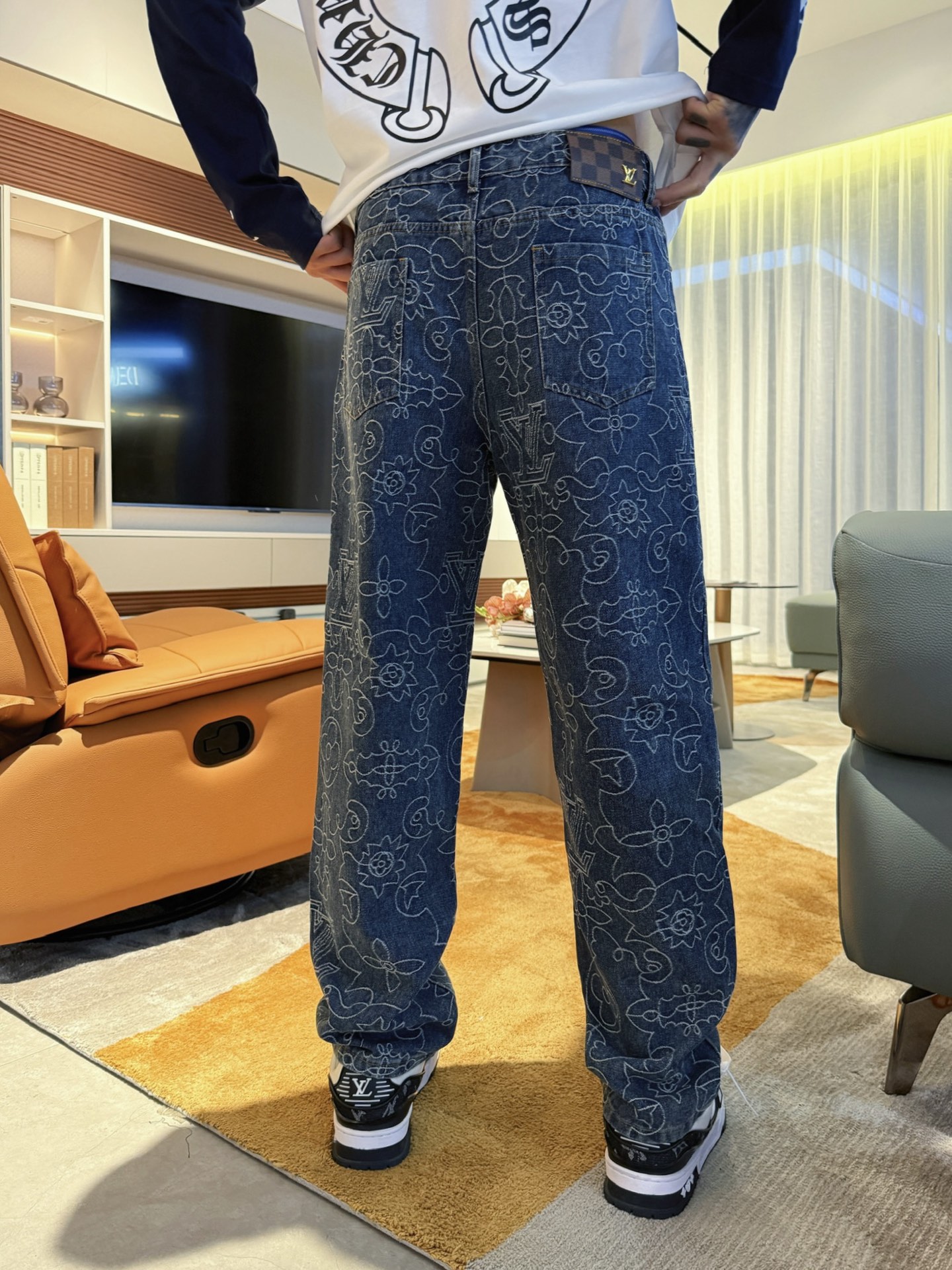 LV 2025 Fall/Winter new jeans. Original design, classic logo, complete labels. Custom denim fabric, matches store quality. Sizes 30-36 available.