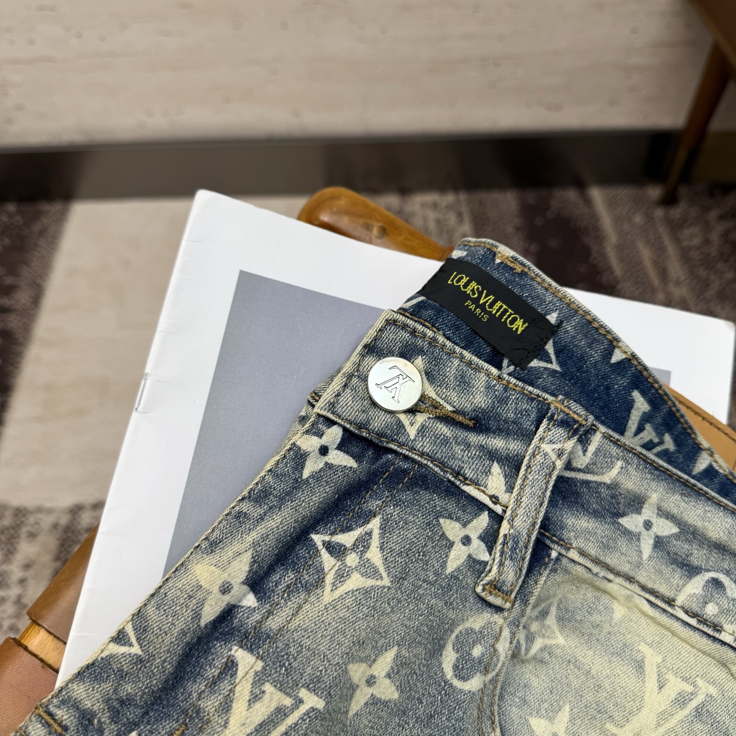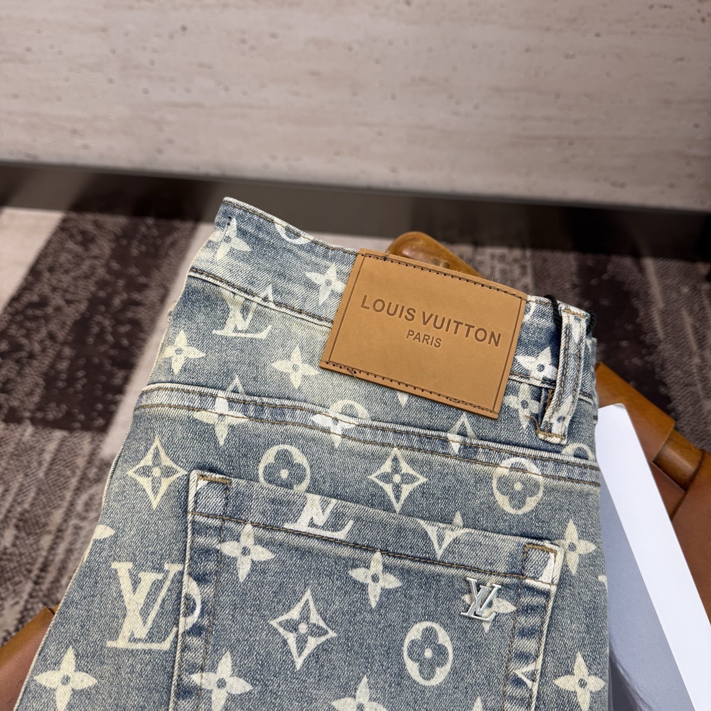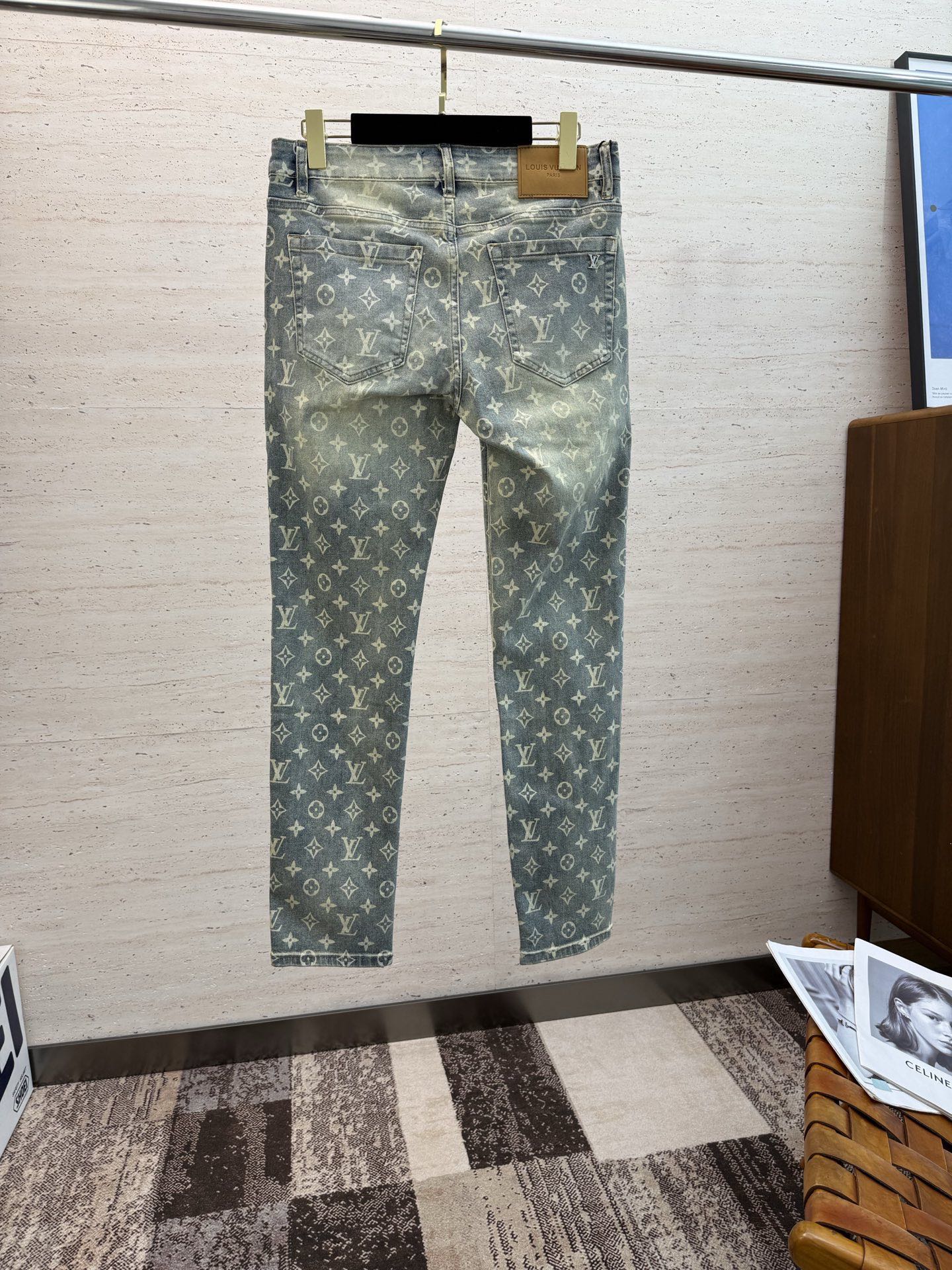 LV25S Men's Straight Leg Jeans for Spring/Autumn. Soft, durable cotton denim with classic embossed logo. Sizes 29-38.