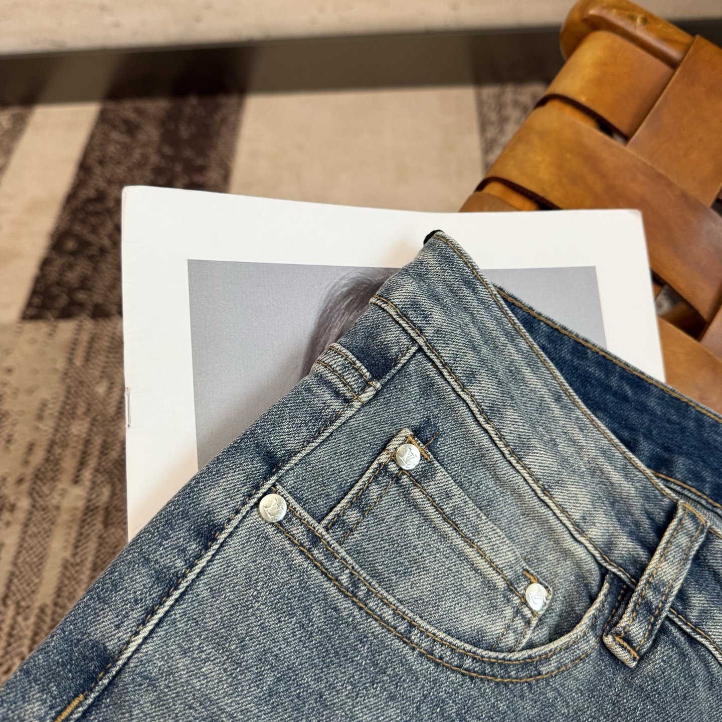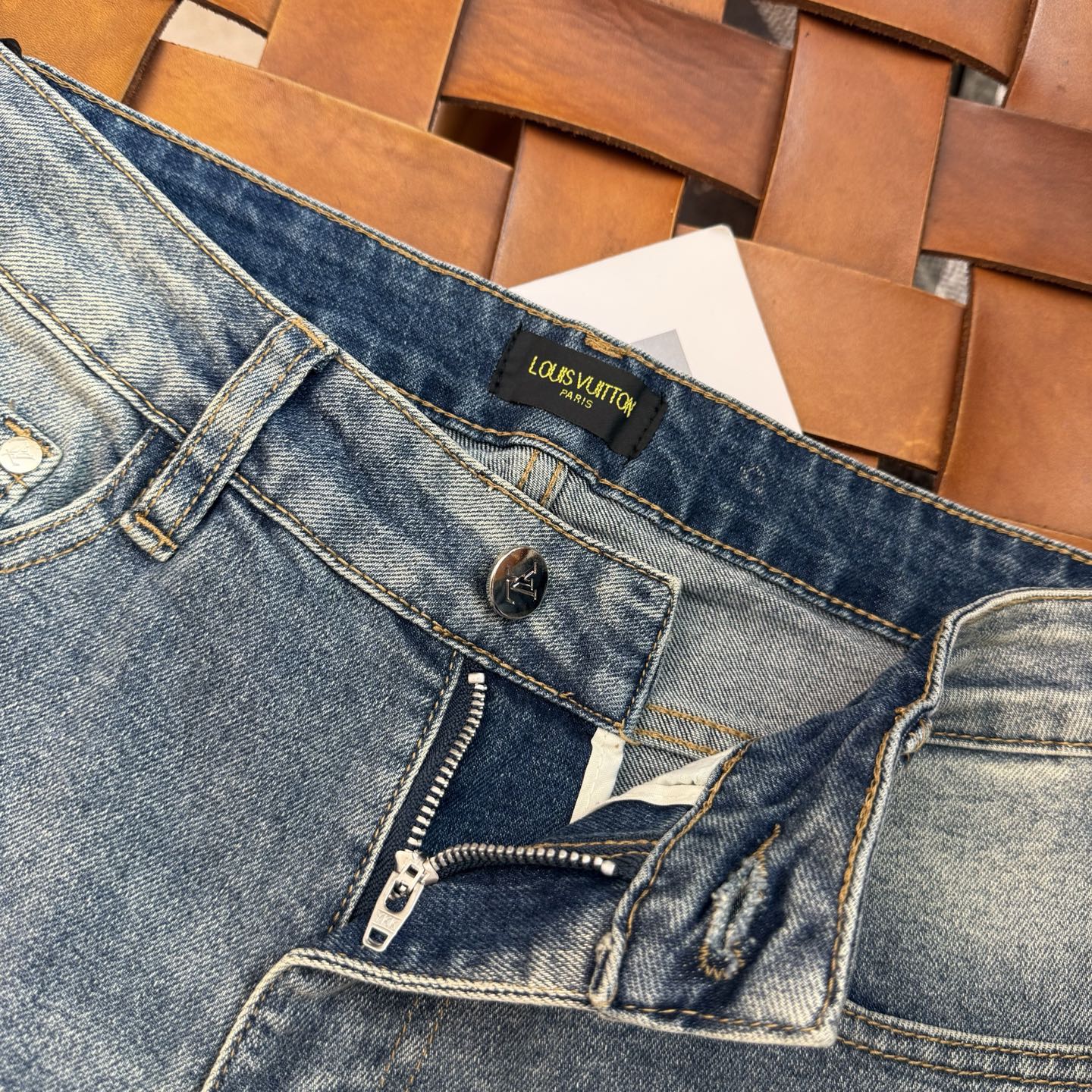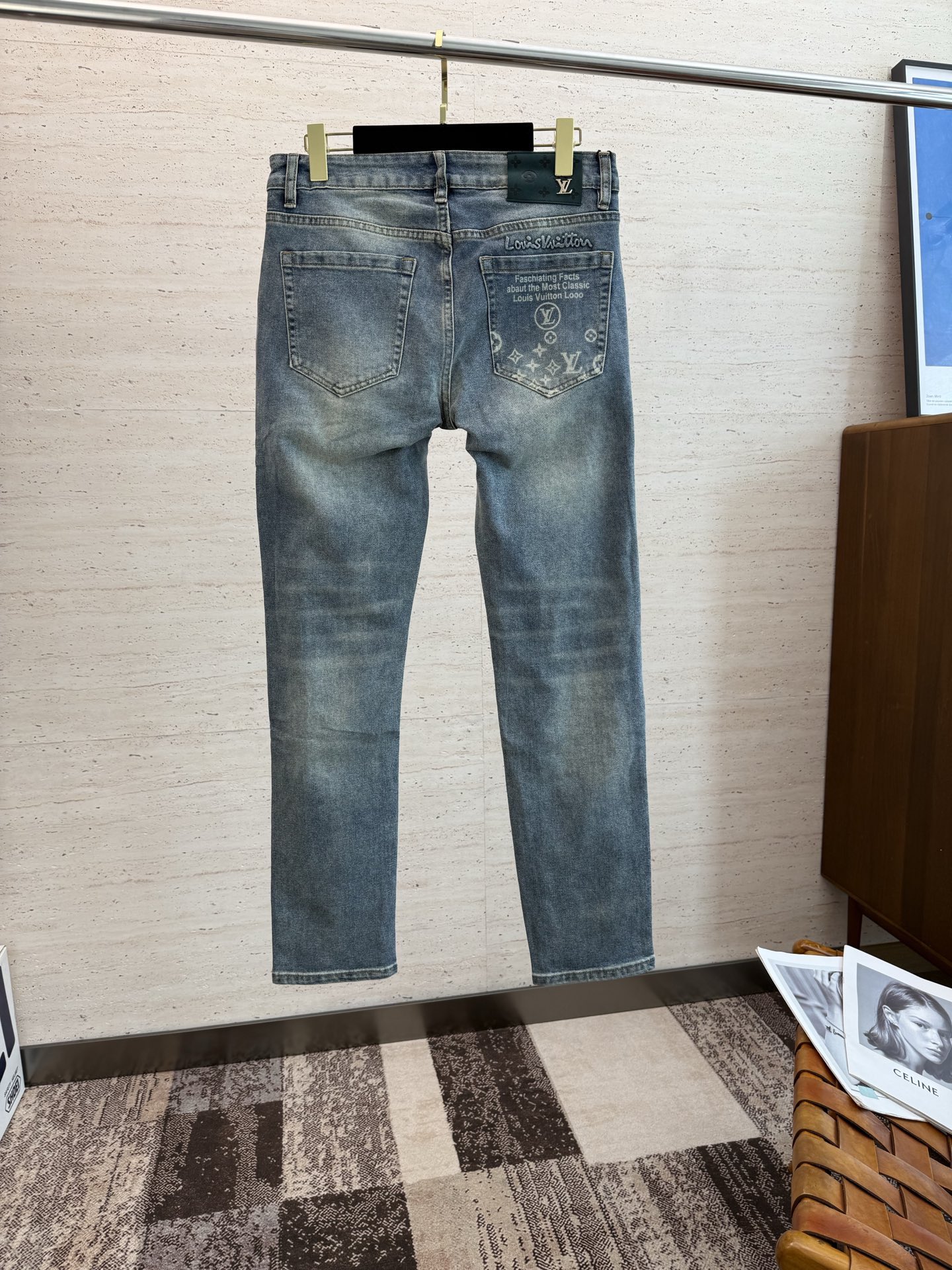 LV25S Men's Straight Leg Jeans for Spring/Autumn. Soft, durable cotton denim with classic embossed logo. Sizes 29-38.