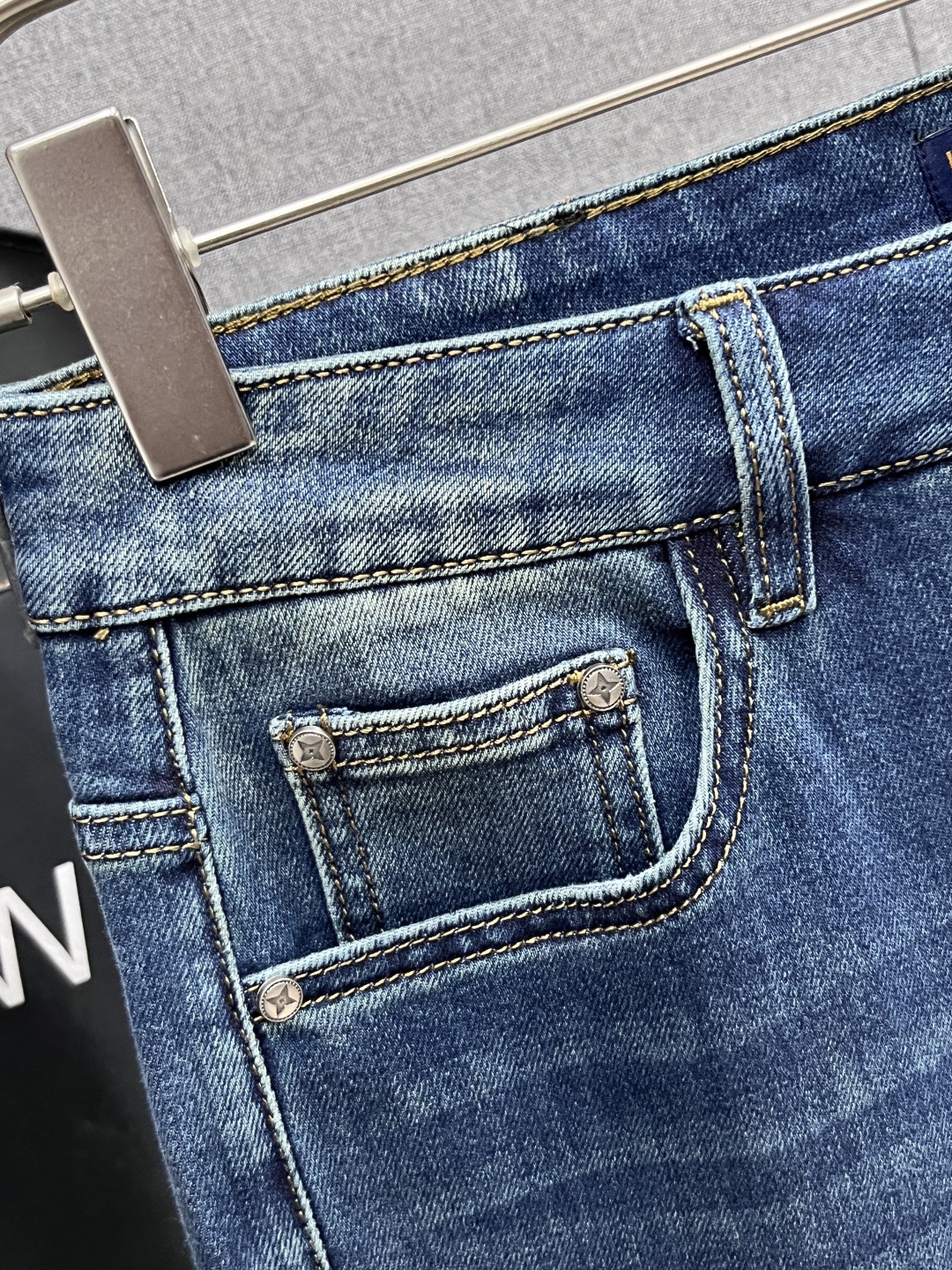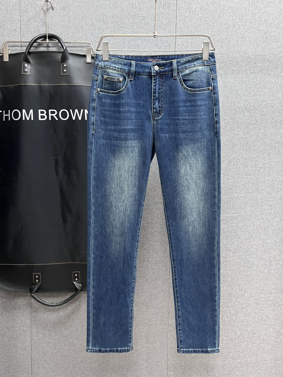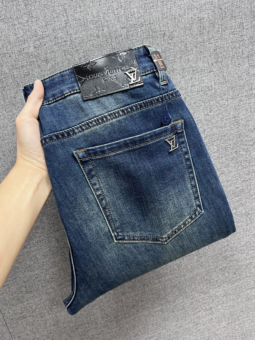 LV Thin Denim Jeans. 2025 latest style. 98% cotton, 2% spandex. Solid, slightly stretchy, comfortable. Simple design, hidden zipper, embossed pockets. Excellent fit.