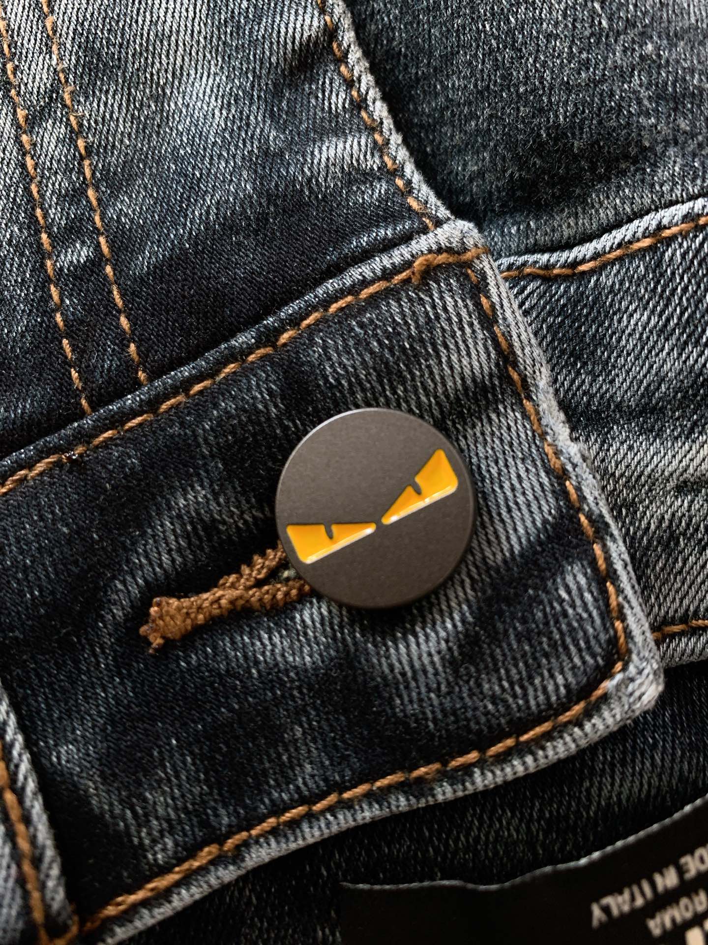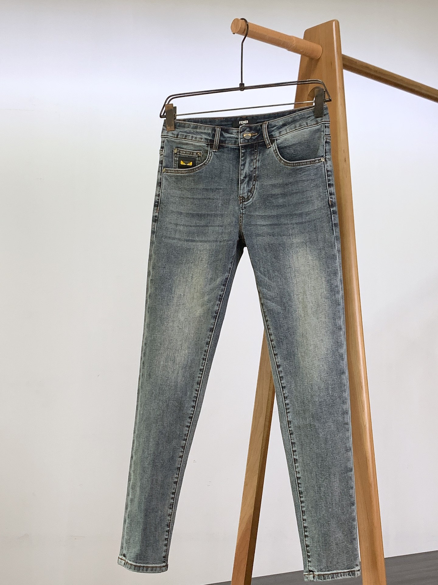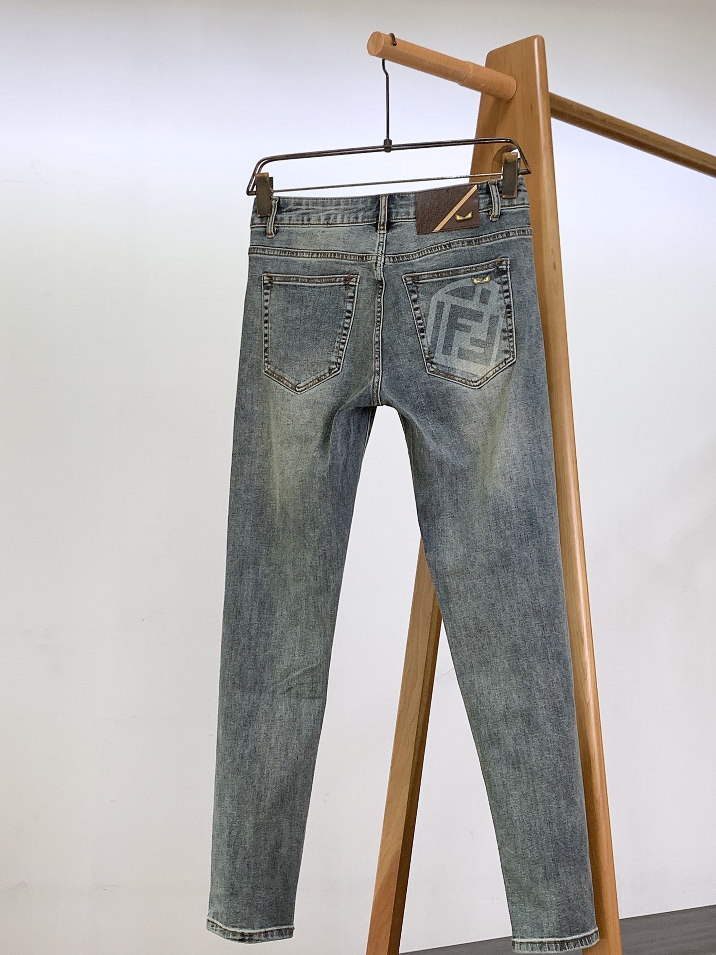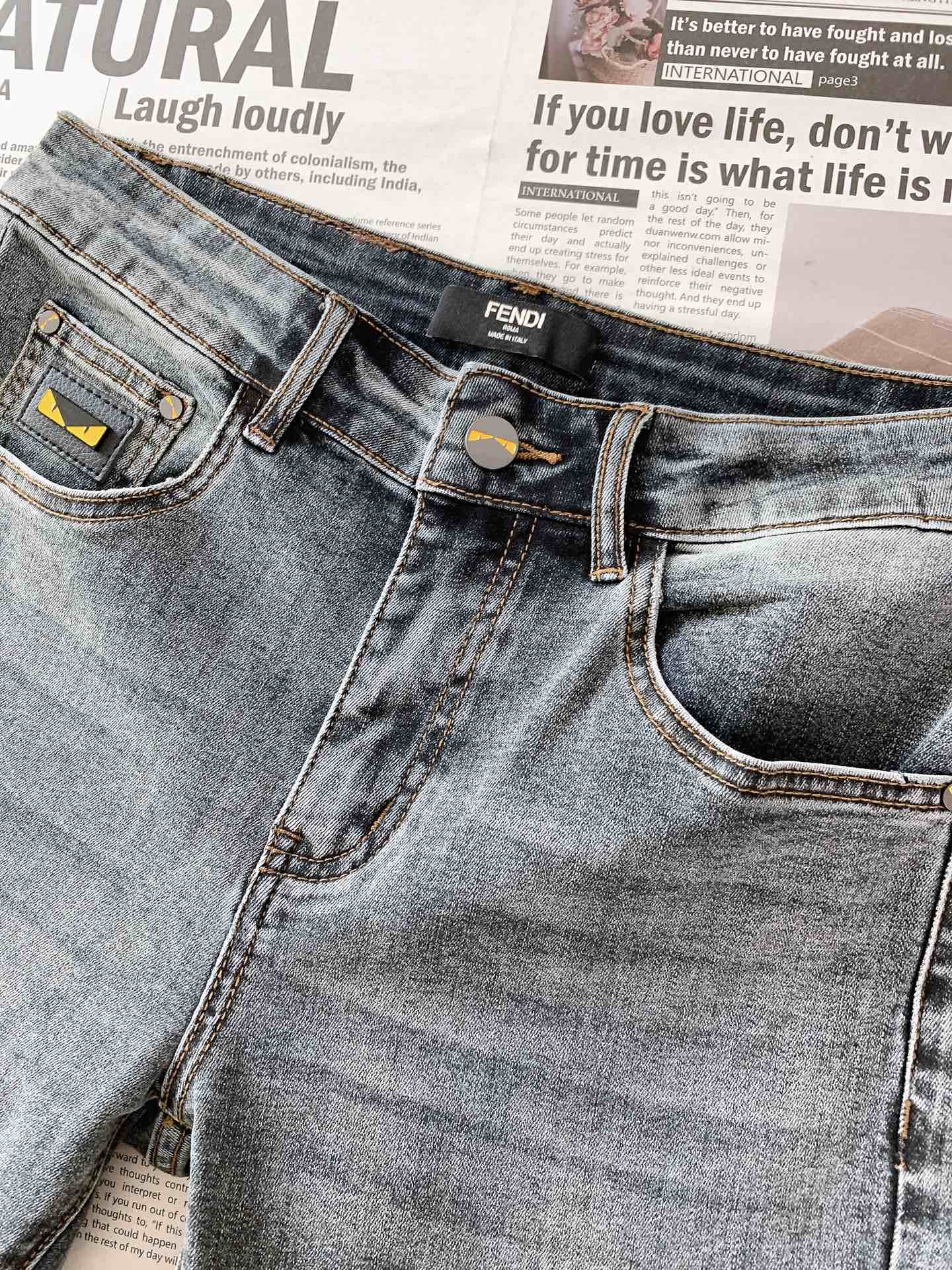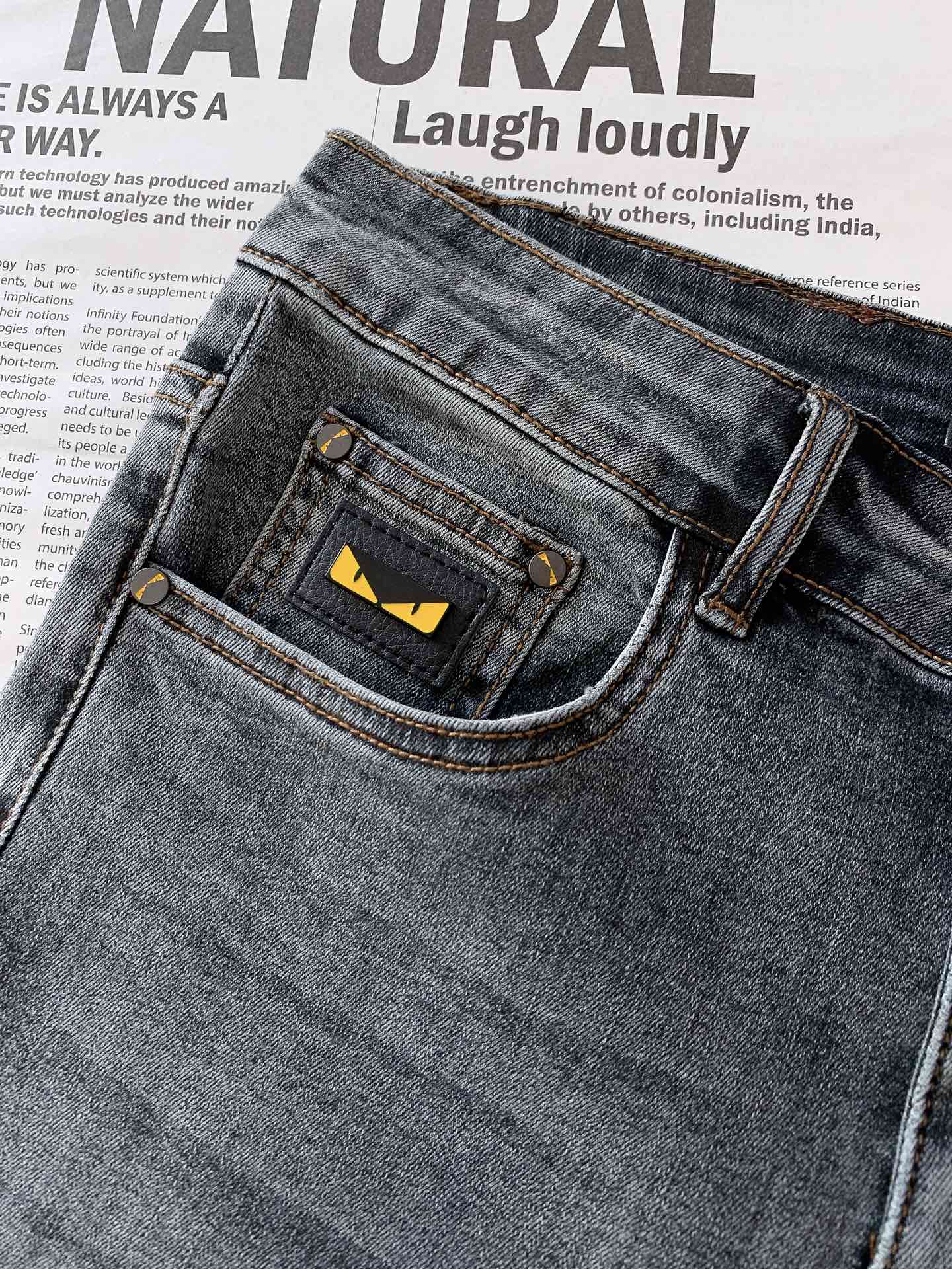 Fendi 2025SS Monster washed jeans. Ultra-fine cotton blend, soft & comfortable. Slight stretch, traditional hand-rubbed finish. Slim straight cut, sizes 28-38.
