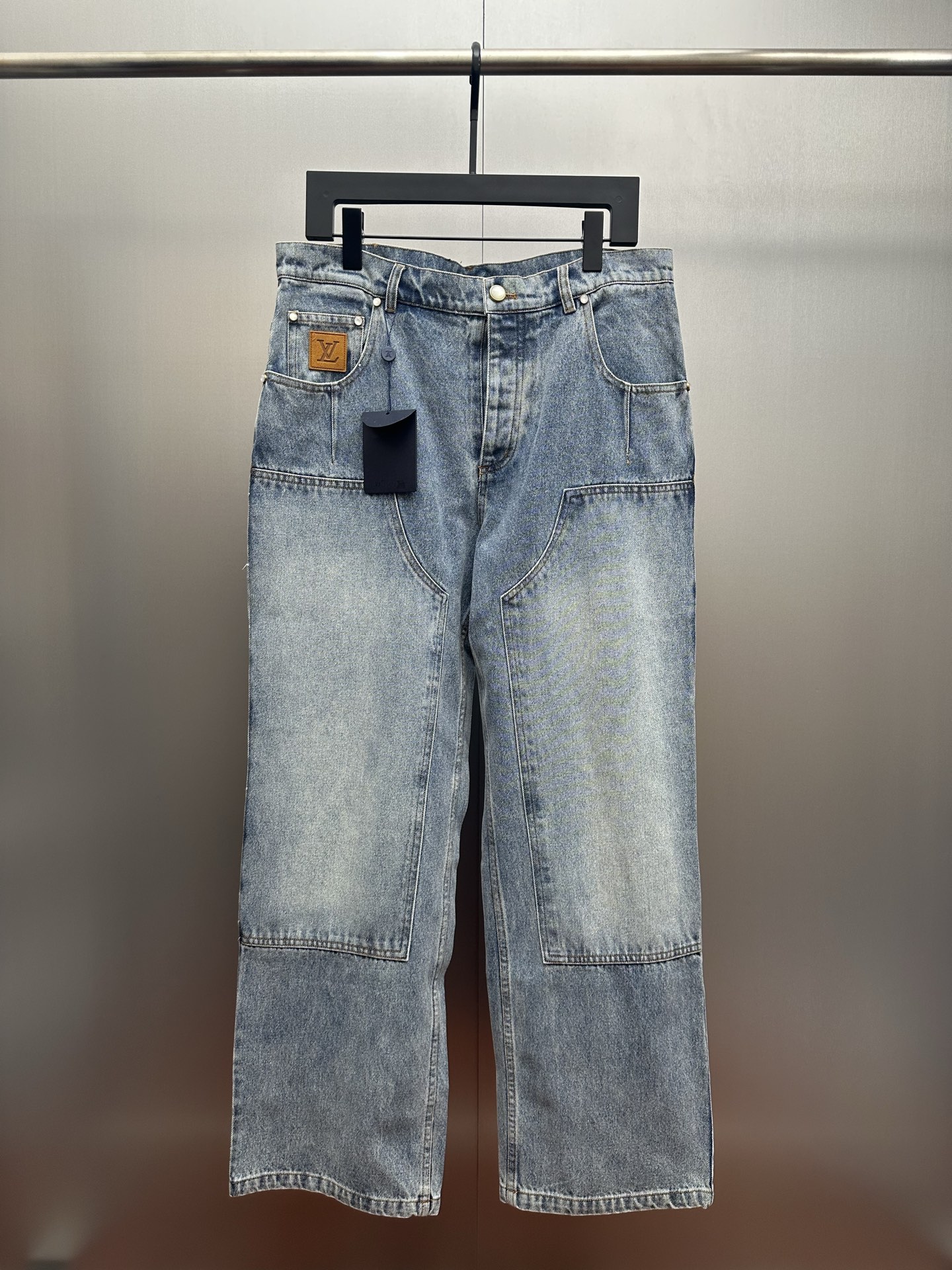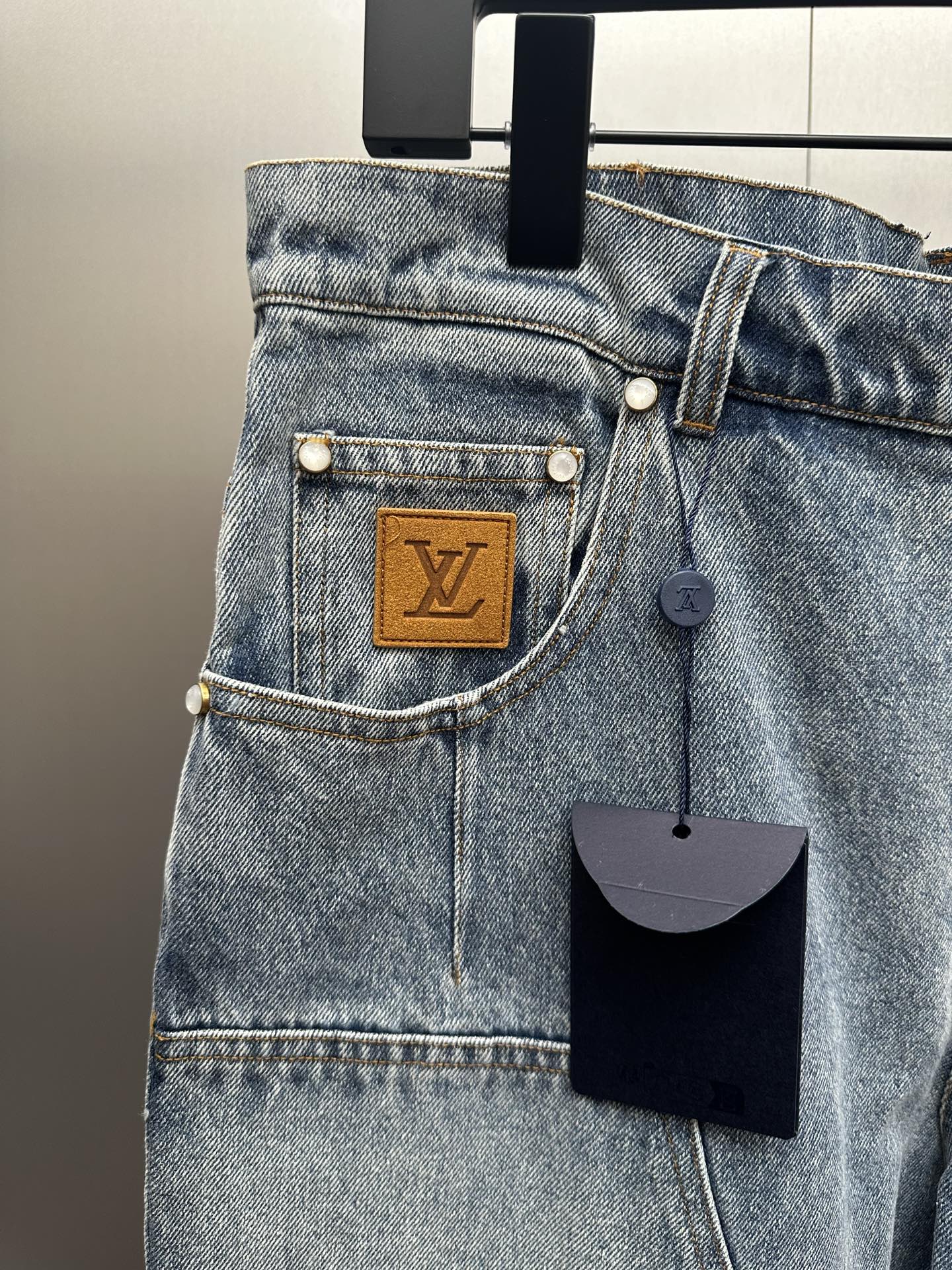 Home•Apparel•Jeans•Louis Vuitton 25ss new jeans. Minimalist skateboard silhouette. Features suede patches, LV appliqué, mini Damier tags, and pearlized rivets.