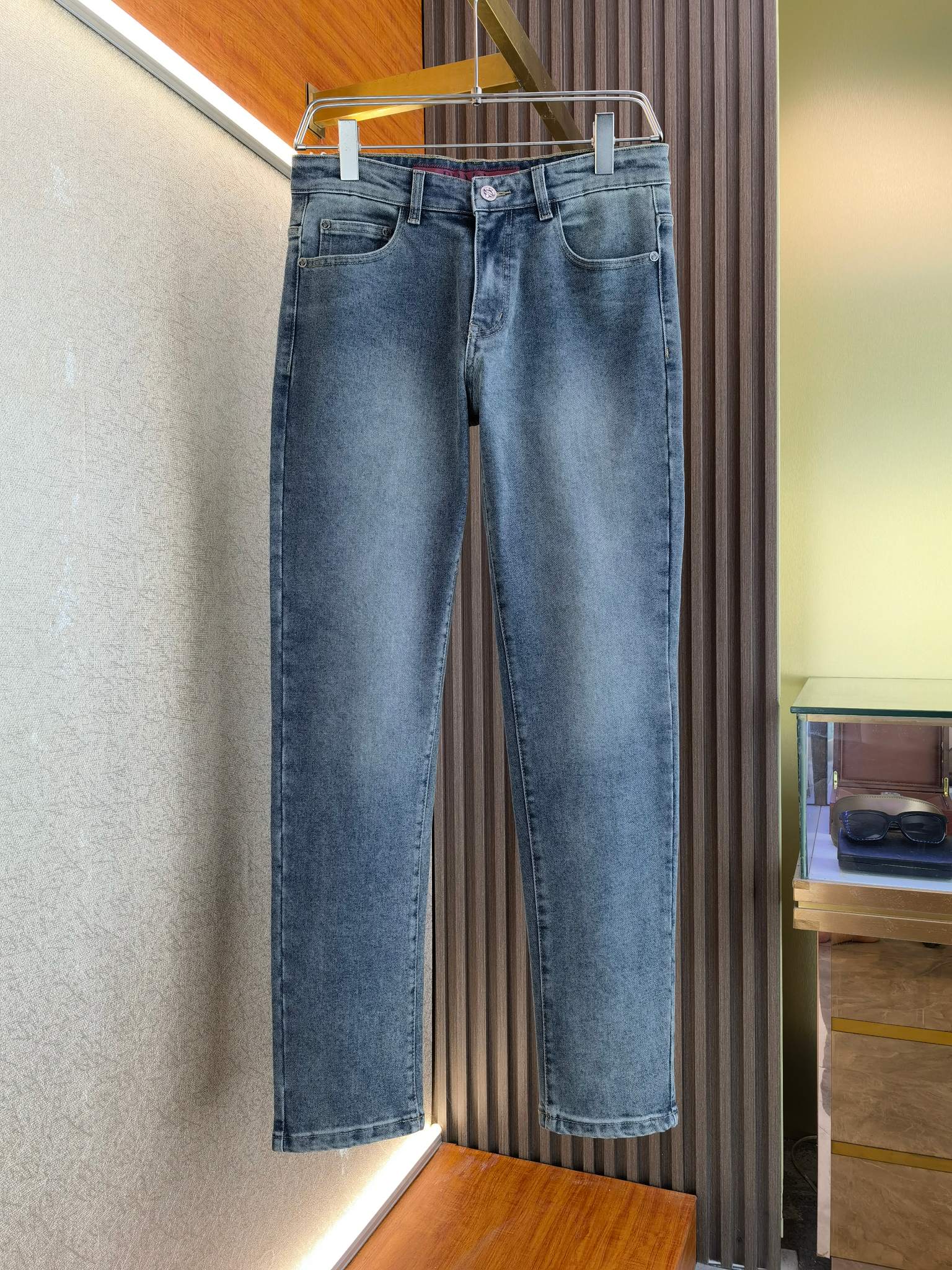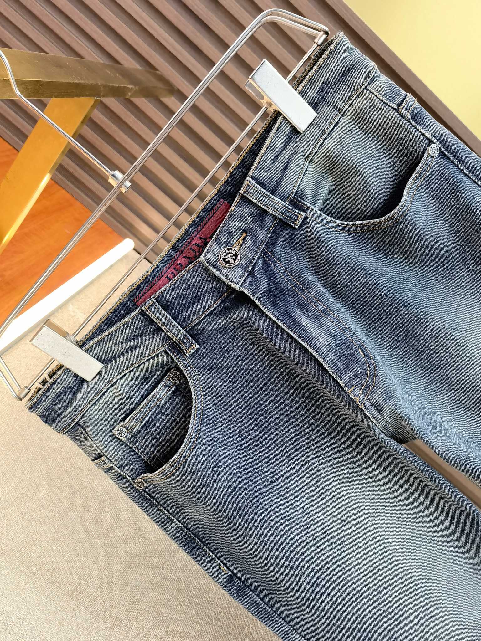 LV Thin Denim Jeans. 2025 latest style. 98% cotton, 2% spandex. Solid, slightly stretchy, comfortable. Simple design, hidden zipper, embossed pockets. Excellent fit.