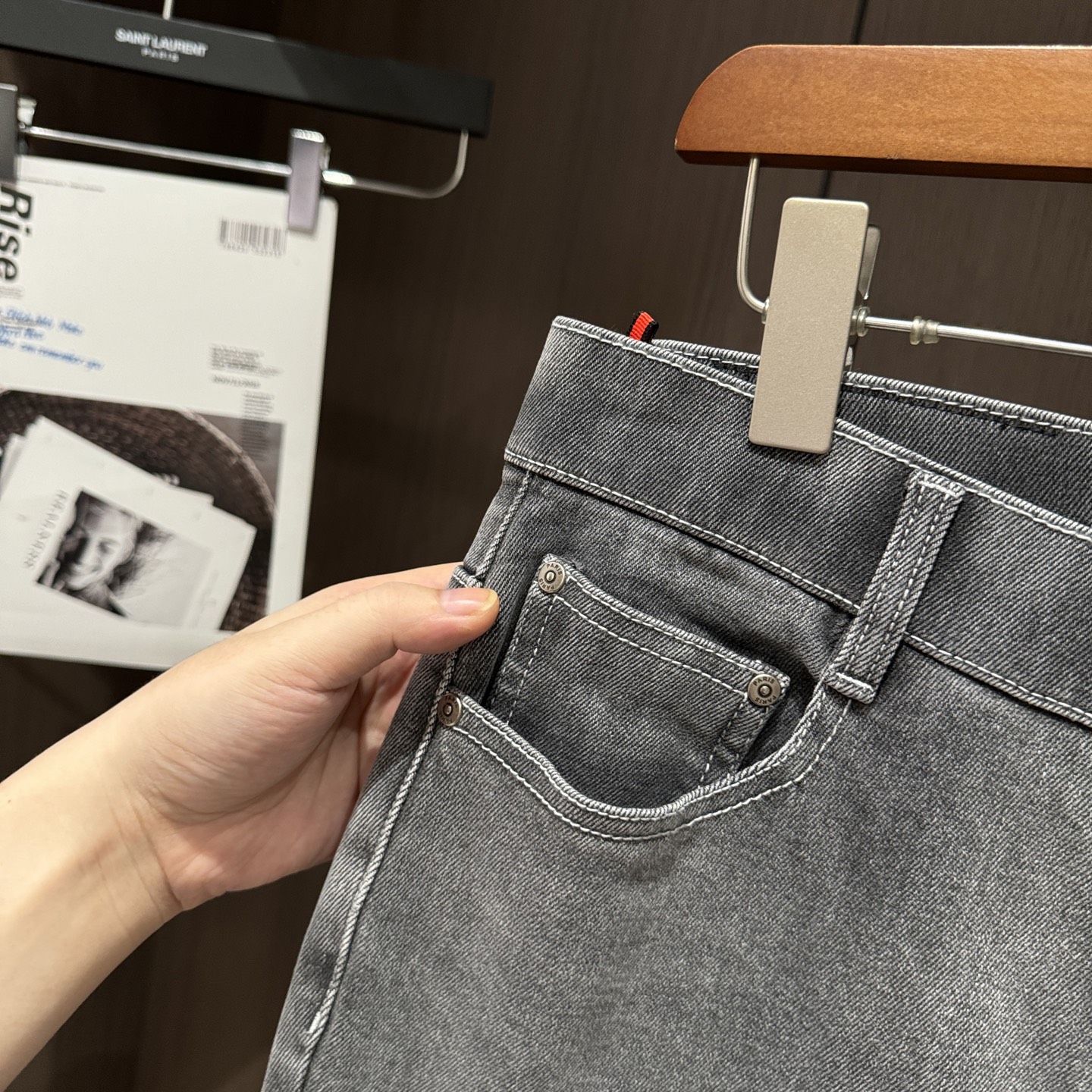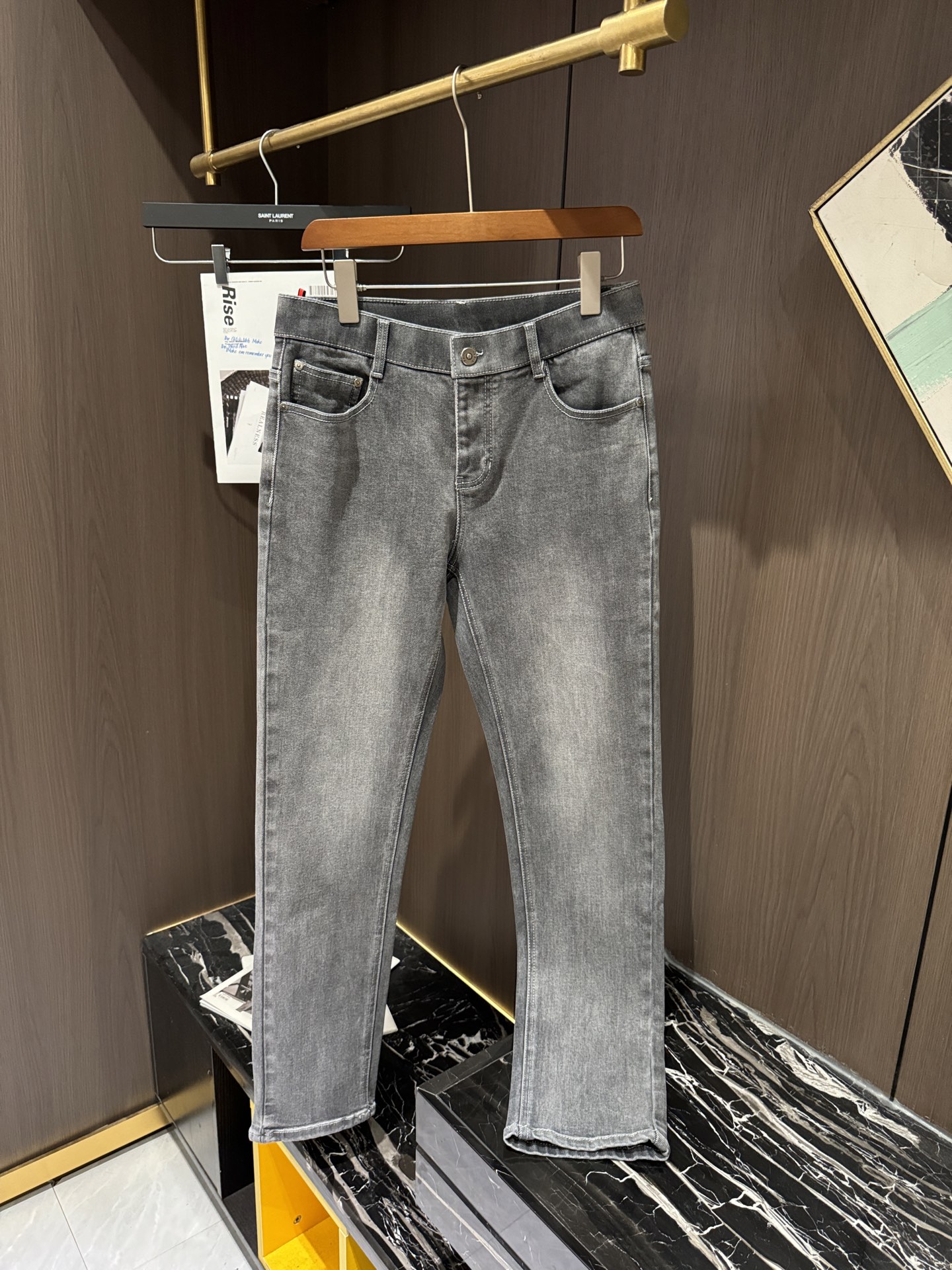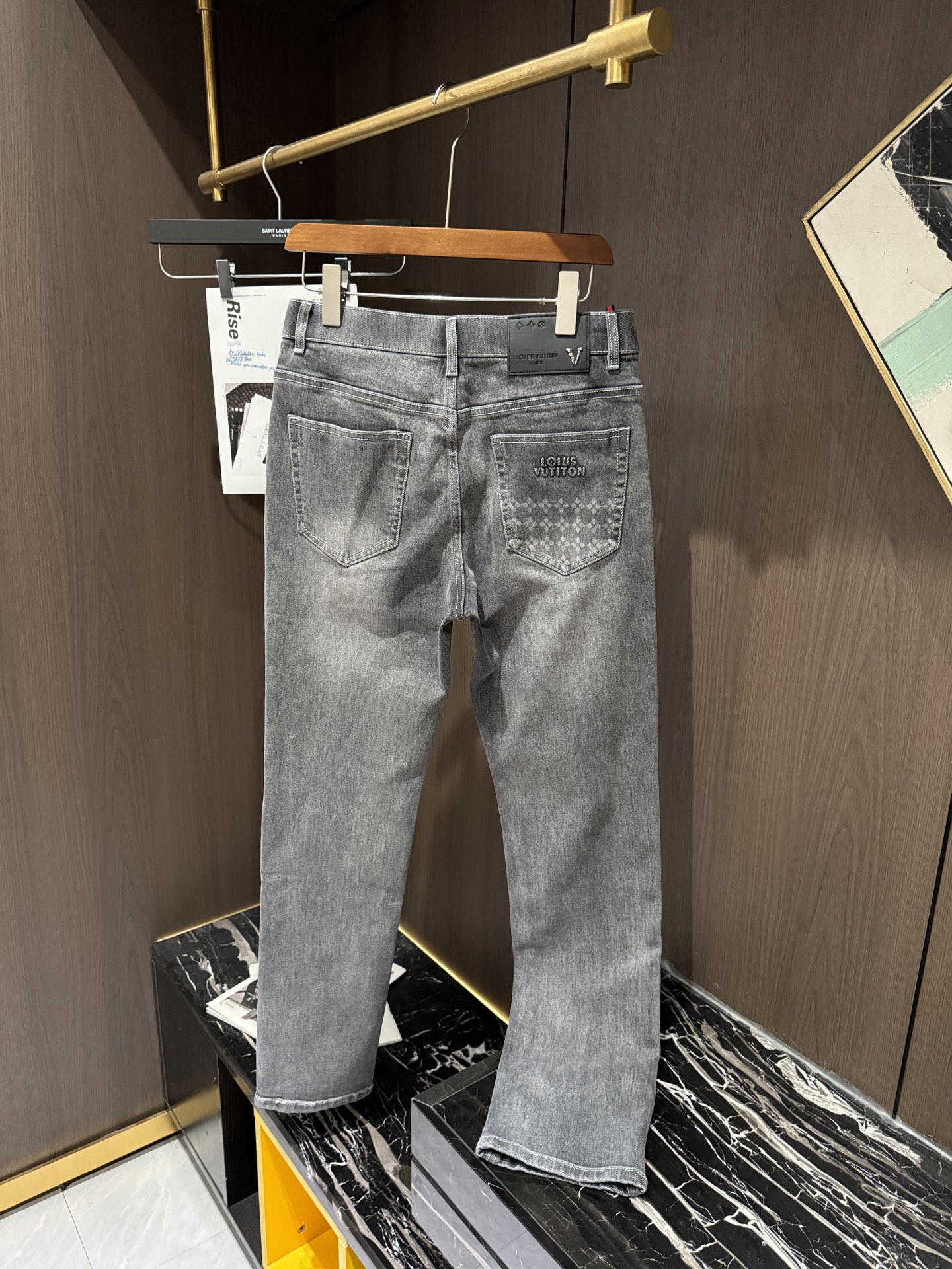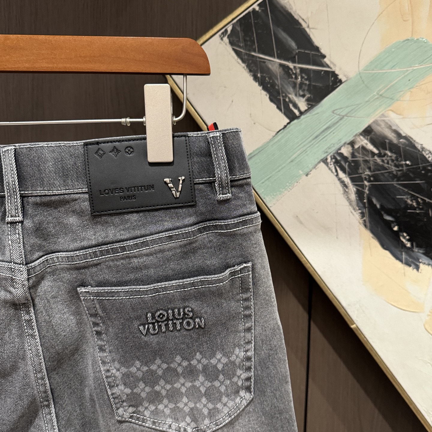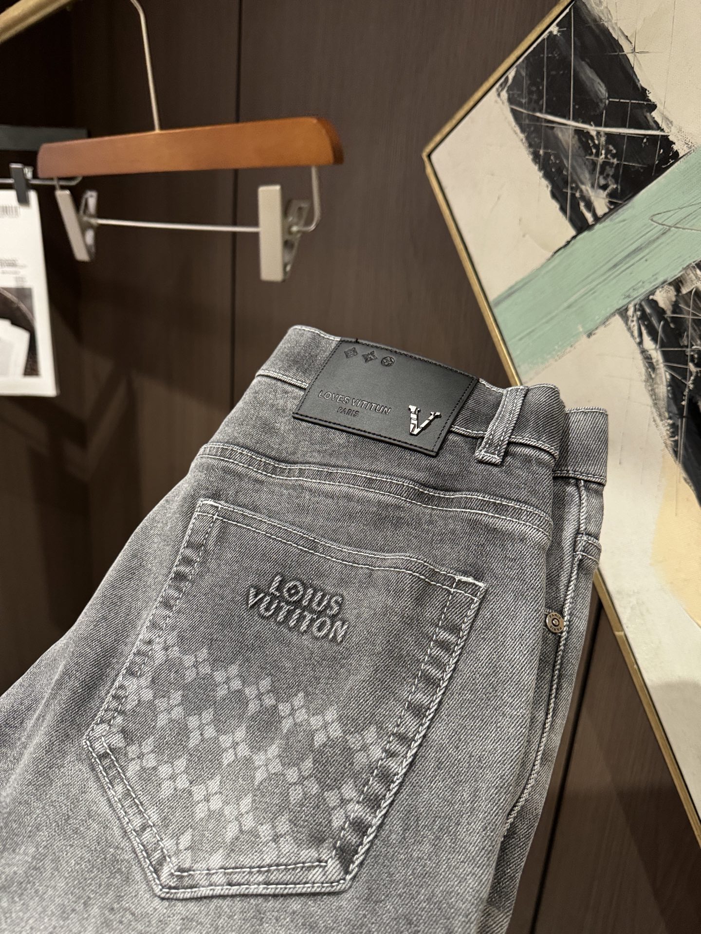 LV Thin Denim Jeans. 2025 latest style. 98% cotton, 2% spandex. Solid, slightly stretchy, comfortable. Simple design, hidden zipper, embossed pockets. Excellent fit.