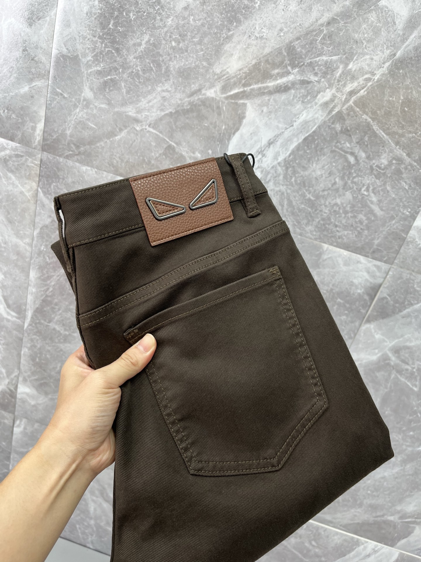 FENDI men's autumn-winter jeans. Imported denim, eco-wash, soft feel, durable. Slim straight cut, stretchy. Sizes 28-38. Next-day shipping.