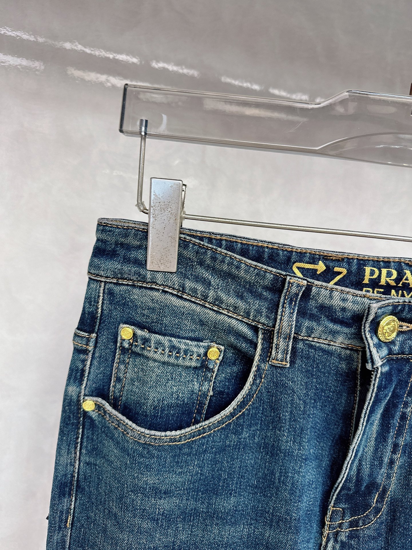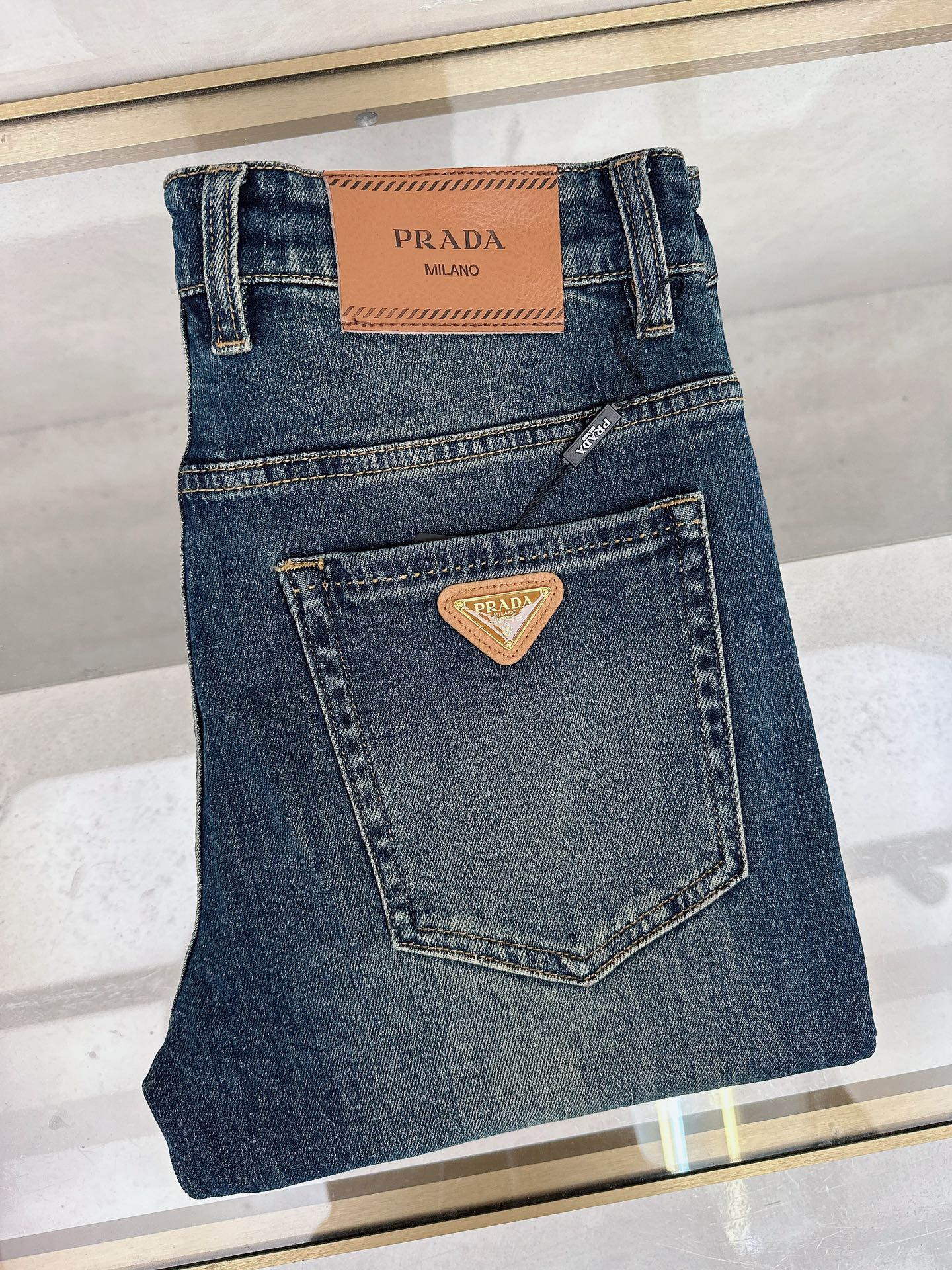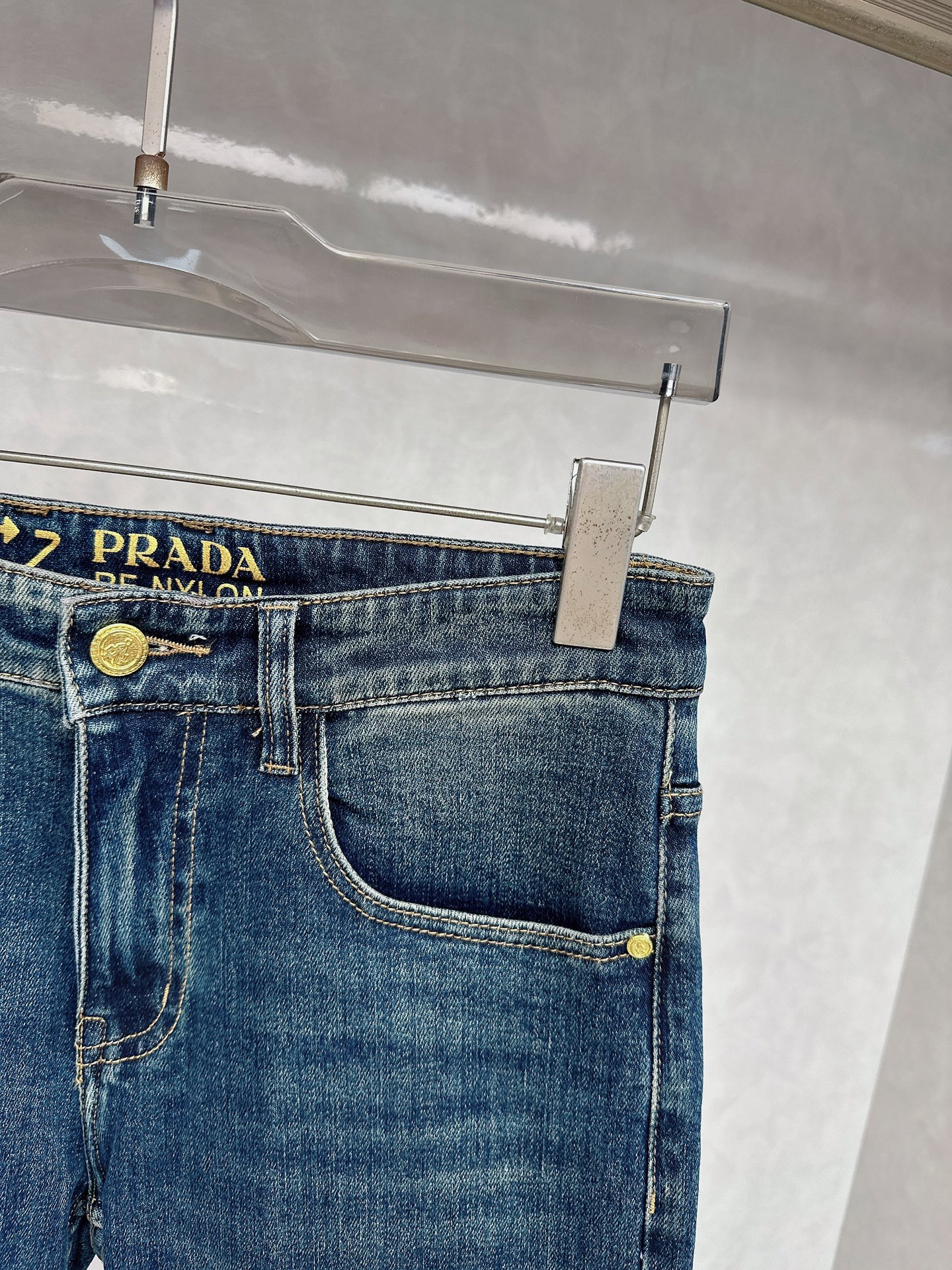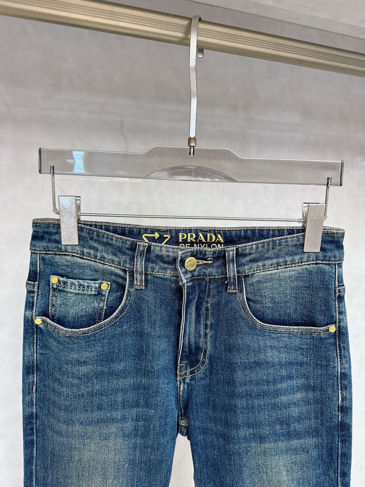 Prada Fall/Winter 2025 new jeans available. Custom design, original hardware, heavy craftsmanship. Great fit, impeccable details. Sizes 29-38.