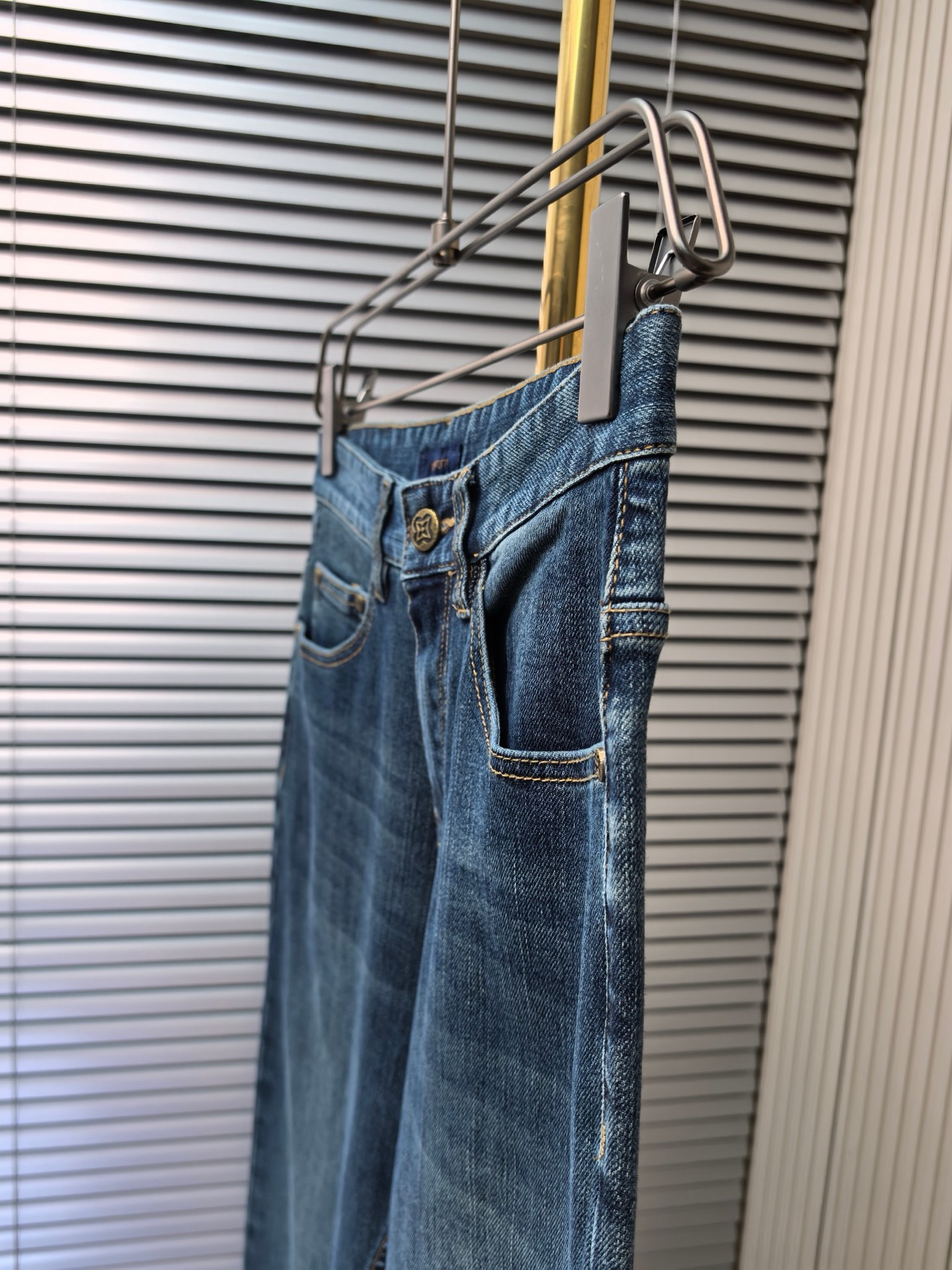 LV Thin Denim Jeans. 2025 latest style. 98% cotton, 2% spandex. Solid, slightly stretchy, comfortable. Simple design, hidden zipper, embossed pockets. Excellent fit.