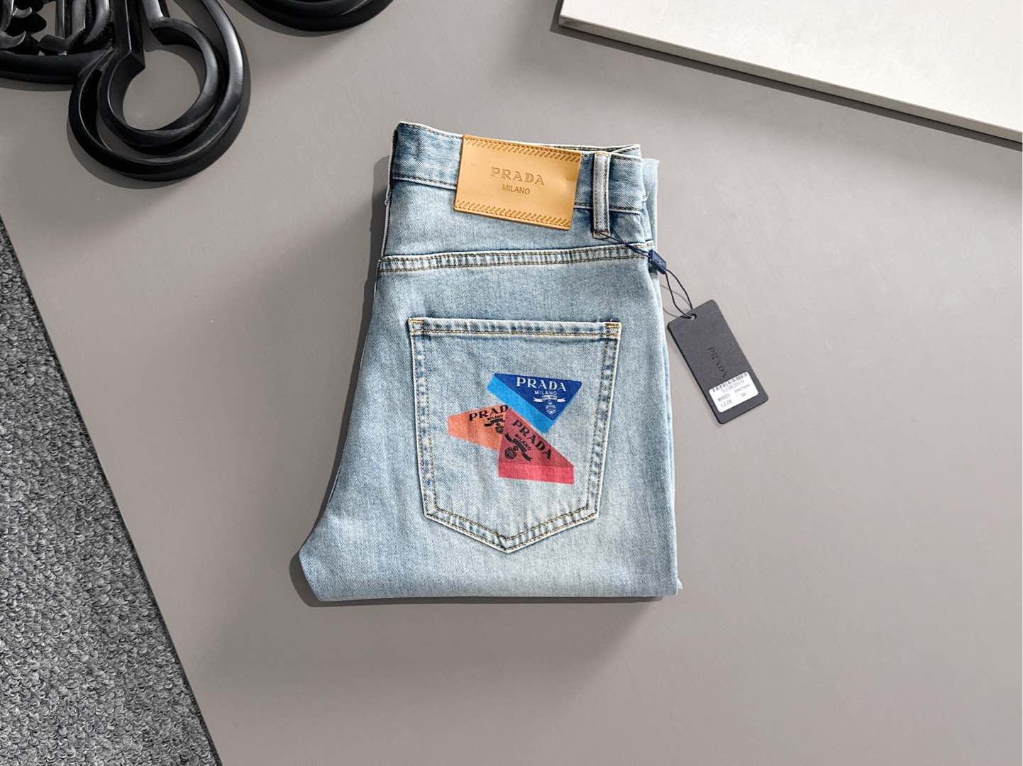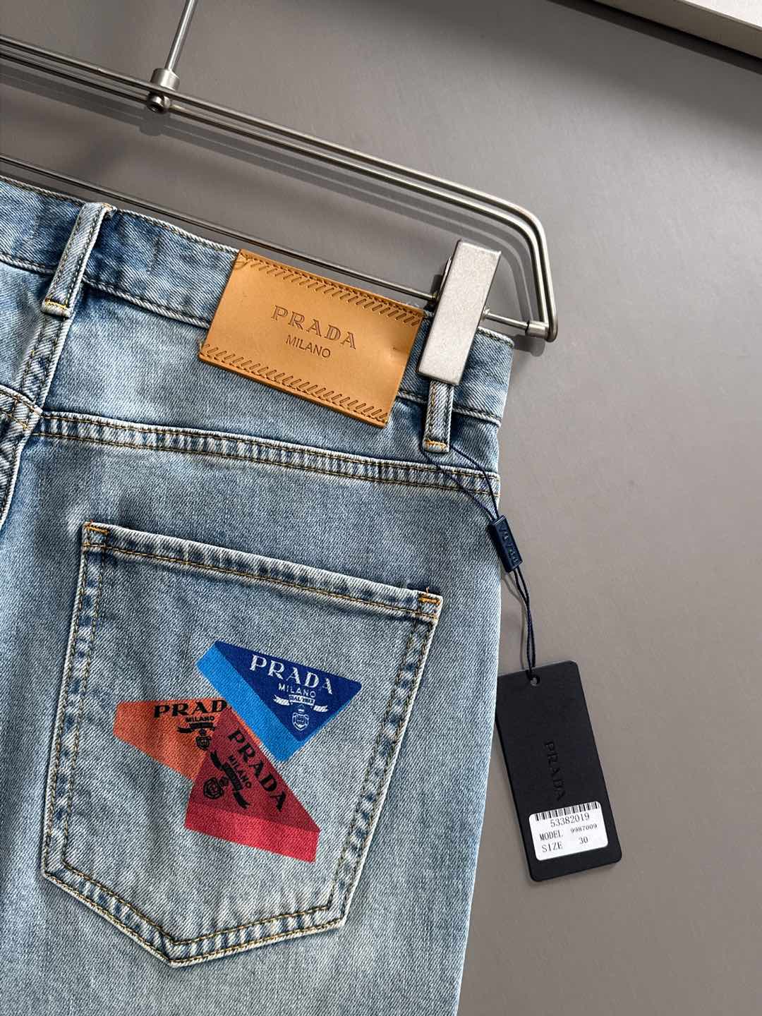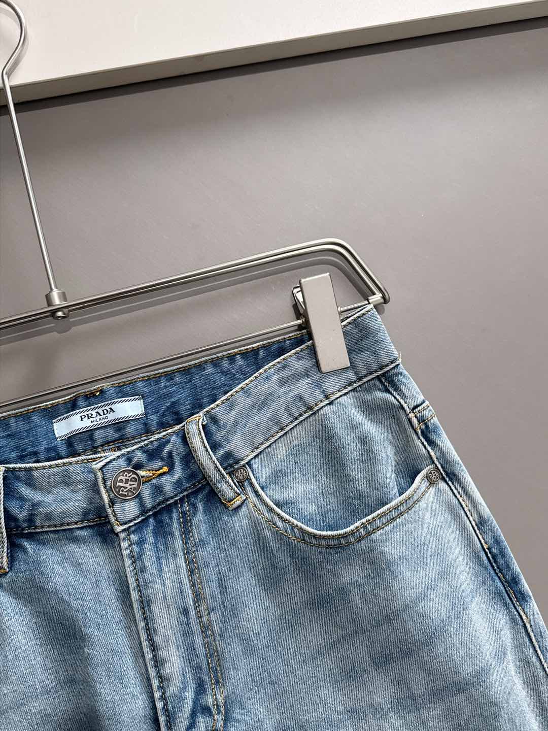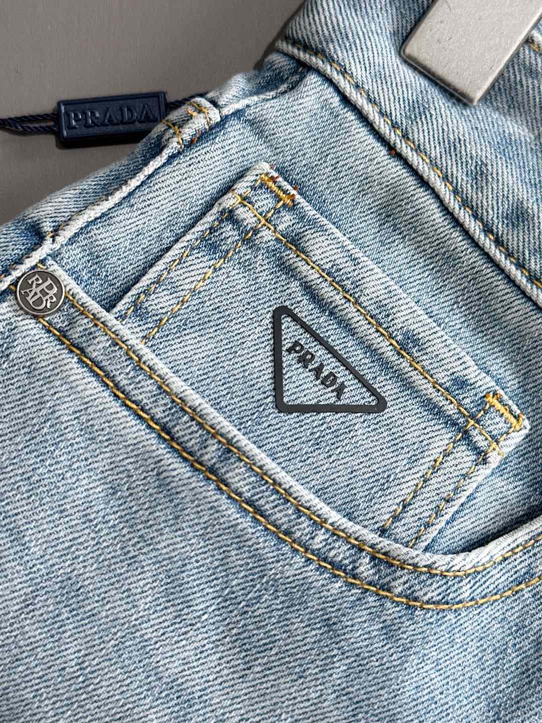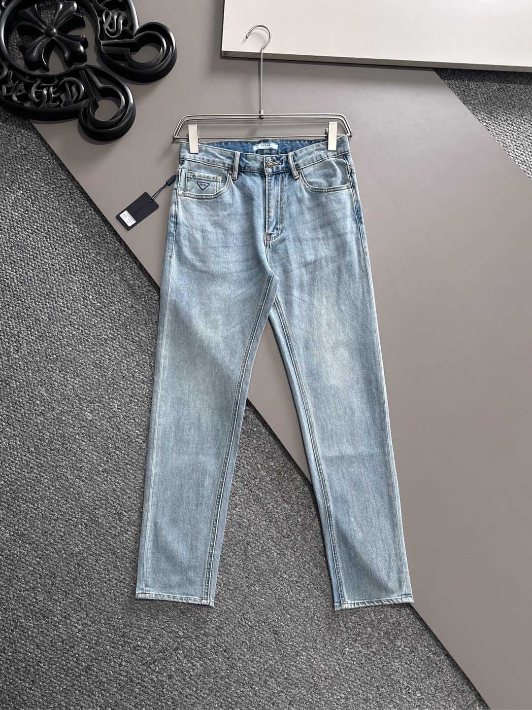 Prada 2025SS Fall/Winter slim-fit skinny jeans. Custom top hardware logo, exclusive stretch fabric. Sizes 29-38 (no 35, 37).