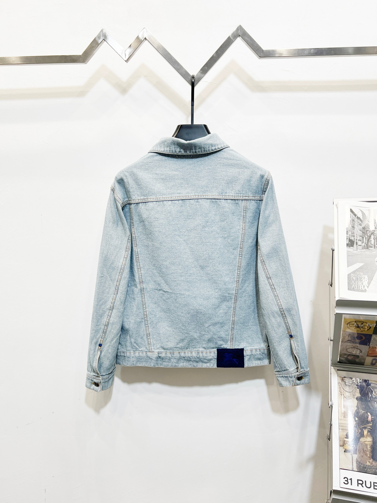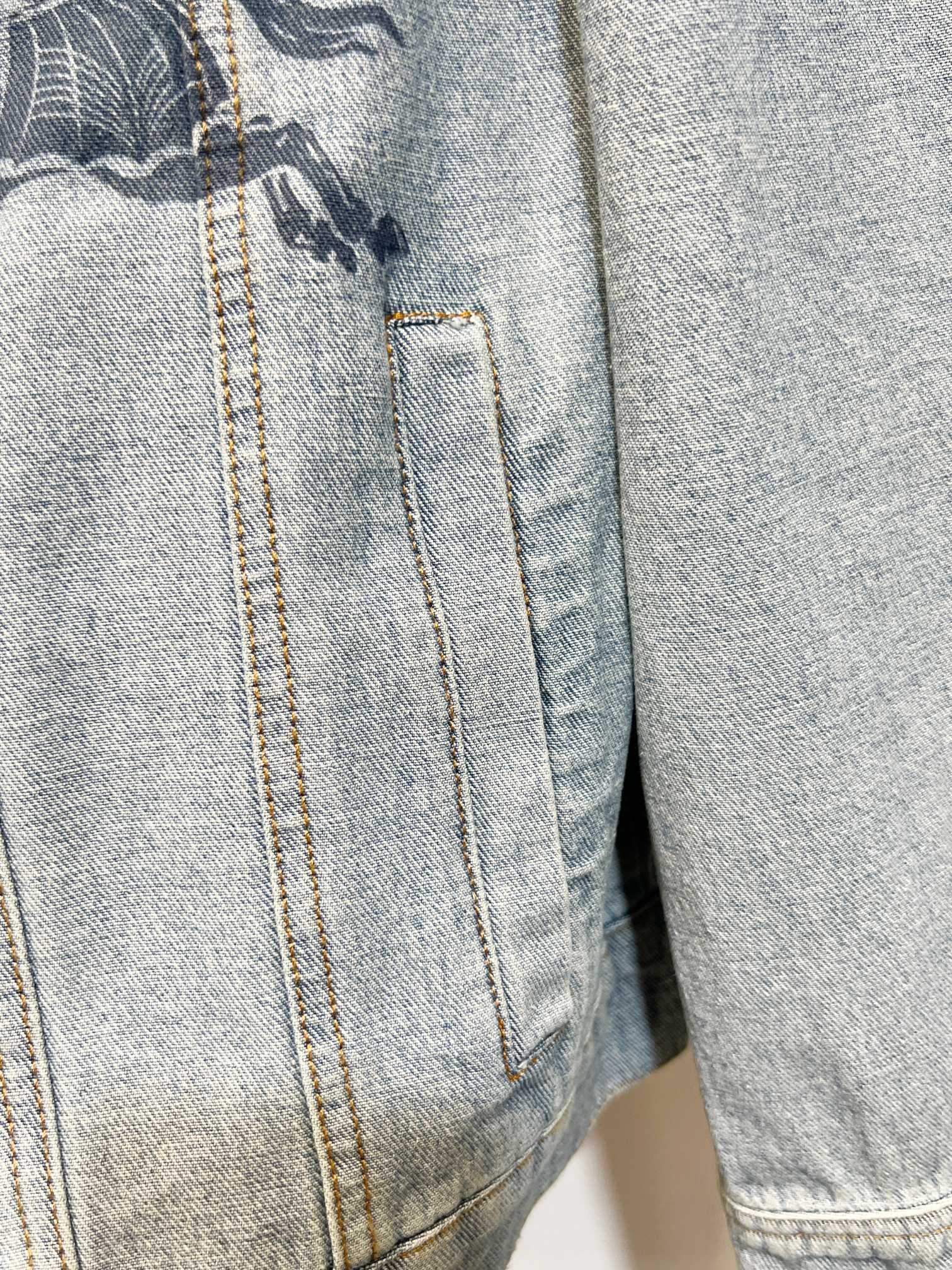 Burberry equestrian print denim jacket & pants set. Premium washed denim, vintage finish. Loose fit, full branding. Sizes: M/L/XL. Top quality replica.