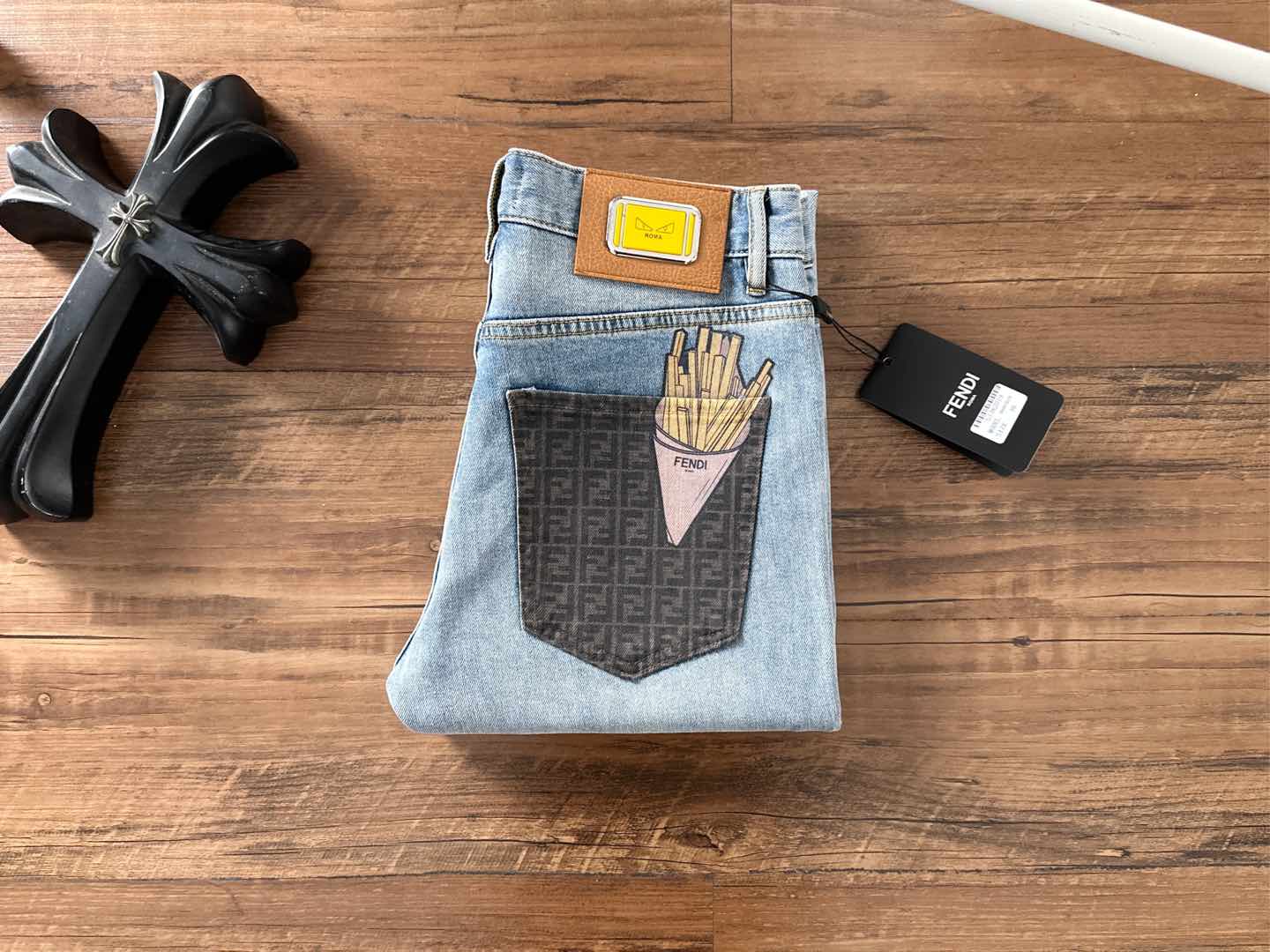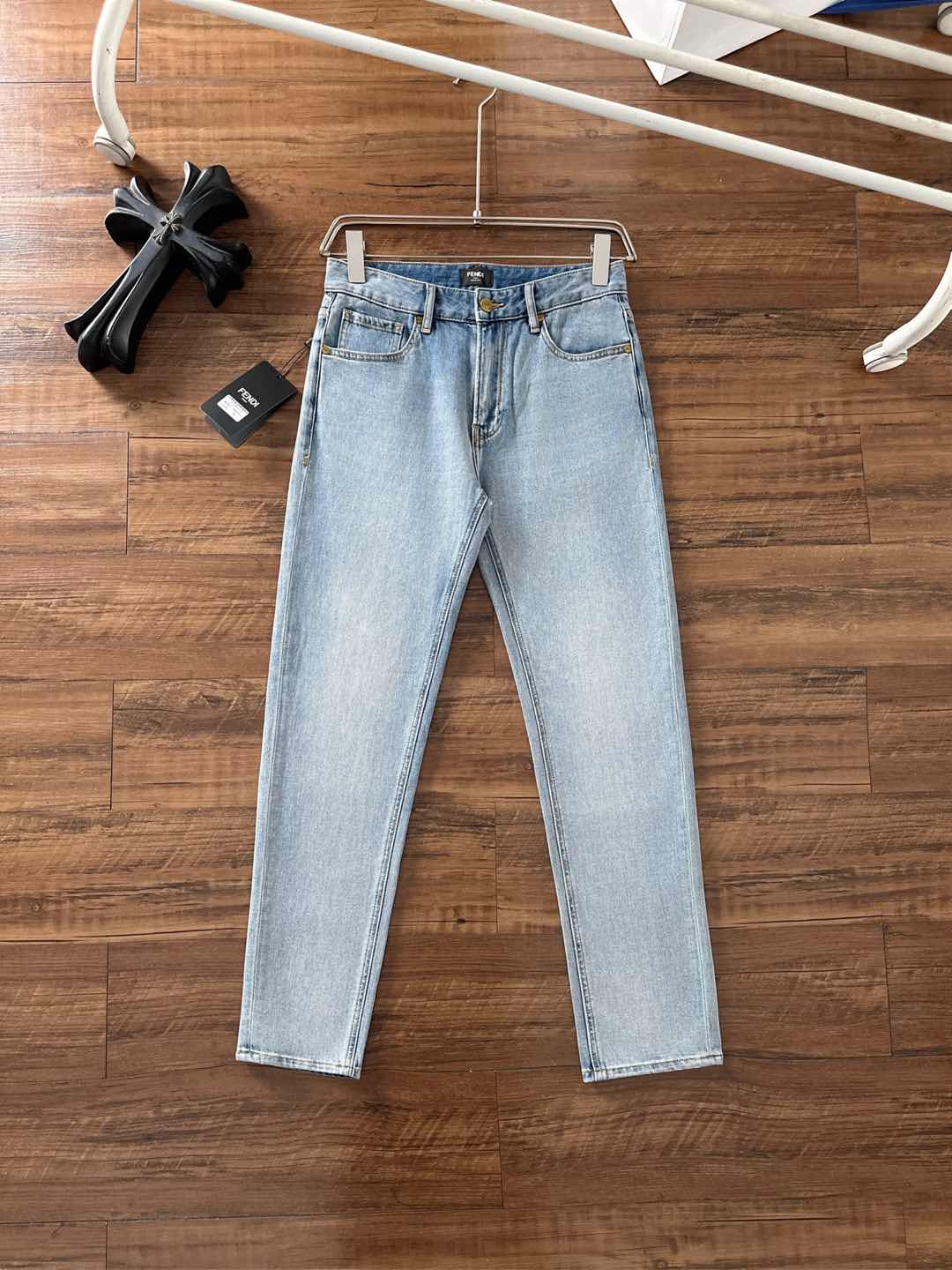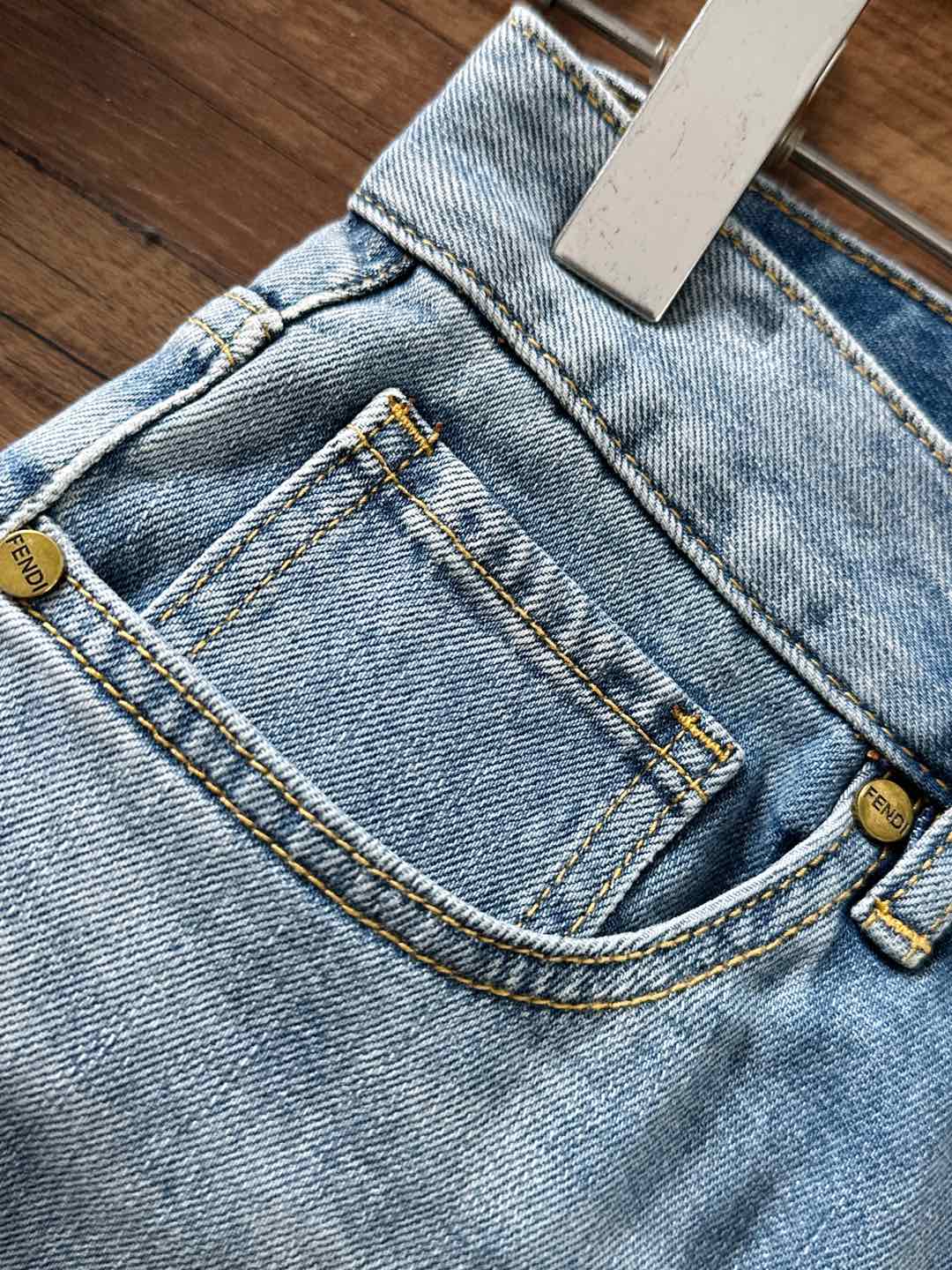 Fendi 2025SS early autumn slim-fit skinny jeans. Custom stretch fabric, premium hardware logo. Sizes 29-38 (excl. 35,37).
