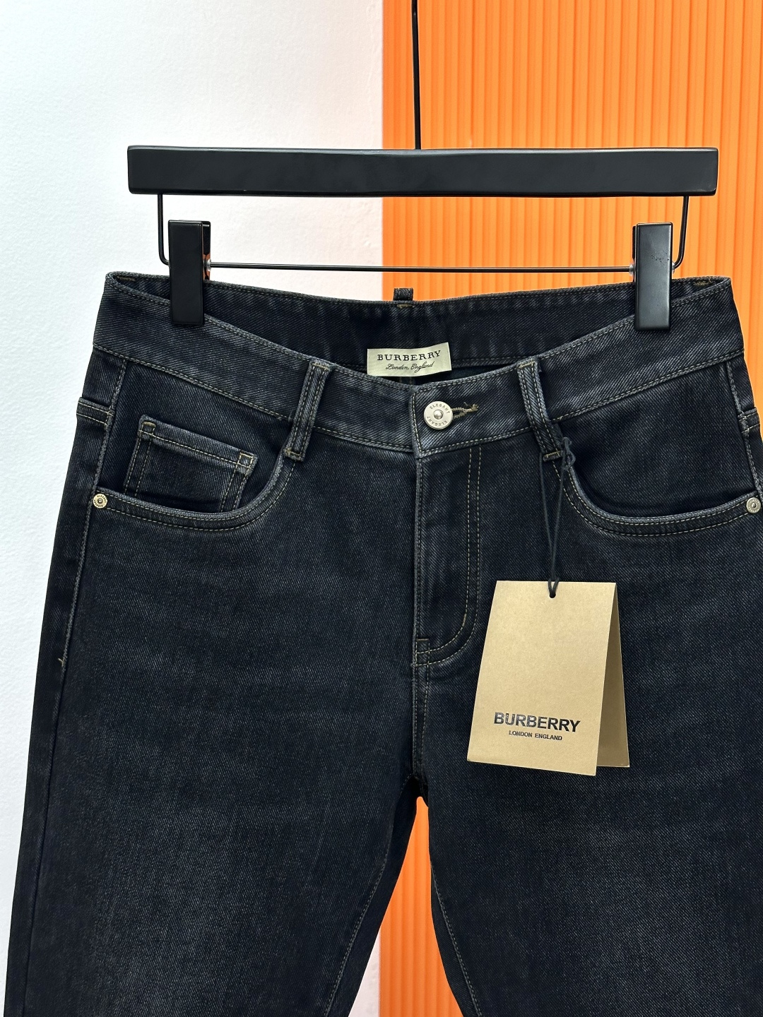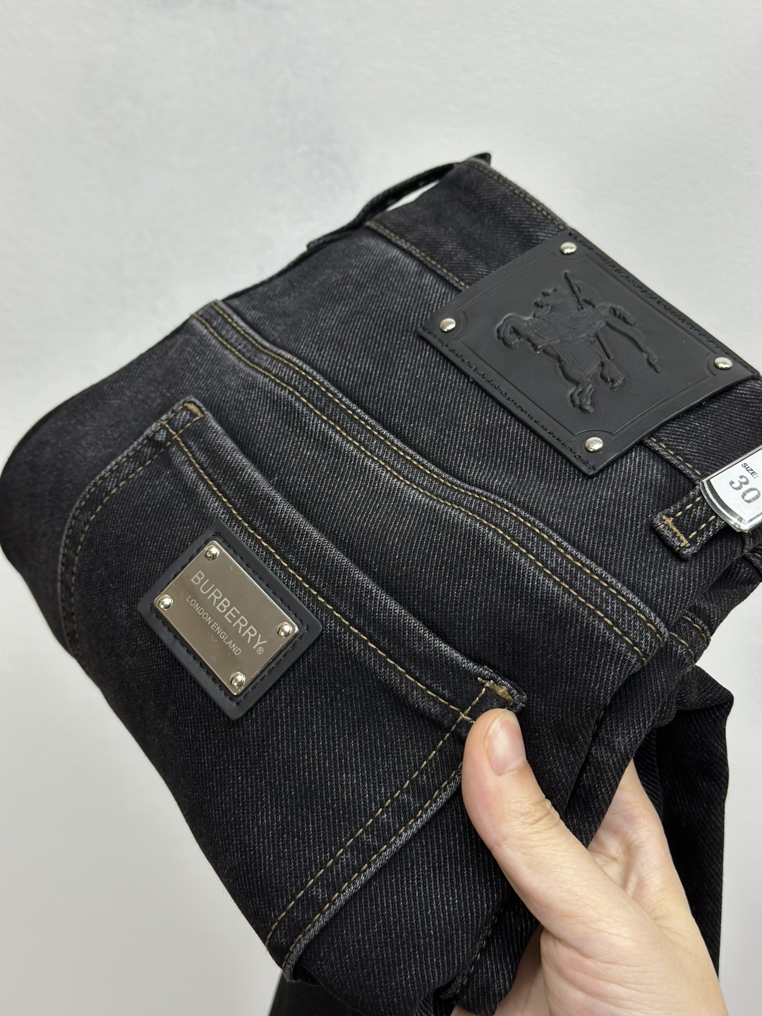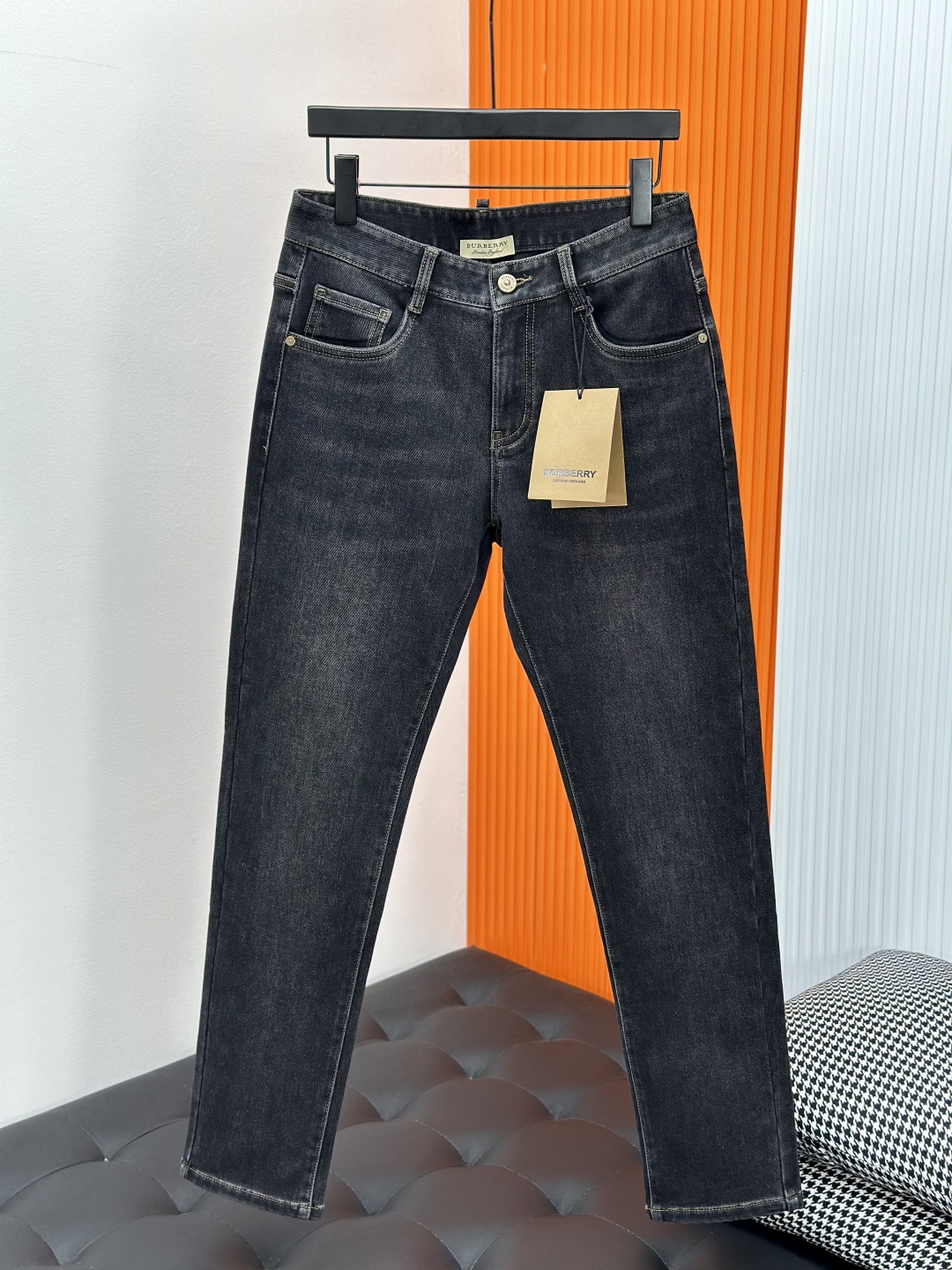 Burberry brushed denim jeans, Autumn 2025 latest. Original fabric, logo detail. Classic, comfortable. Sizes 29-38.