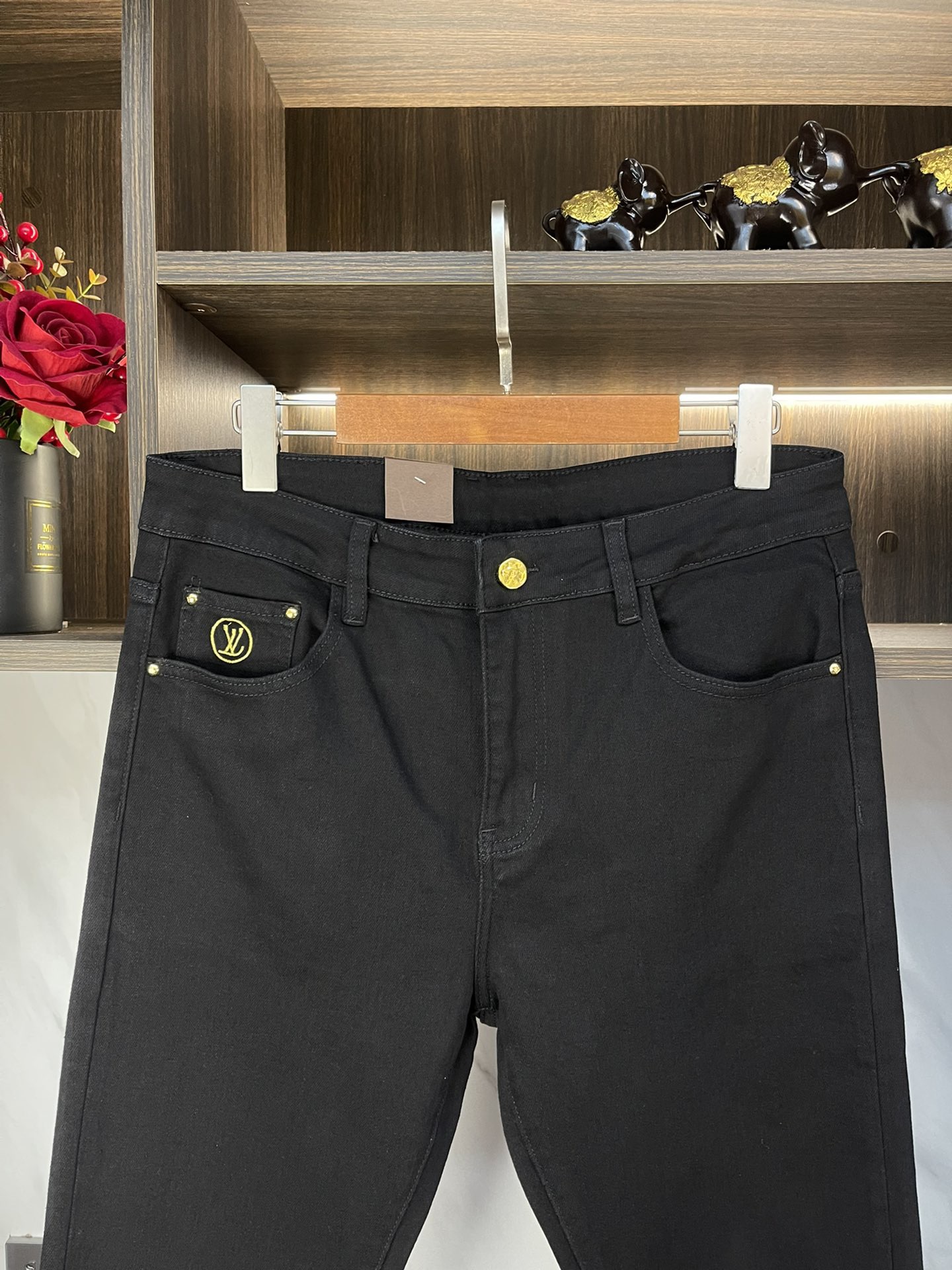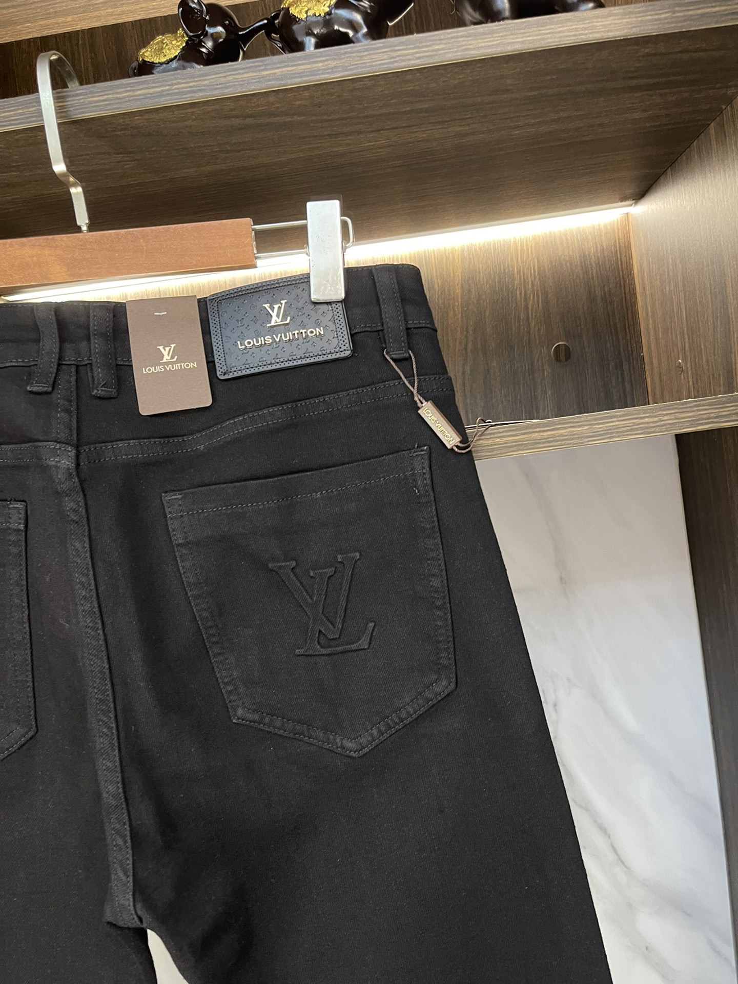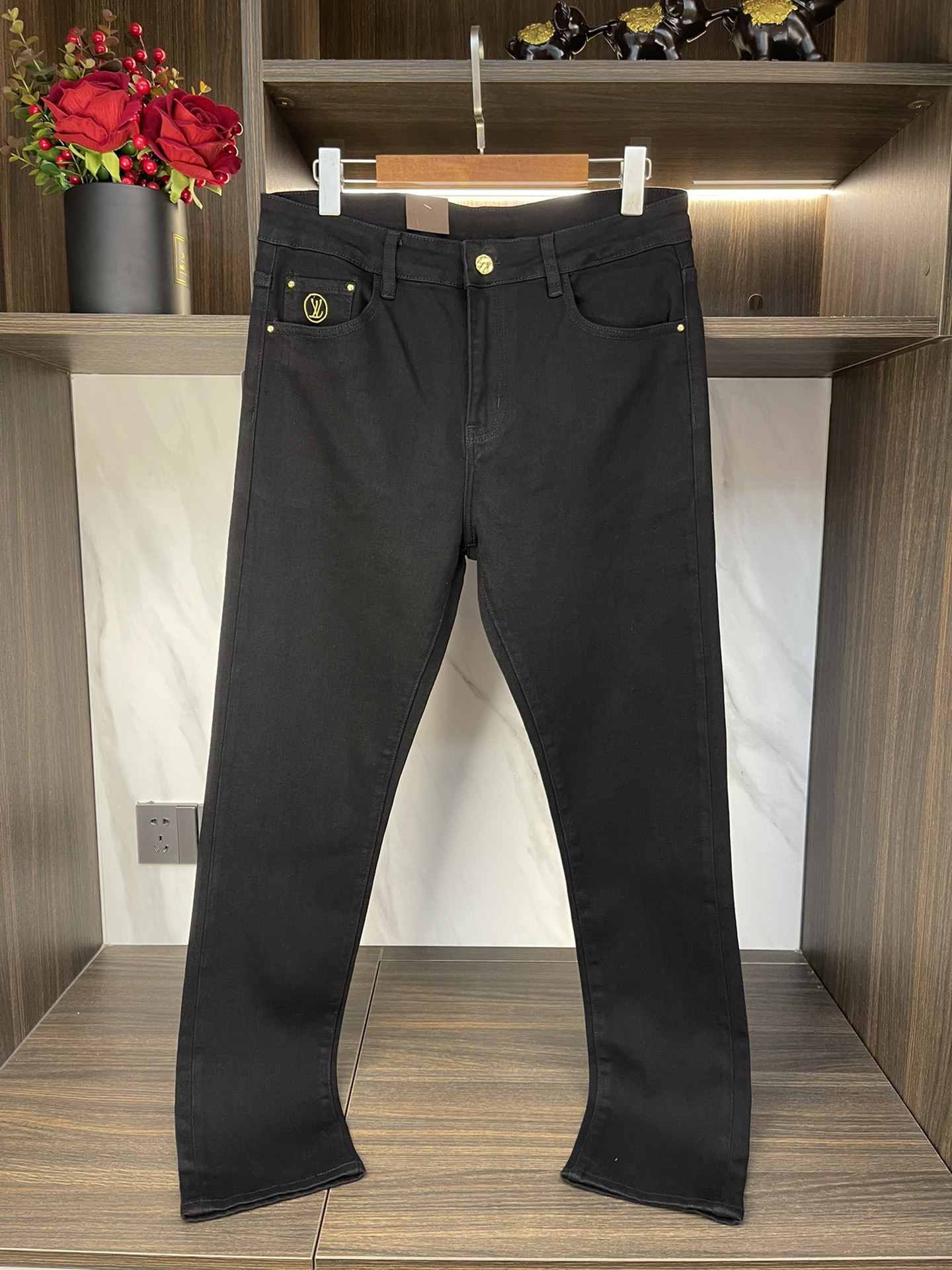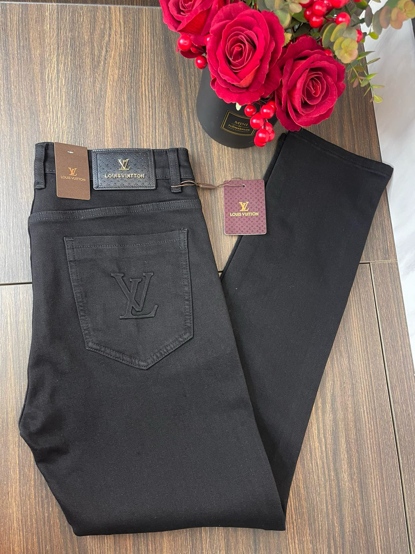 LV Thin Denim Jeans. 2025 latest style. 98% cotton, 2% spandex. Solid, slightly stretchy, comfortable. Simple design, hidden zipper, embossed pockets. Excellent fit.