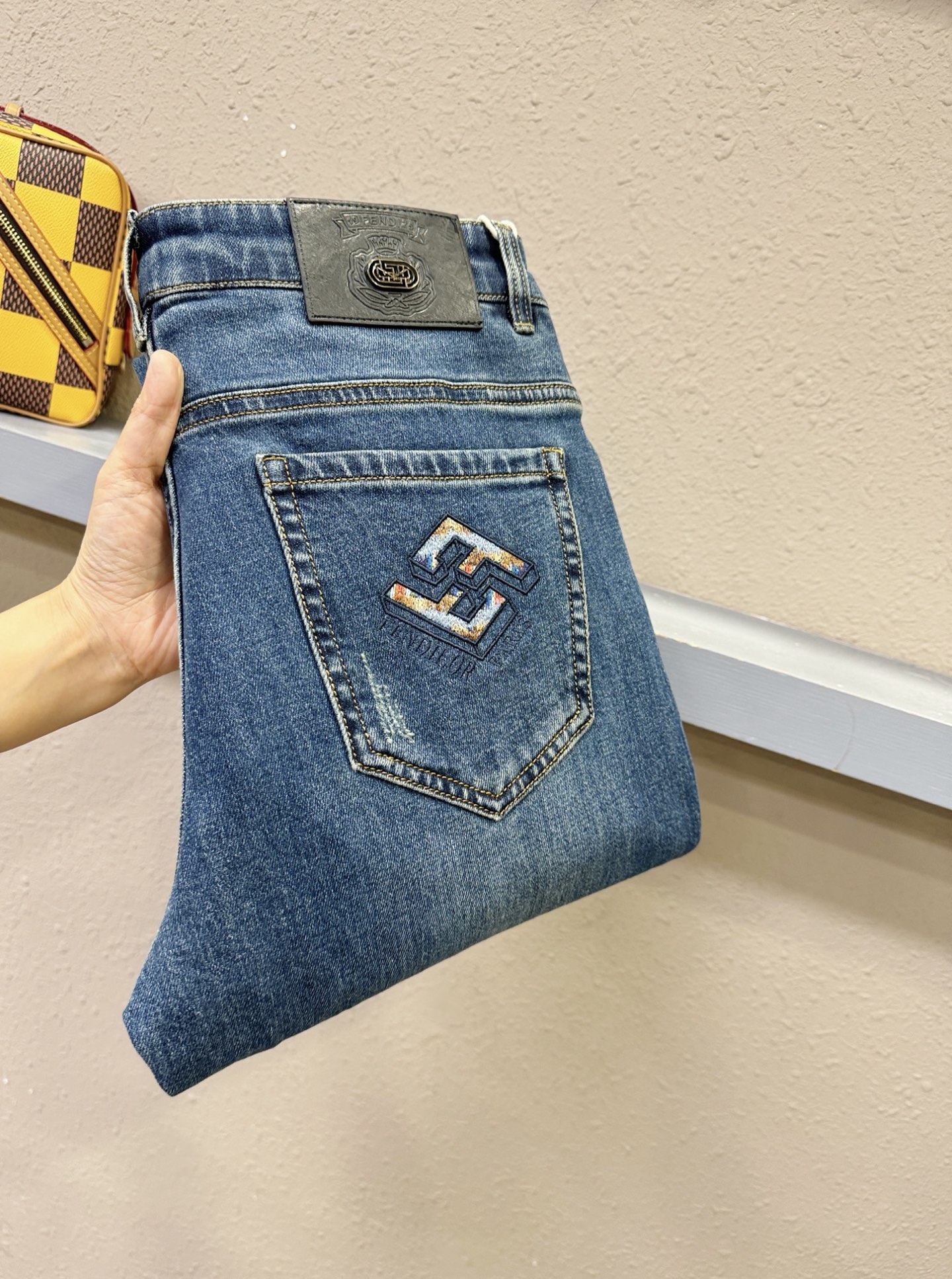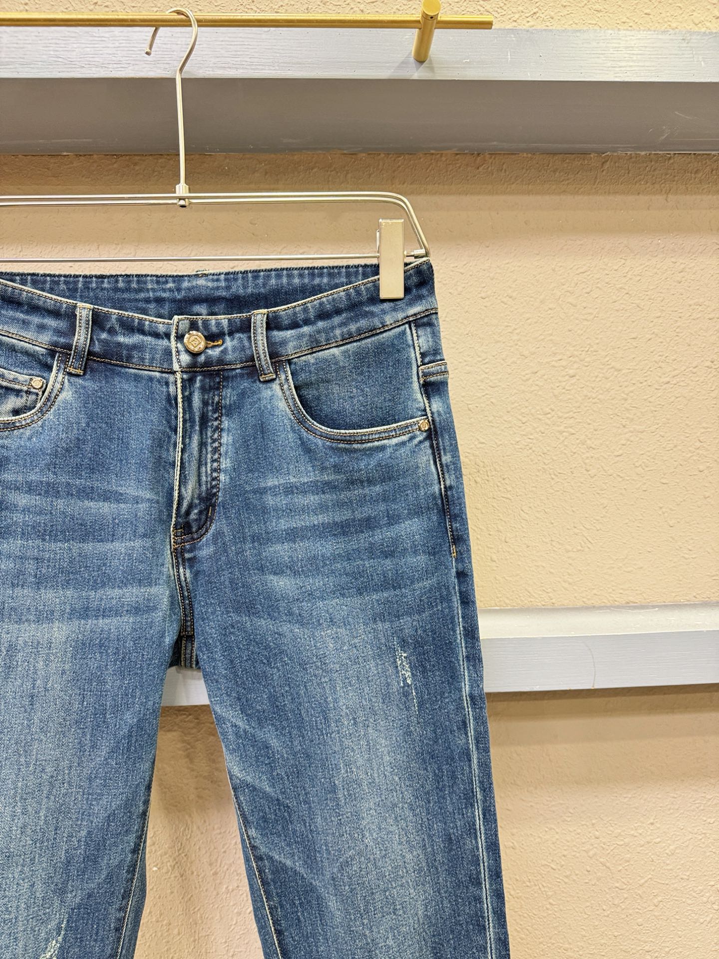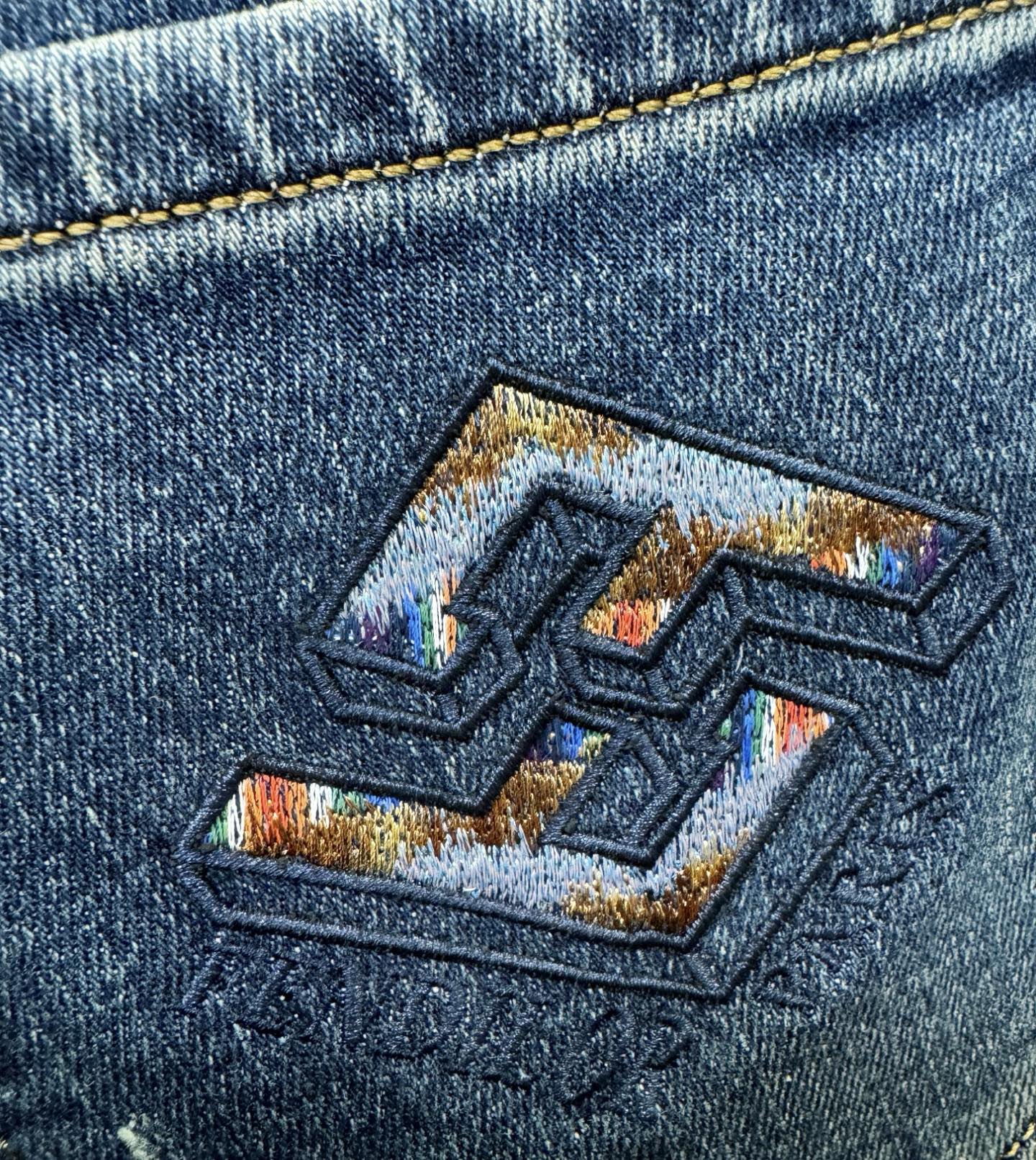FENDI 2025 boutique new jeans. Original heavy craftsmanship, classic logo, complete labels. Custom denim fabric. Sizes 29-38.