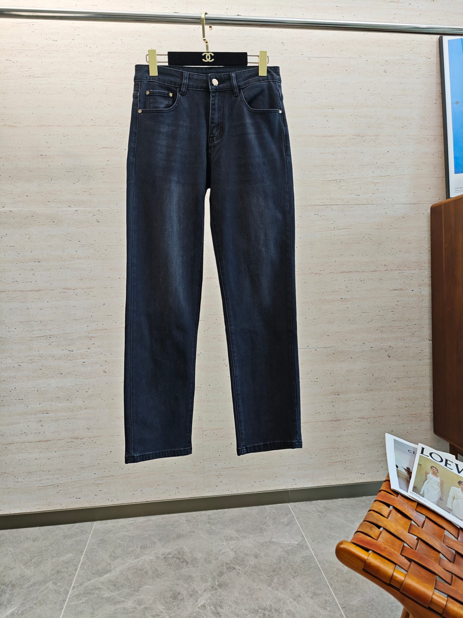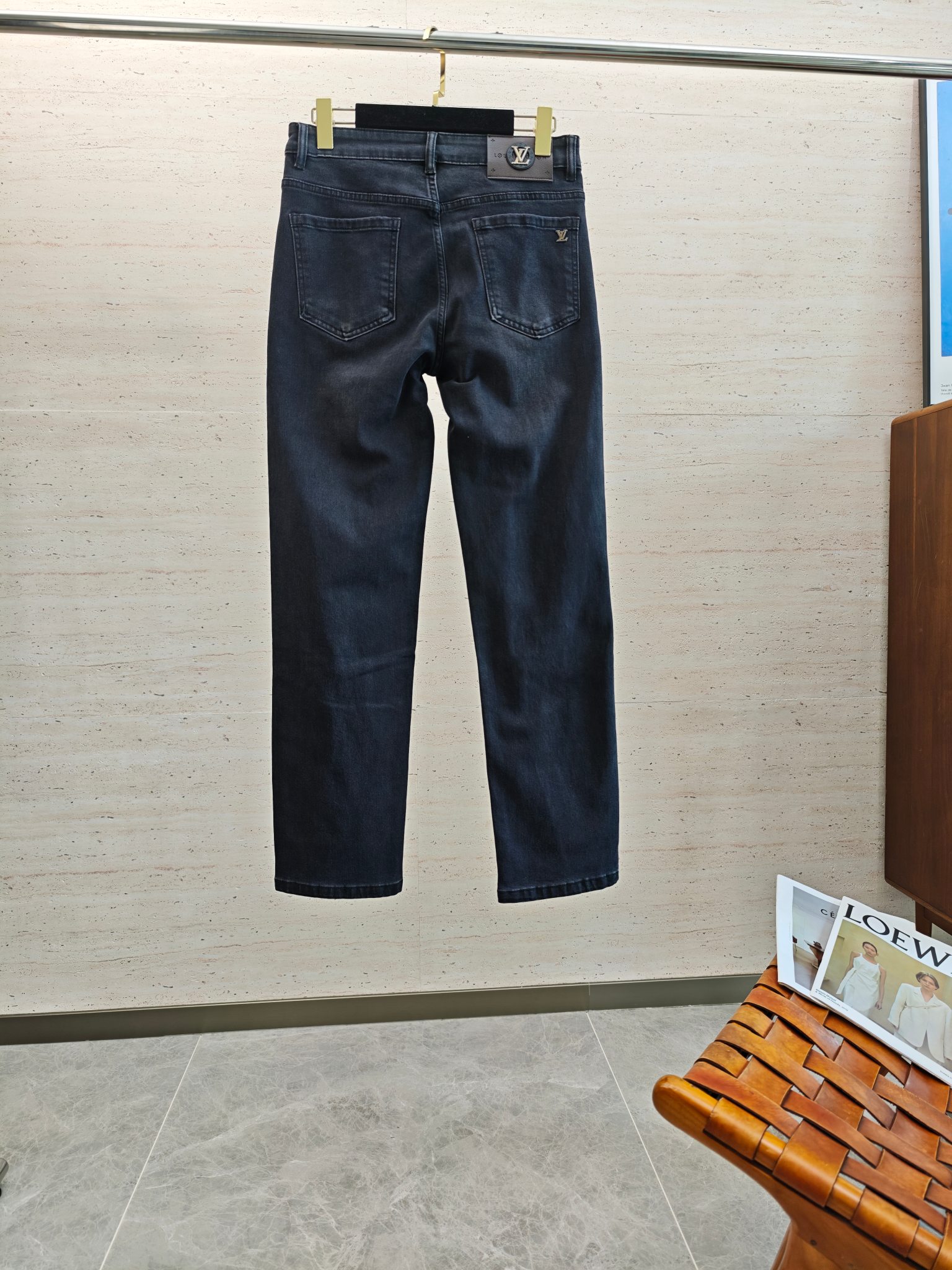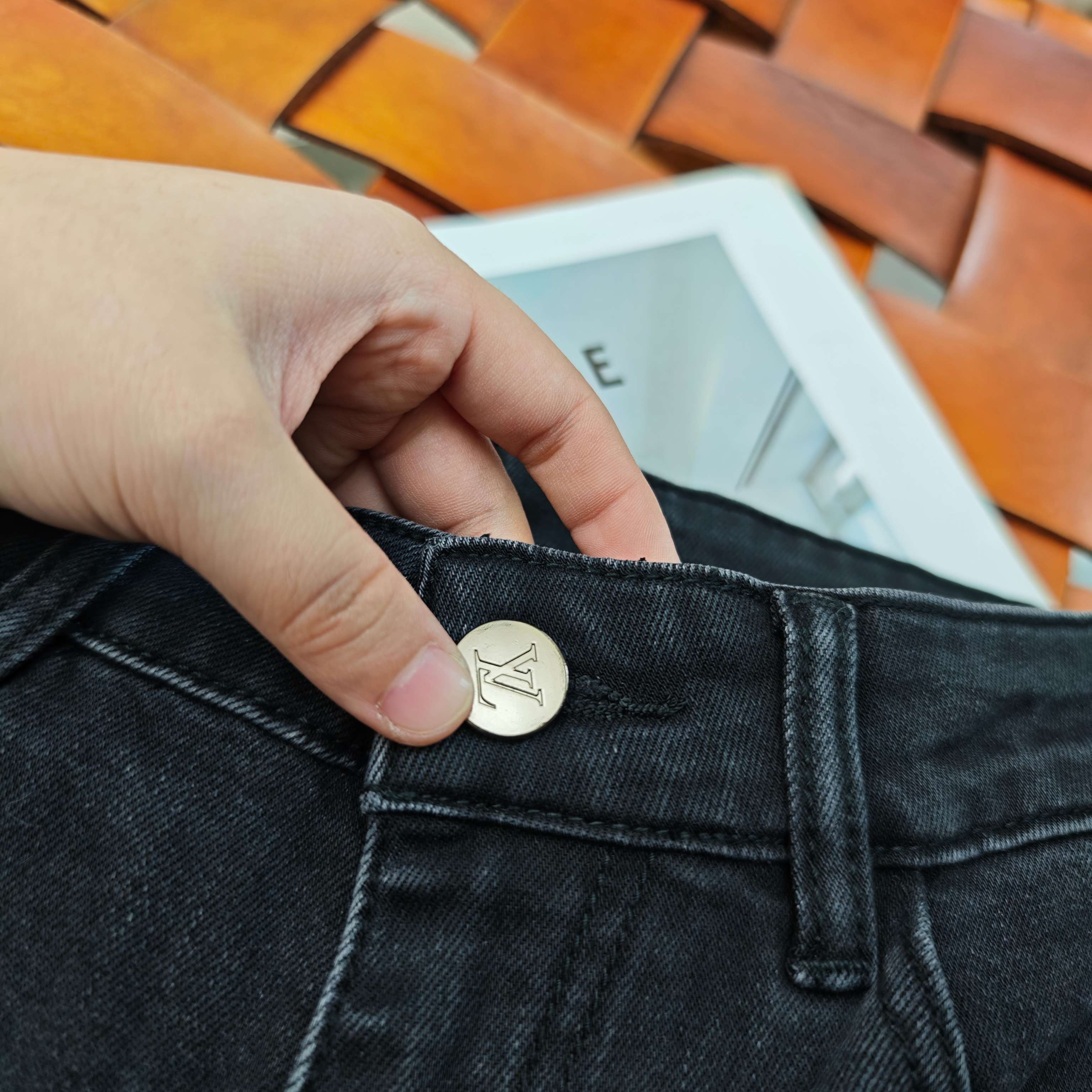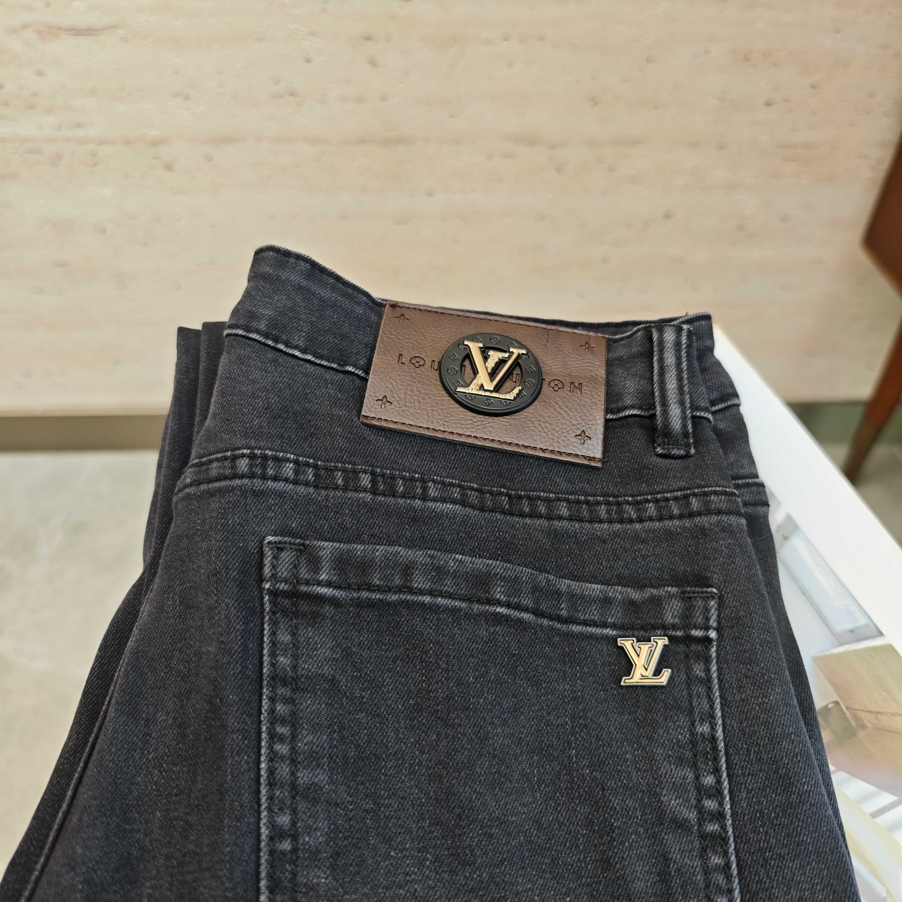 LV25S autumn-winter men's straight-leg jeans, soft cotton denim with classic embossed logo. Sizes: 29-38 (no 37).