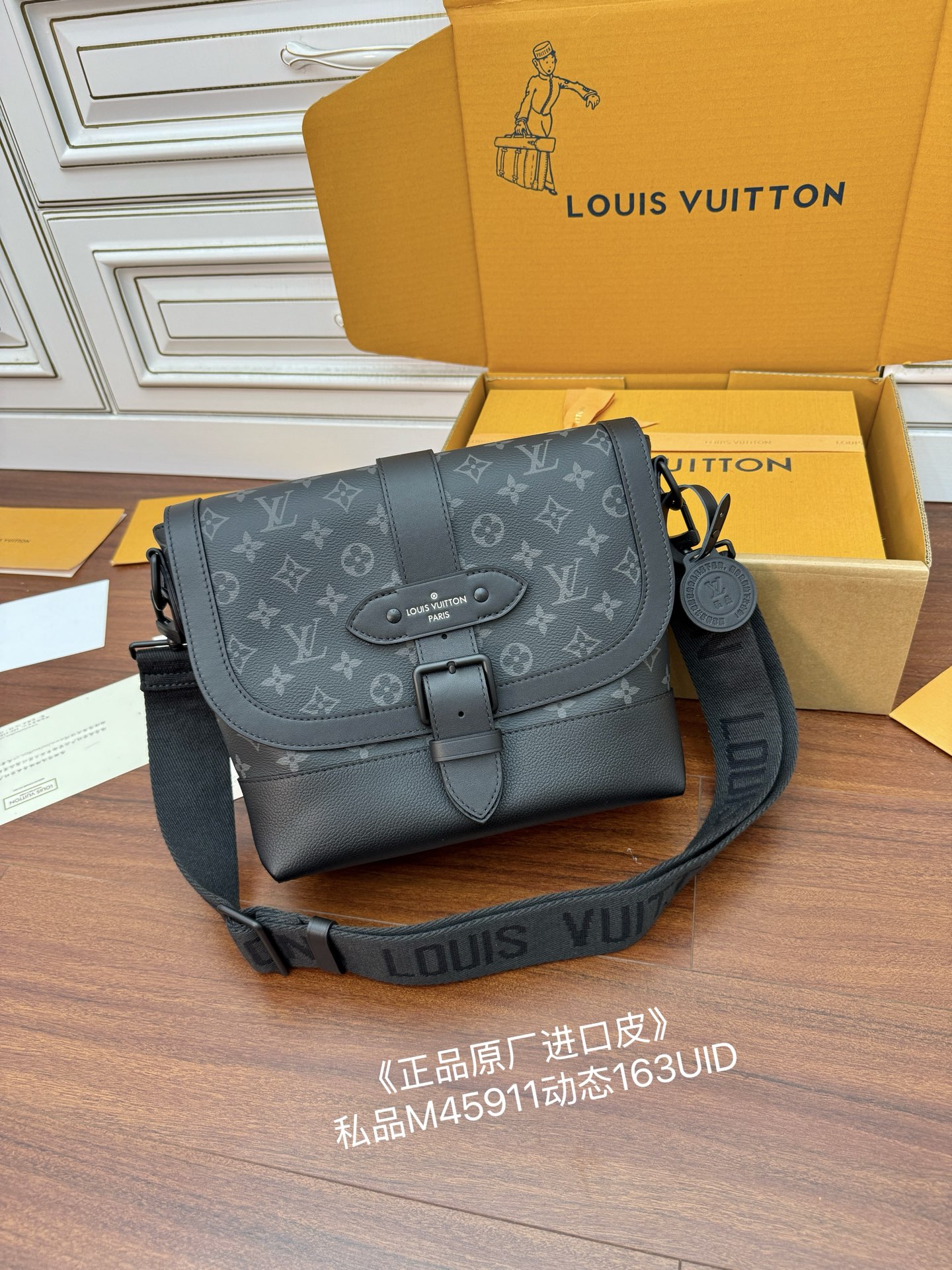 Exclusive 163 launch: Model M45911 private edition. Imported diamond fabric, 9th quality upgrade. Italian A-grade vegetable-tanned leather. Full packaging. Size: 30x23x11cm.