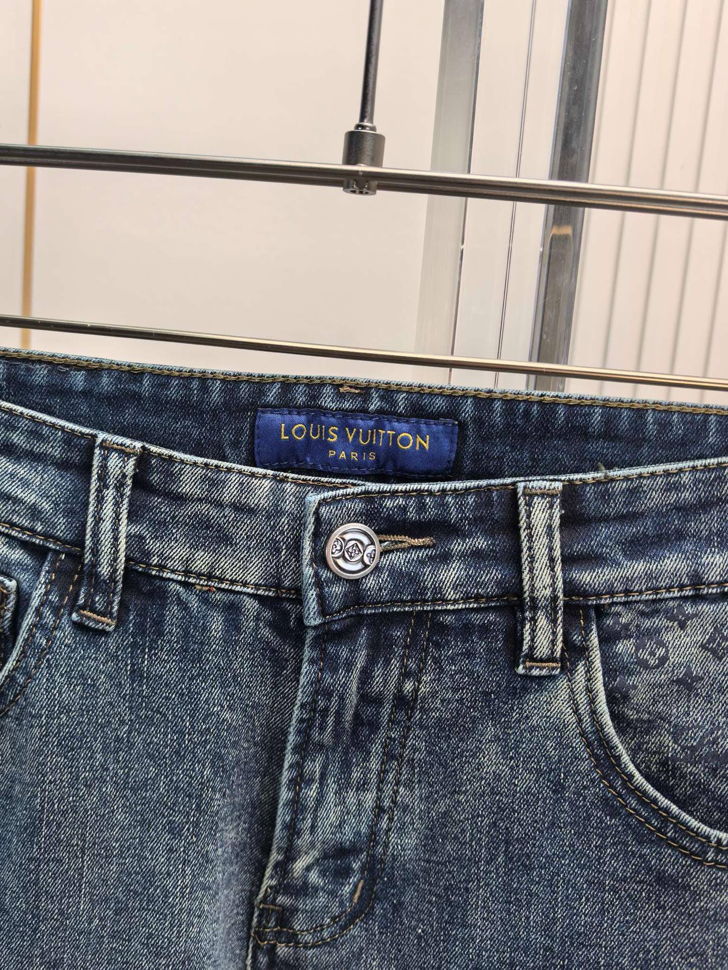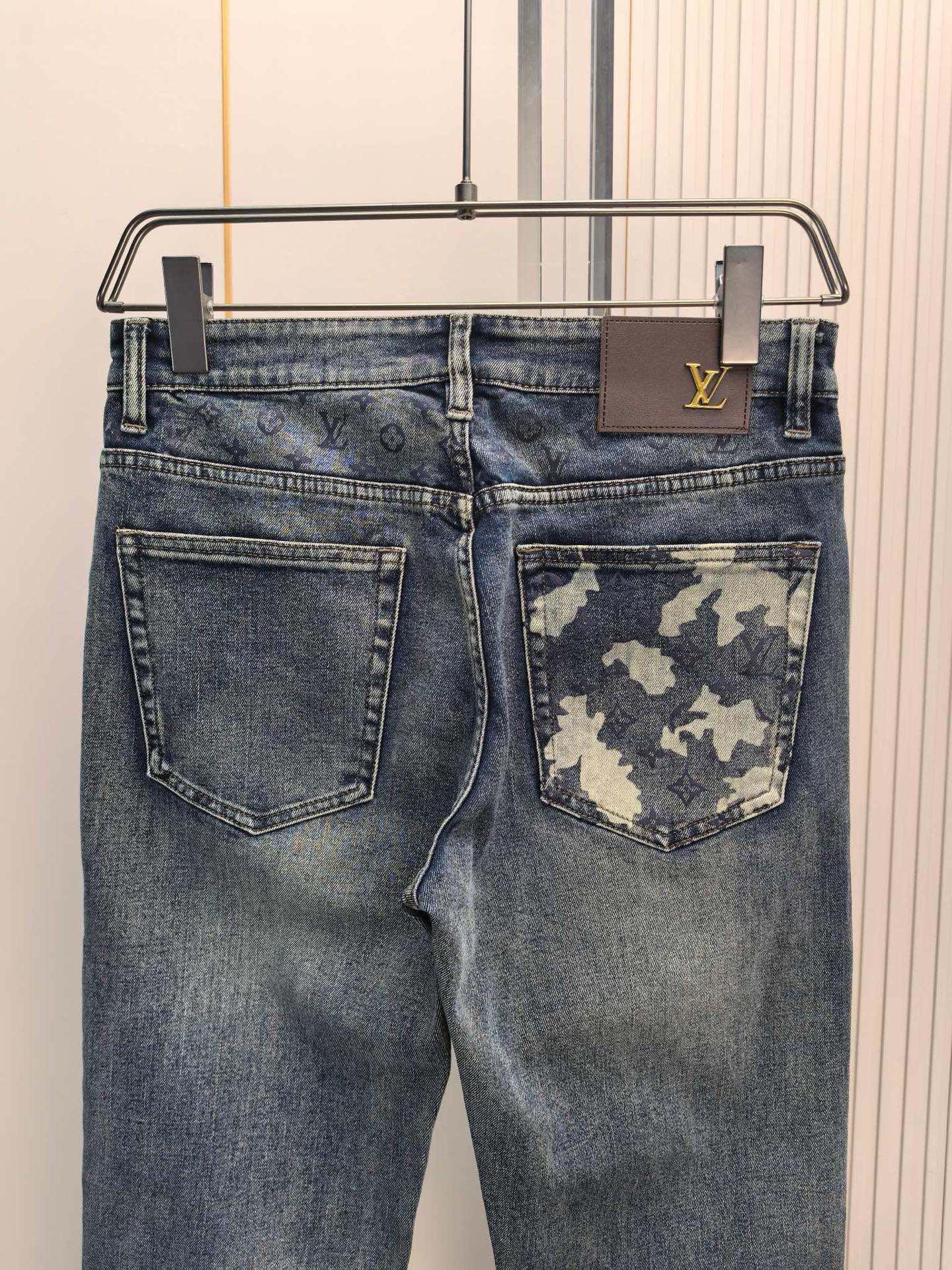 LV Men's Jeans for 2025 Fall/Winter. Heavy wash denim, custom fabric for softness and comfort. Advanced washing techniques ensure top-notch feel and breathability. Branded hardware, excellent elasticity. Understated design. Sizes 29-40.