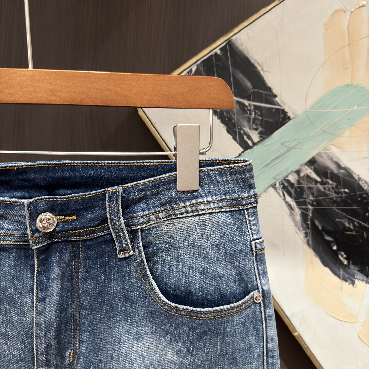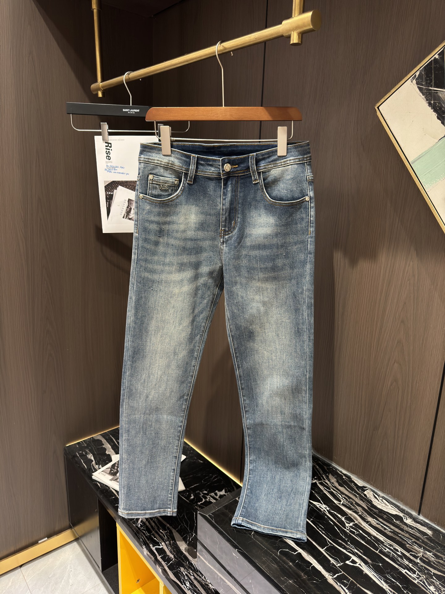 LV Thin Denim Jeans. 2025 latest style. 98% cotton, 2% spandex. Solid, slightly stretchy, comfortable. Simple design, hidden zipper, embossed pockets. Excellent fit.