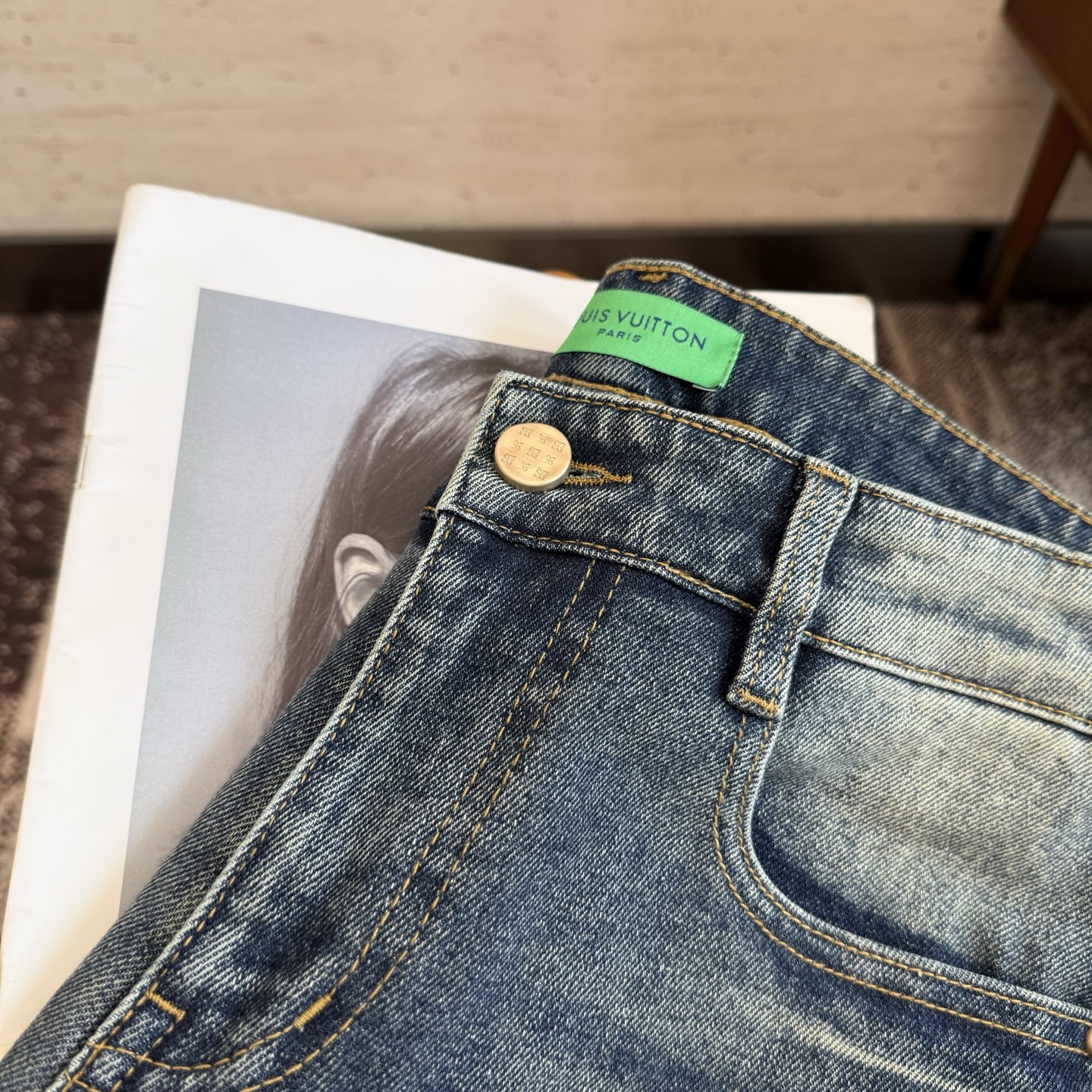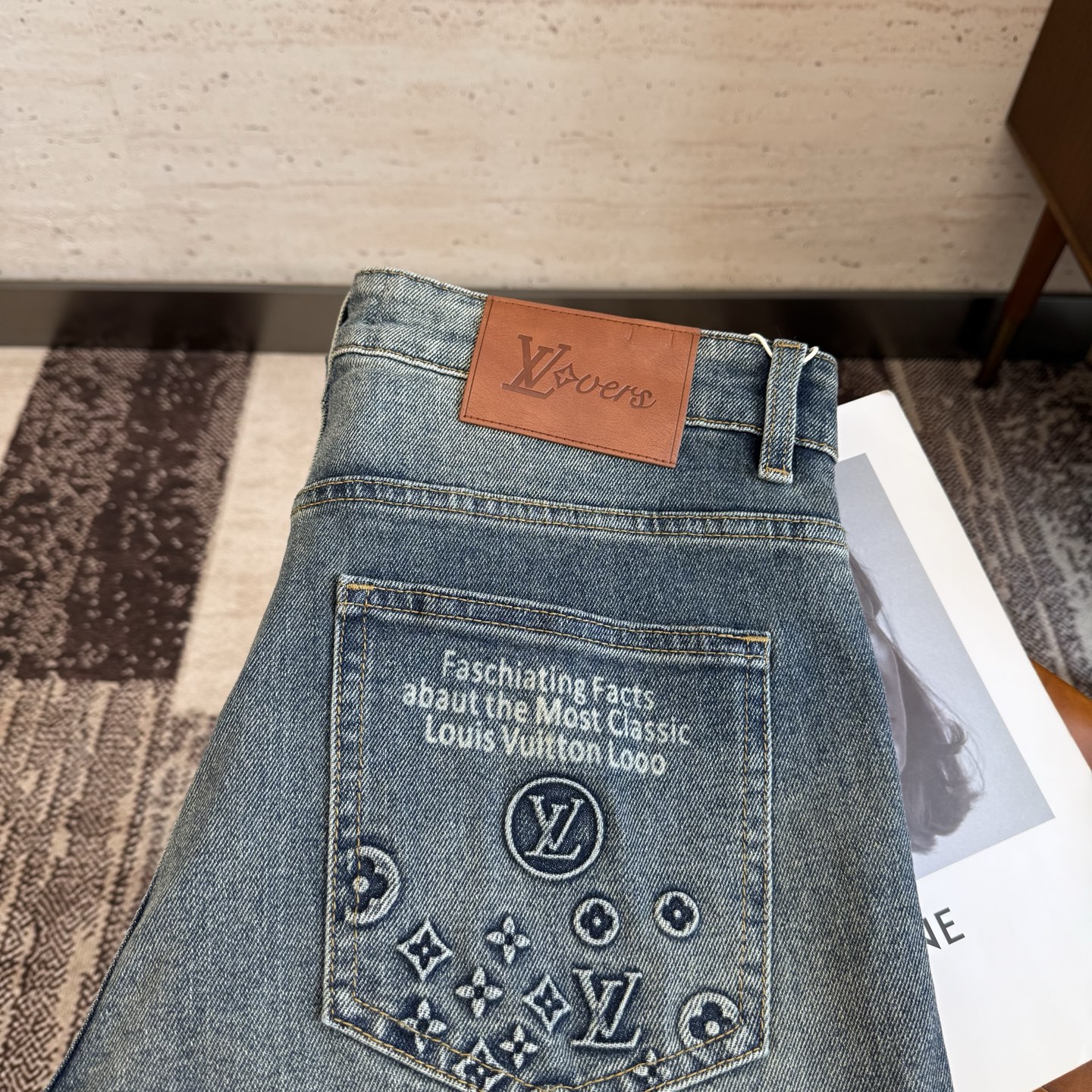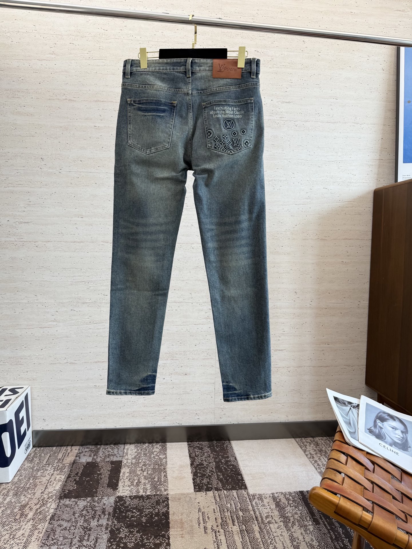 LV25S Men's Straight Leg Jeans for Autumn/Winter. Made of soft, resilient cotton denim. Features classic embossed logo. Sizes: 29-38.