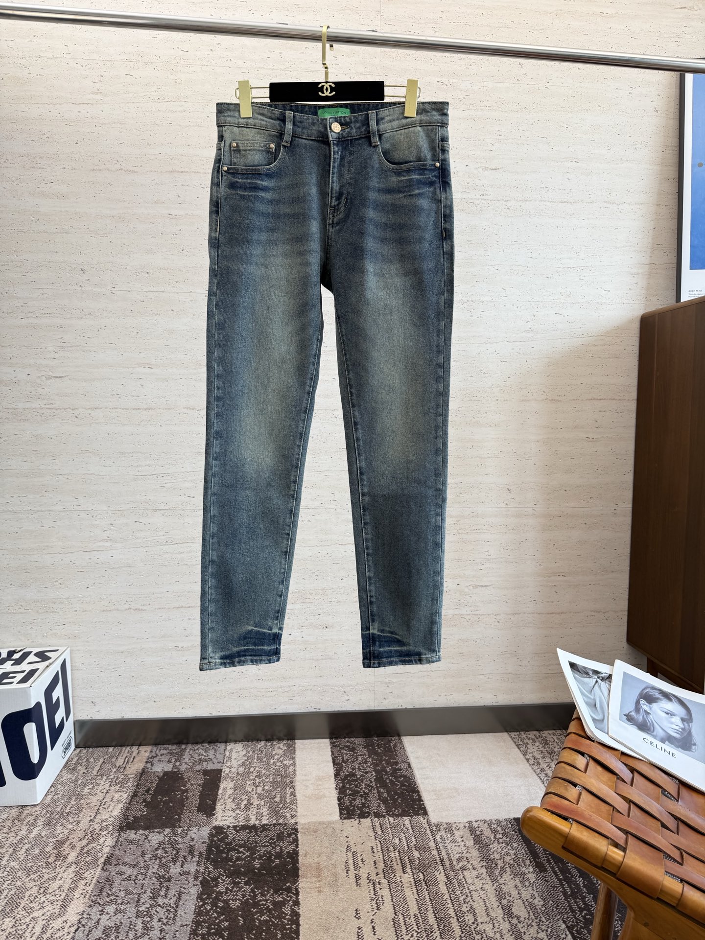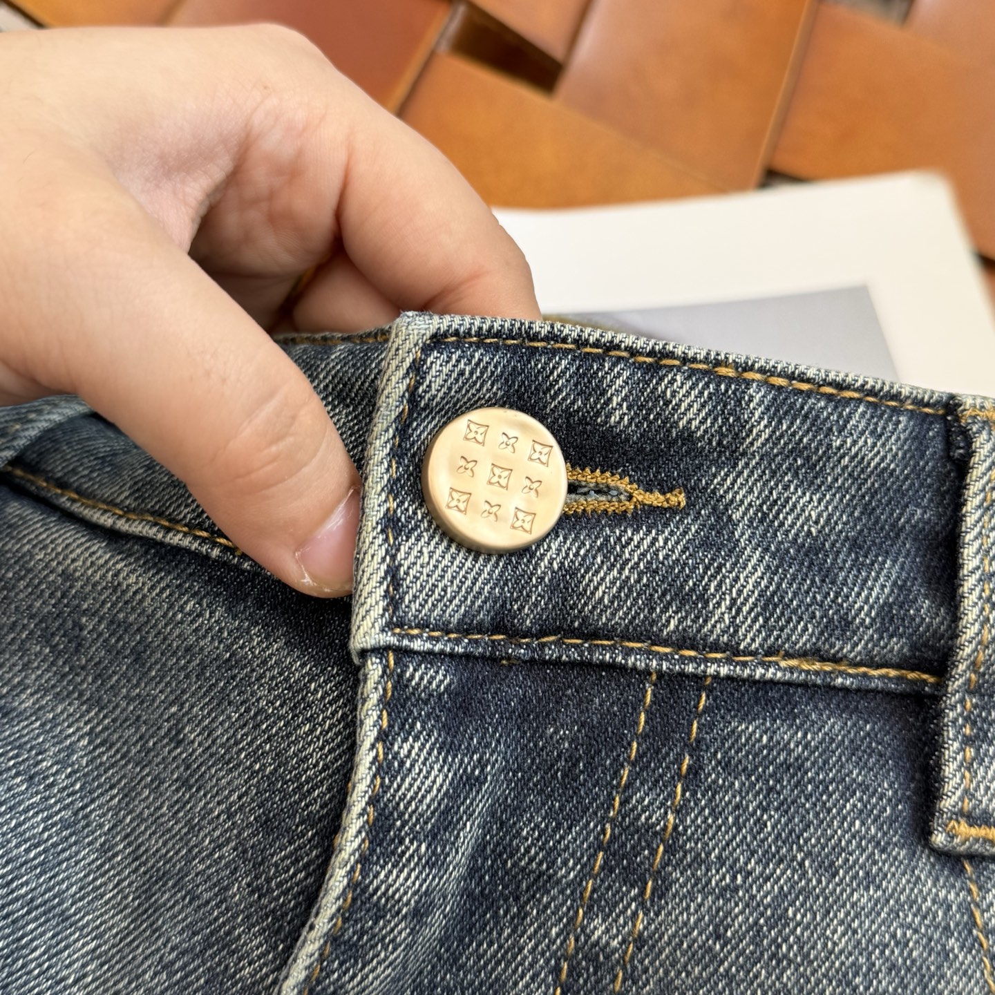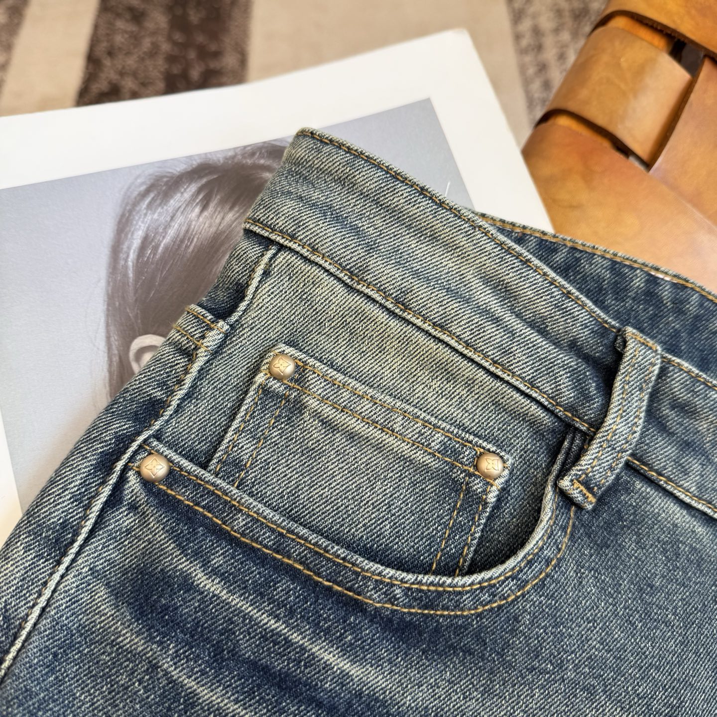 LV25S Men's Straight Leg Jeans for Autumn/Winter. Made of soft, resilient cotton denim. Features classic embossed logo. Sizes: 29-38.