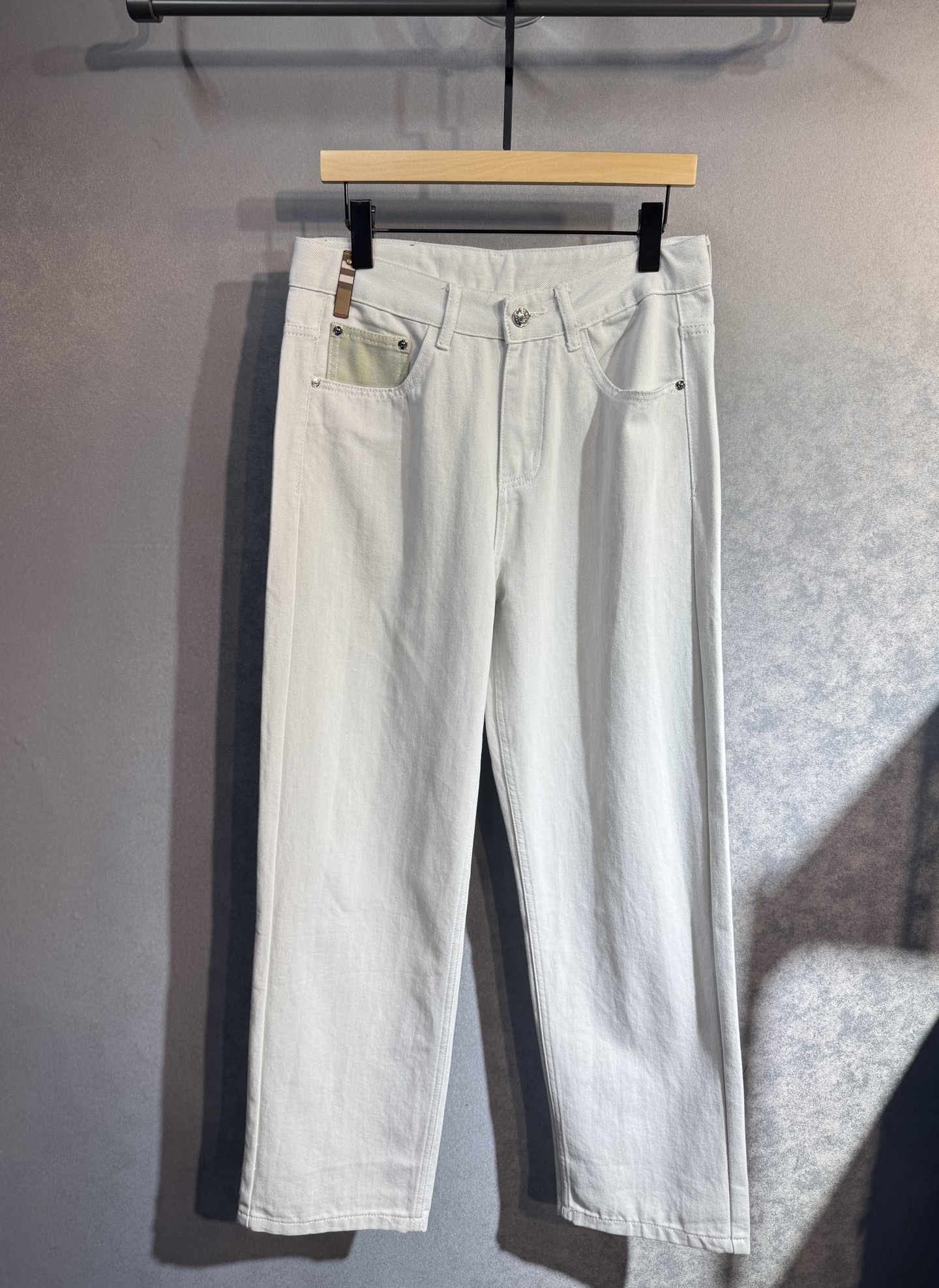 BURBERRY autumn wide-leg jeans. Made from Turkish cotton, heavily washed for softness. Straight-leg cut, sizes 29-38 (no 35). Comfortable and luxurious.