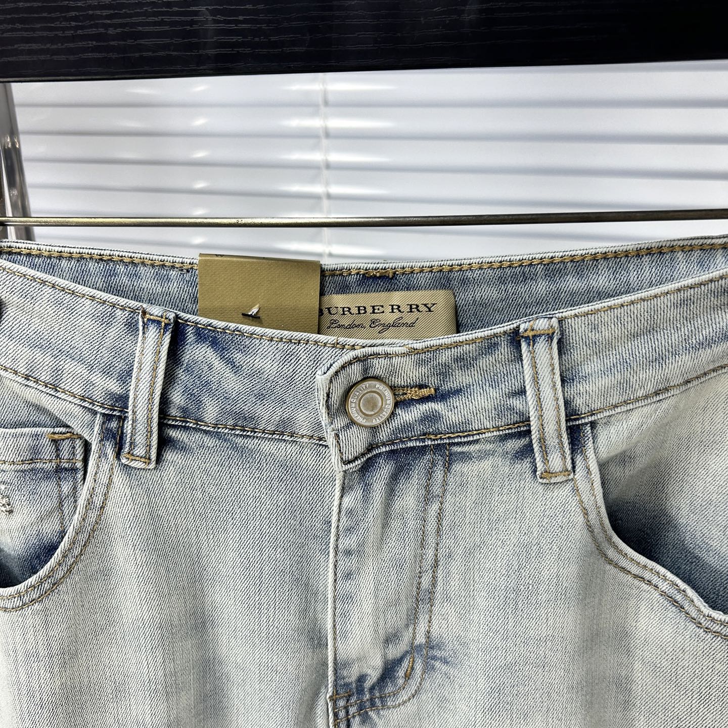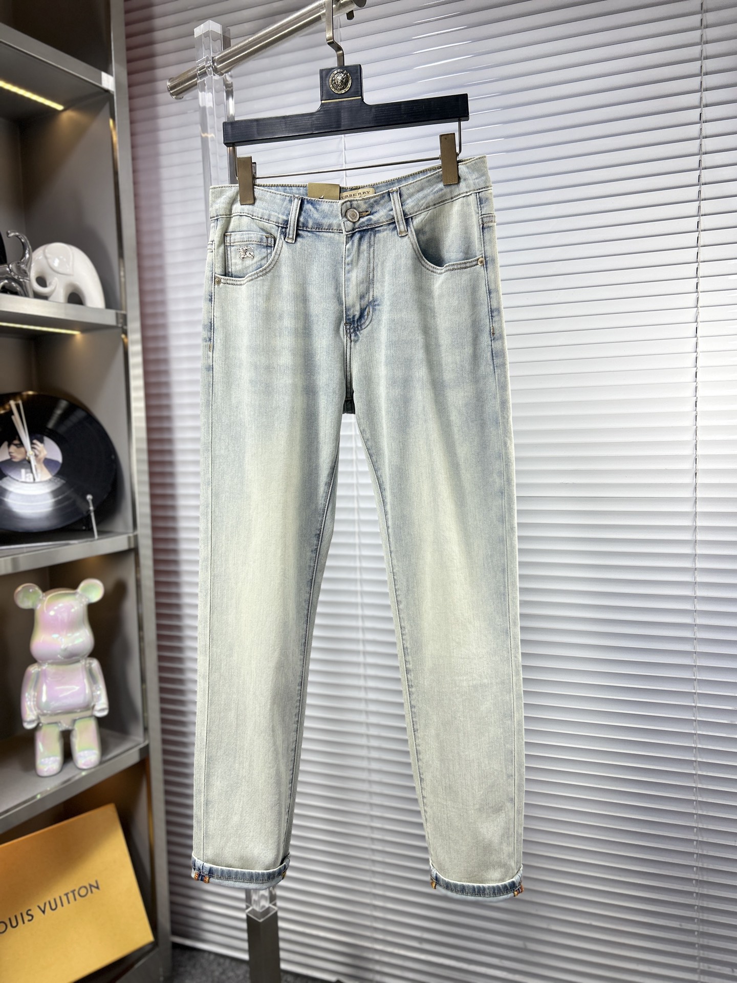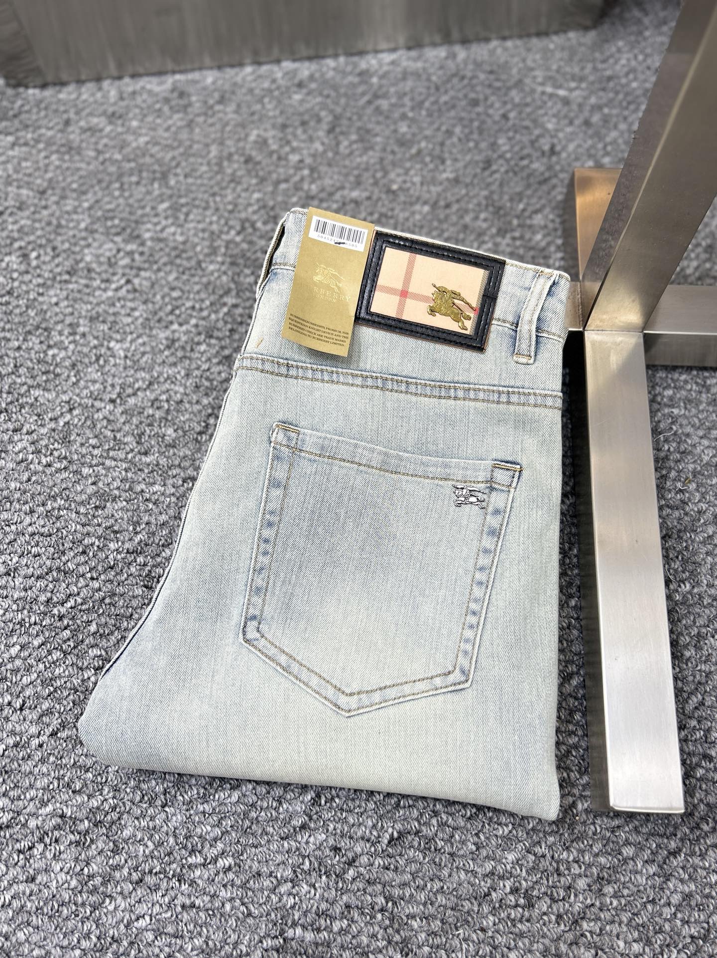 BBR Burberry SS25 men's jeans. Stretchy denim, original yeast wash. Imported fabric, boutique hardware, leather label. Sizes 29-38 (no 37).